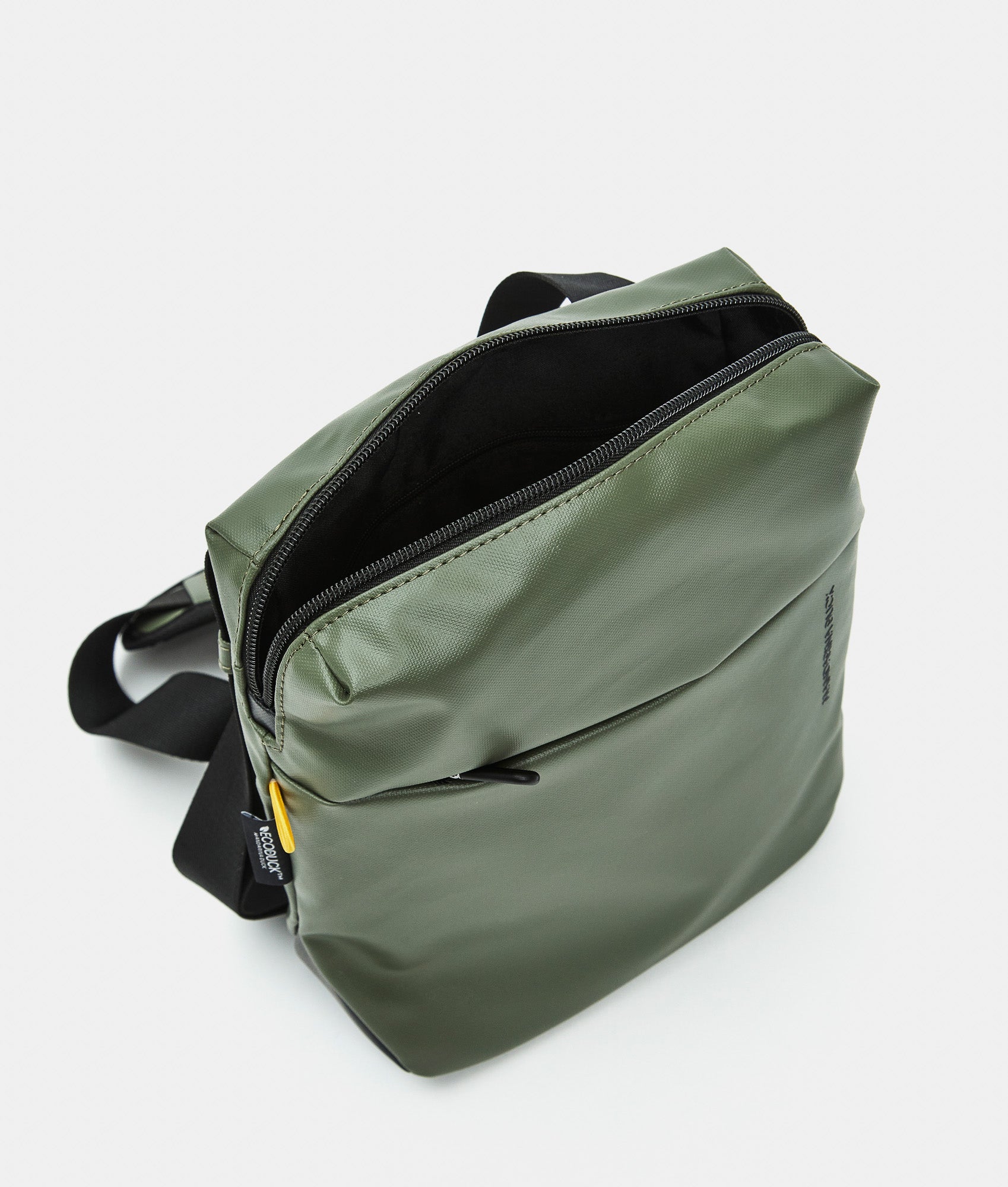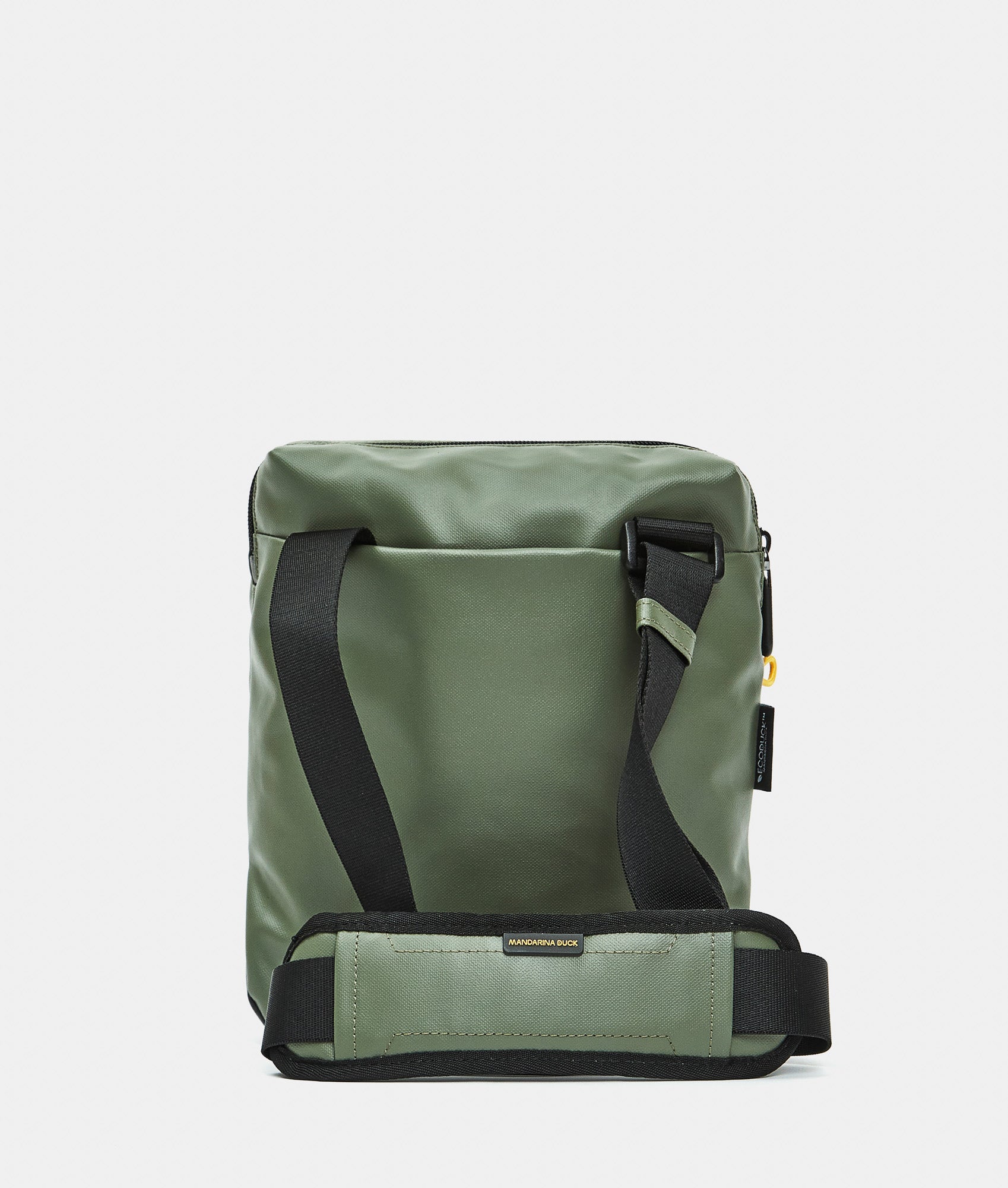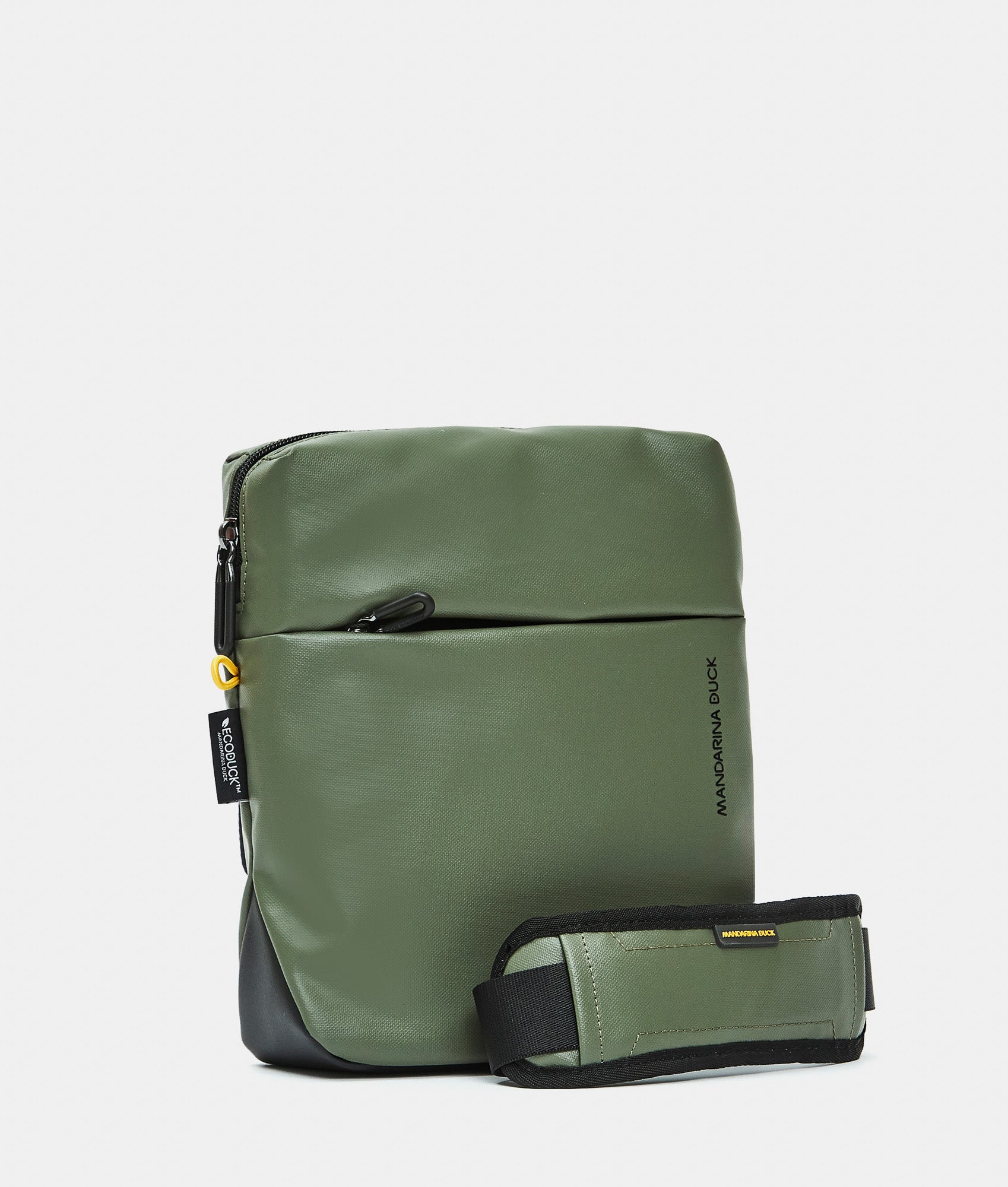 ECO COATED is Mandarina Duck's casual cross-category and cross-gender collection, featuring a youthful and energetic look. It is made from 100% recycled polyester fabric derived from the recovery and transformation of plastic bottles (PET). For those seeking spacious, functional accessories with multiple pockets and meticulous attention to detail, this line is crafted from a durable, water-resistant coated fabric. The collection is part of the ECODUCK TM project, through which Mandarina Duck commits to ensuring more conscious and sustainable production with recycled materials. The main external fabric is made with the equivalent of 7 recycled PET bottles (0.5l - 20g).
