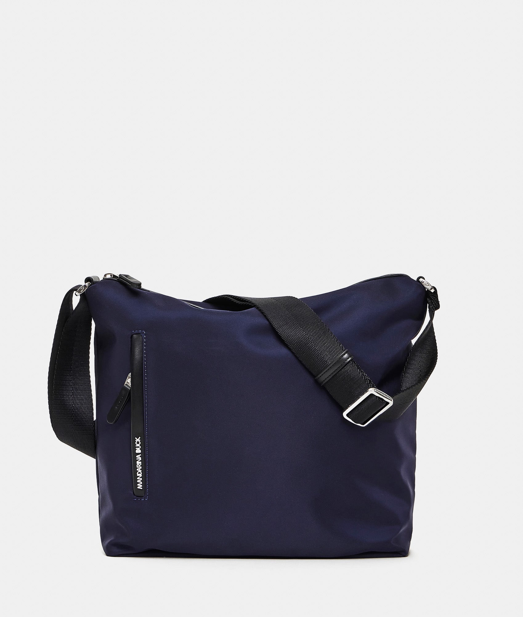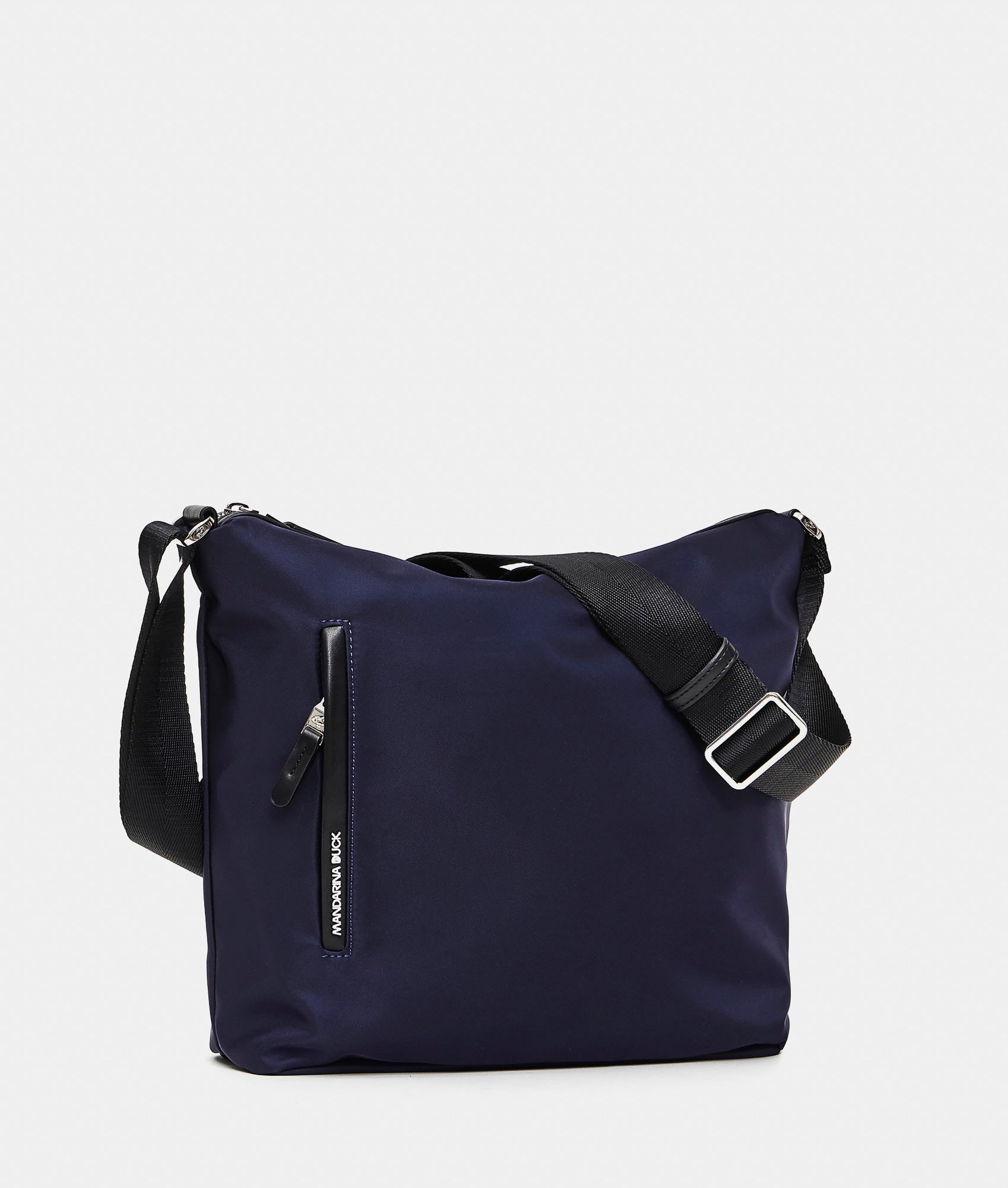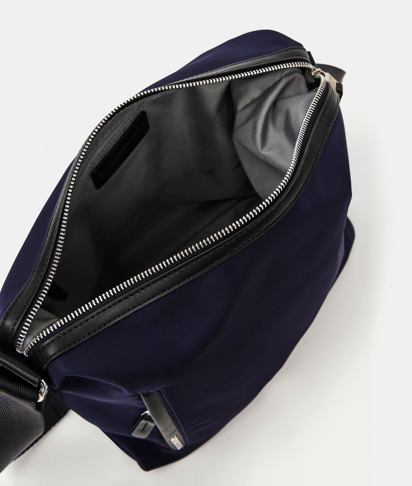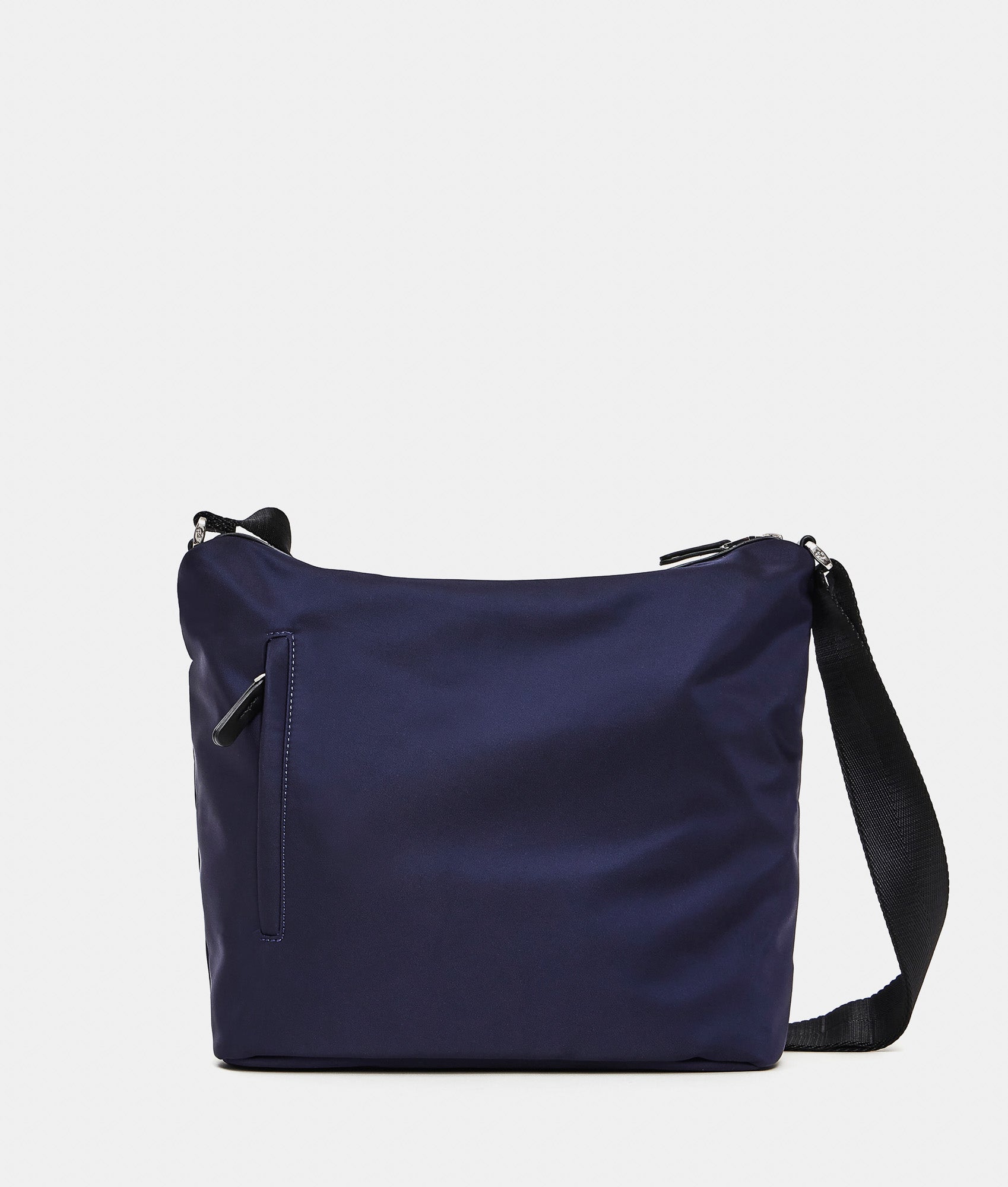 Medium crossbody bag with fabric zipper flat front pocket. Dual carrying options, smart front, back, and internal pockets, custom details and adjustable jacquard strap.