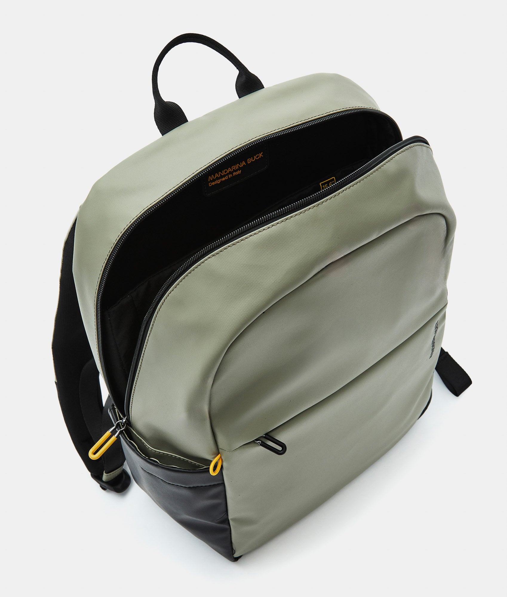 ECO COATED is the casual Mandarina Duck collection that transcends categories and genders, featuring a youthful and spirited look. Crafted from 100% recycled polyester fabric derived from the recovery and transformation of plastic bottles (PET), this collection offers spacious, functional accessories with multiple pockets and meticulous design. The robust, water-resistant coated fabric underscores Mandarina Duck's commitment to the ECODUCK TM project for more sustainable and environmentally-conscious production using recycled materials. The main outer fabric is made from the equivalent of 20 recycled PET bottles (0.5l - 20g).