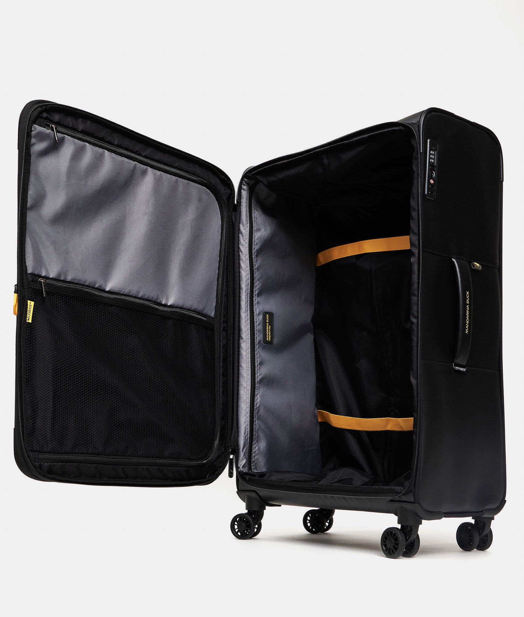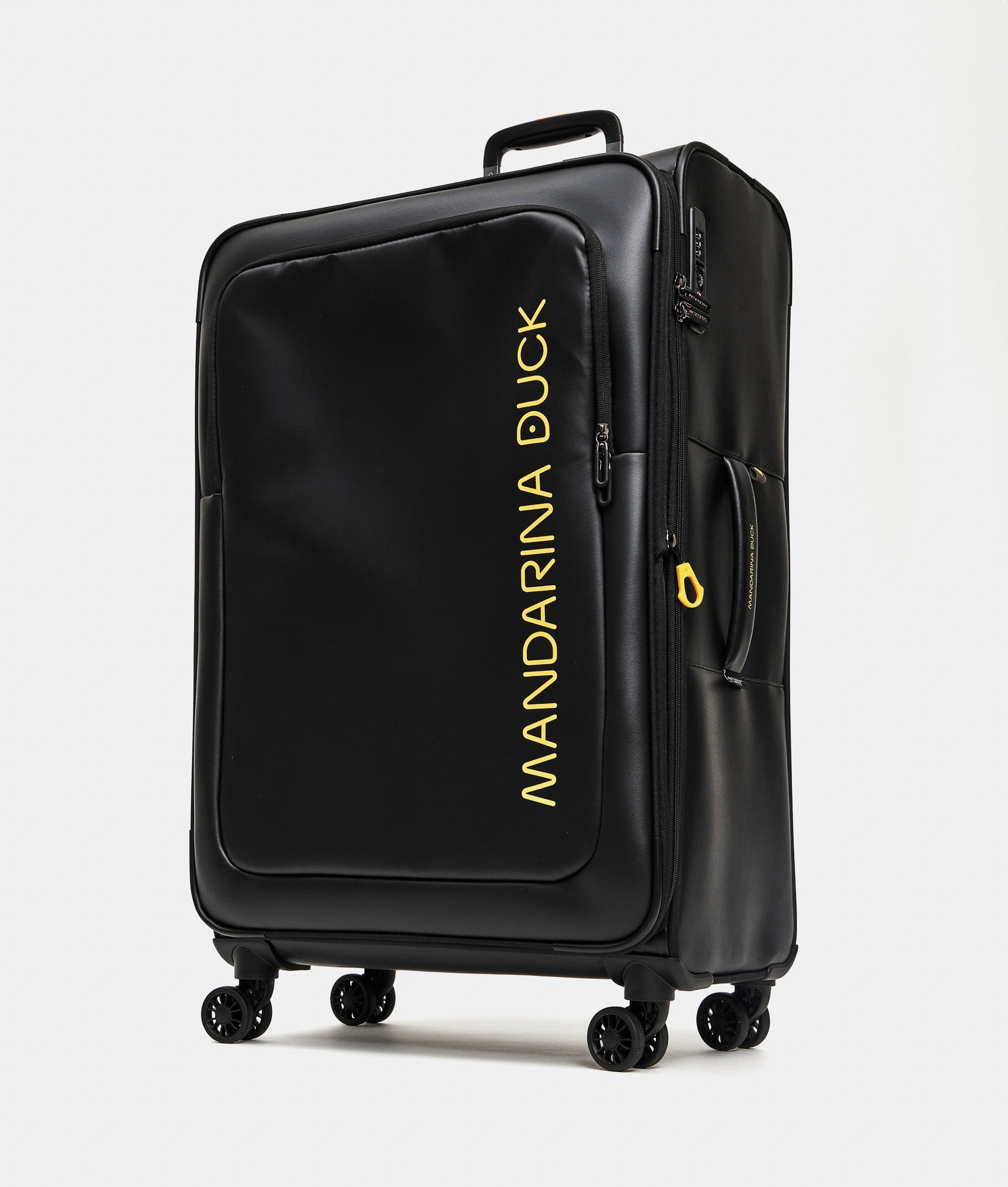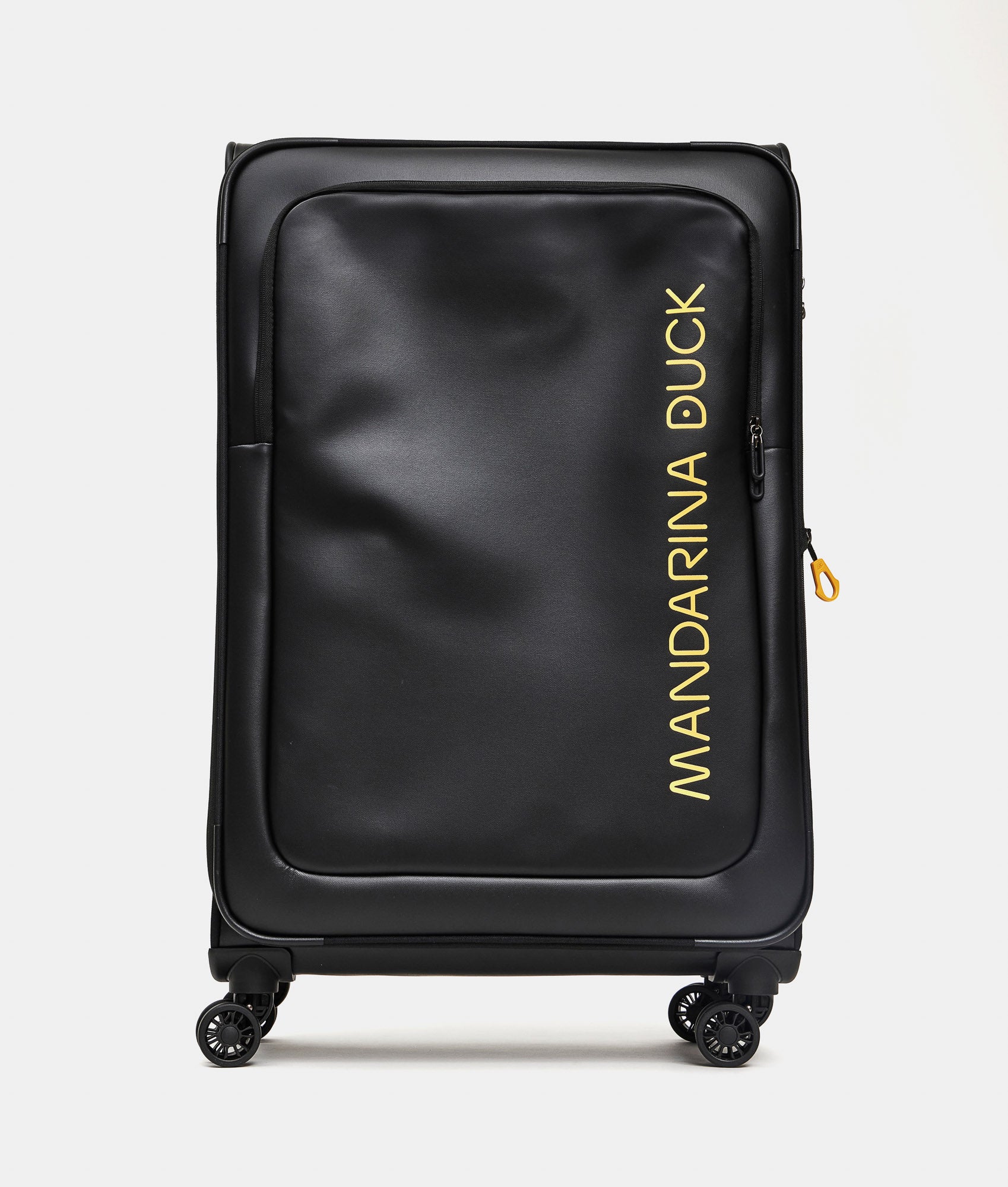 ECO COATED is Mandarina Duck's casual cross-category and cross-gender collection, featuring a youthful and energetic look. It is made from 100% recycled polyester fabric derived from the recovery and transformation of plastic bottles (PET). For those seeking spacious, functional accessories with multiple pockets and meticulous attention to detail, this line is crafted from a durable, water-resistant coated fabric. The collection is part of the ECODUCK TM project, through which Mandarina Duck commits to ensuring more conscious and sustainable production with recycled materials. The main external fabric is made with the equivalent of 48 recycled PET bottles (0.5l - 20g).