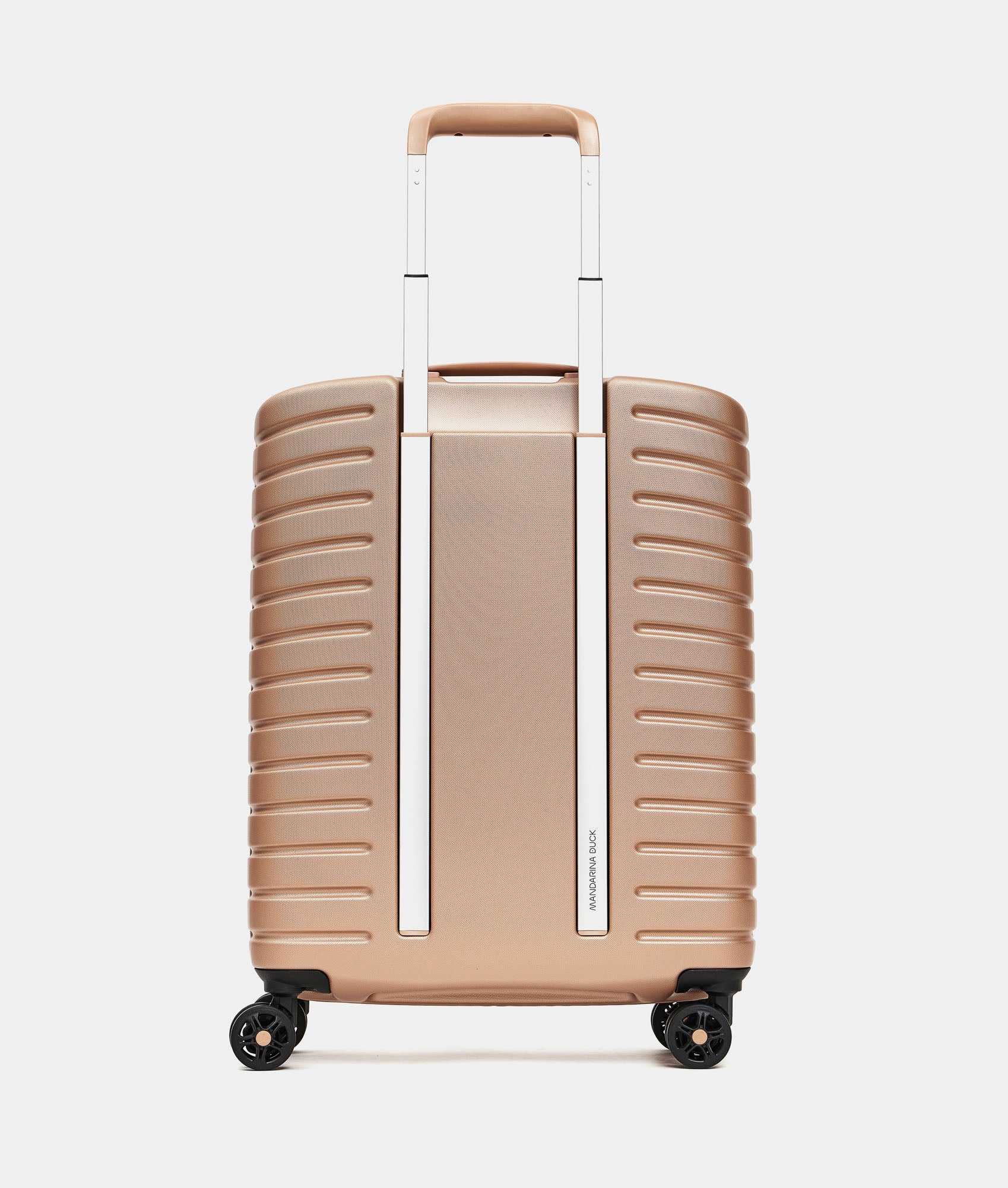Here' our favorite superlight trolley line! Travel Flyduck is an ultra-light polycarbonate collection designed to make every trip easier and more comfortable. The Cabin Global Carry On weighs only 1.85 kg, offering maximum lightness without compromising durability. Expandability is available on the Cabin Frequent Flyer, medium, and large sizes, providing extra space when needed. With a sleek and contemporary design, this line is perfect for travelers looking for a practical and incredibly light trolley. The signature MD "Diamond"� texture, metallic finishes, seasonal color options, and tone-on-tone details, combined with the bold Mandarina Duck logo, make every piece unique. All trolleys come with four double wheels for smooth and effortless movement.