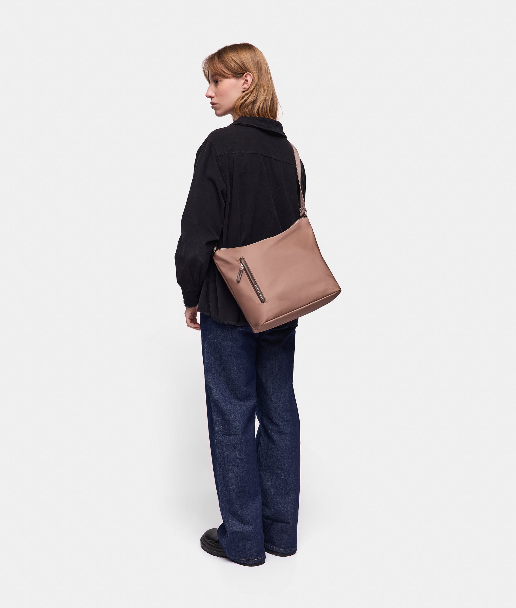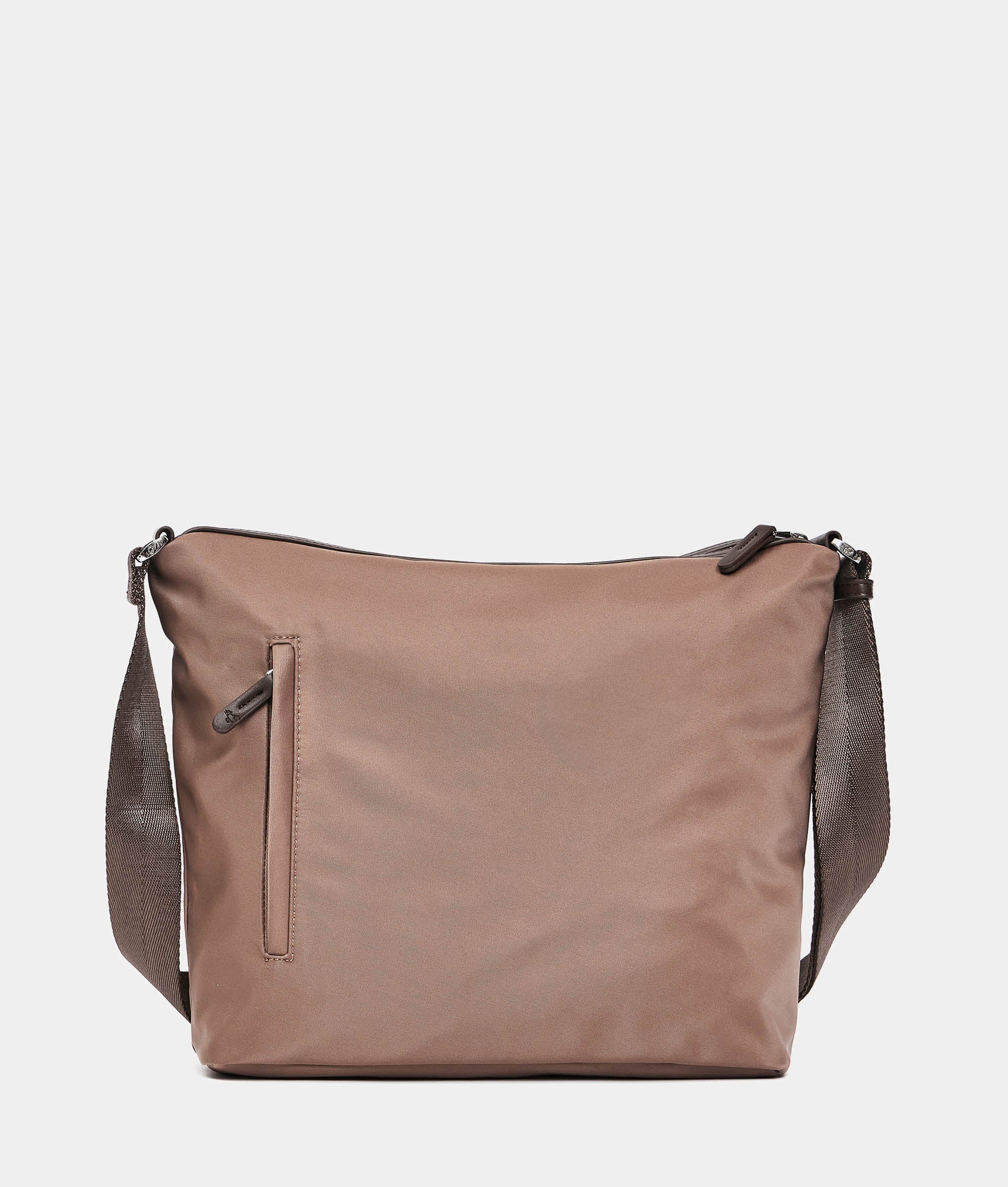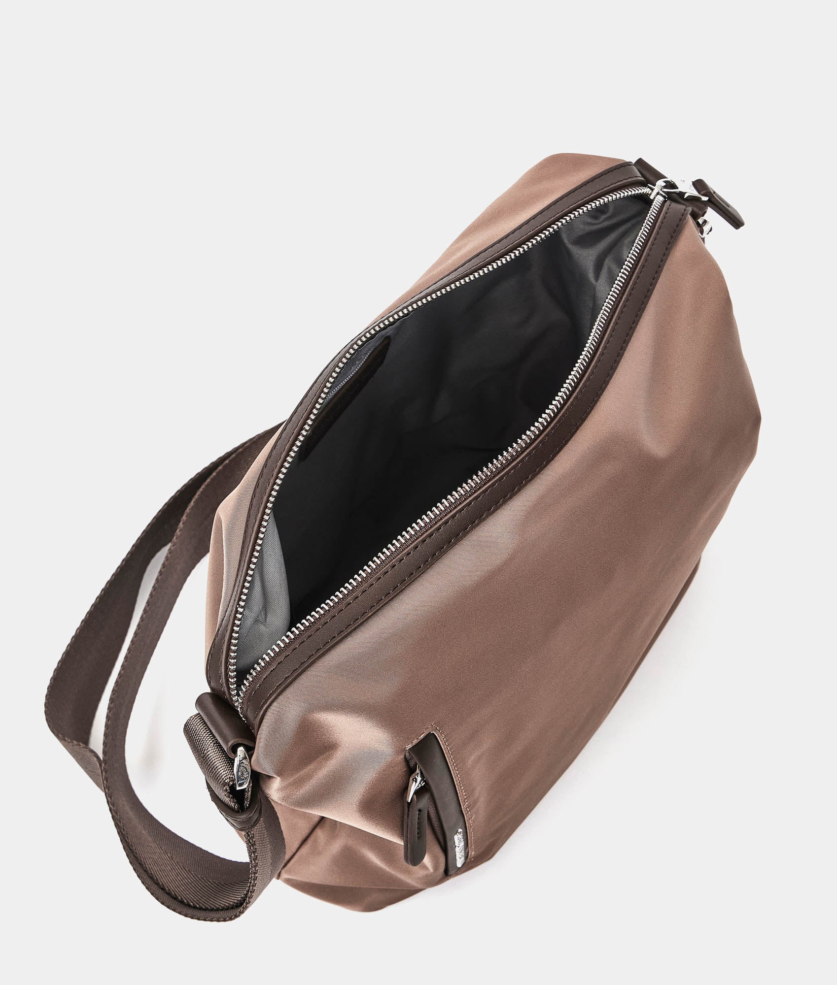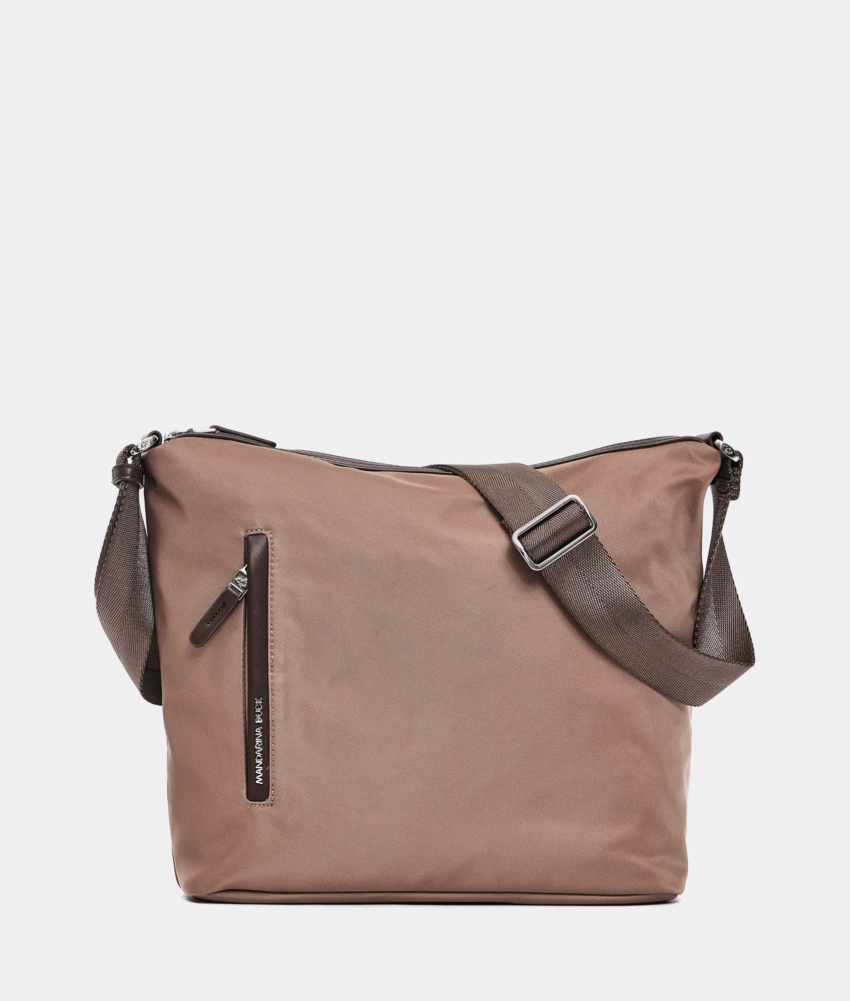 Medium crossbody bag with fabric zipper flat front pocket. Dual carrying options, smart front, back, and internal pockets, custom details and adjustable jacquard strap.