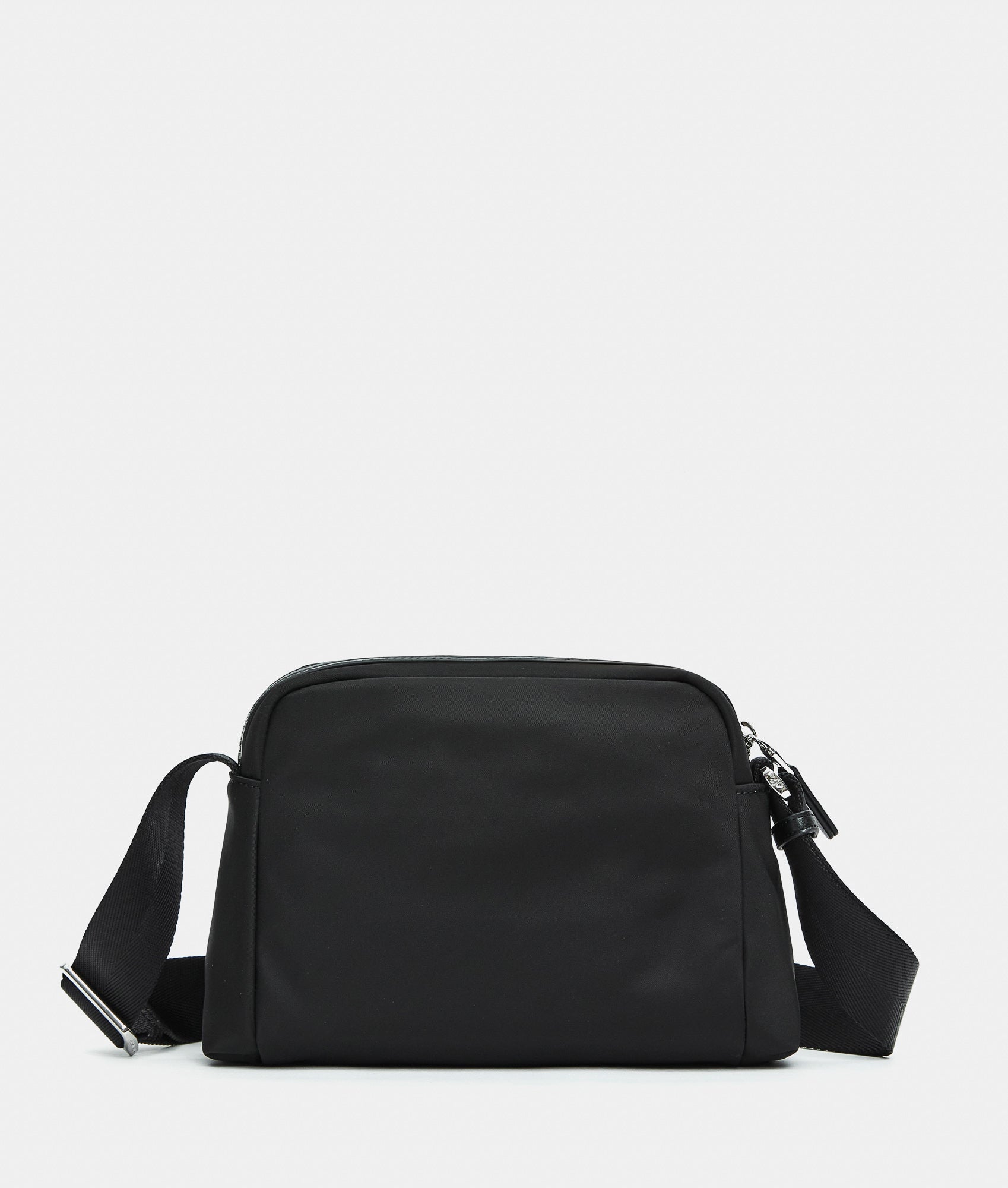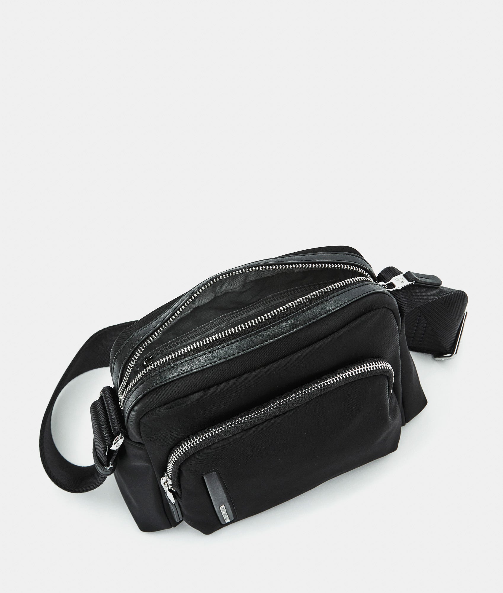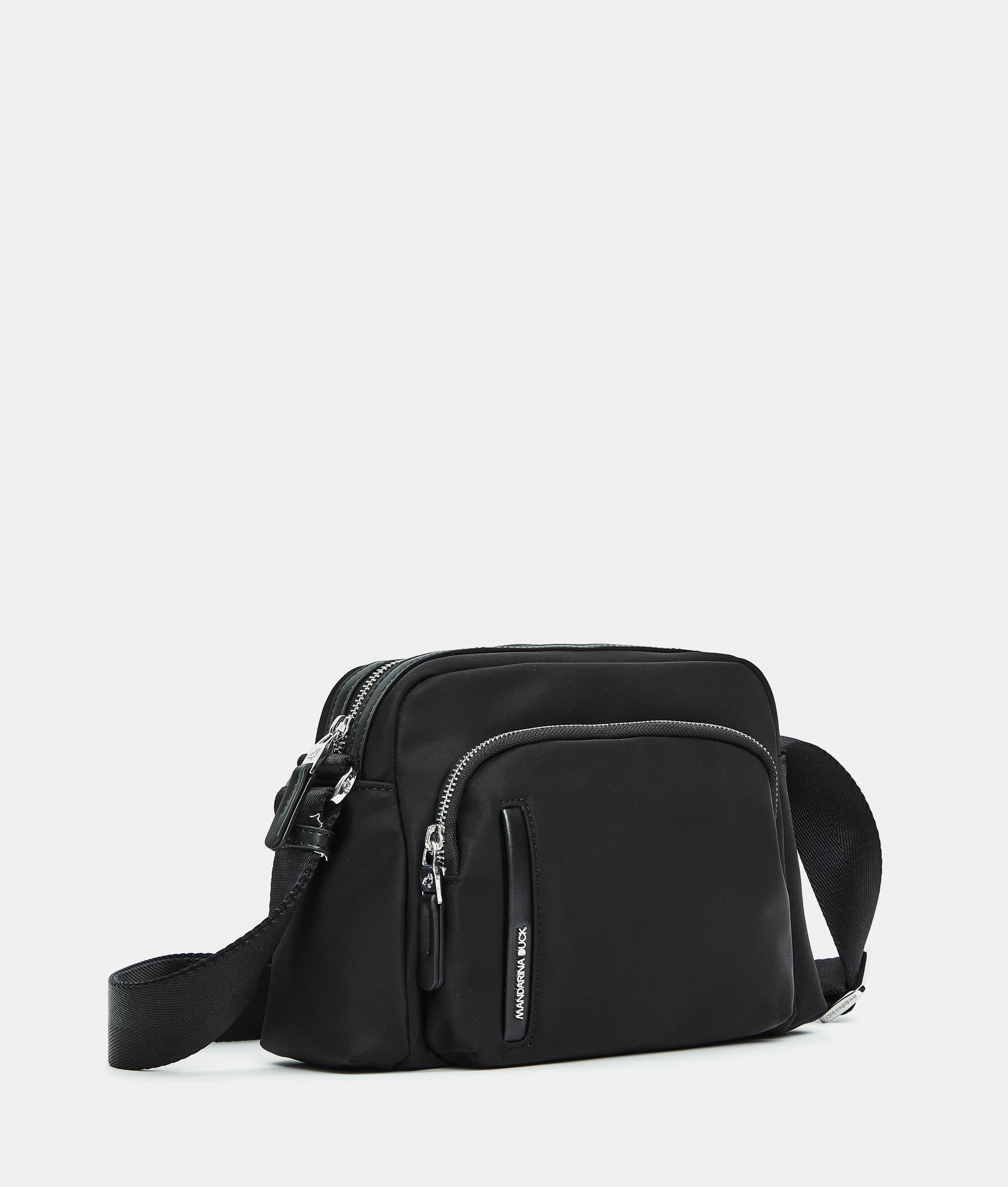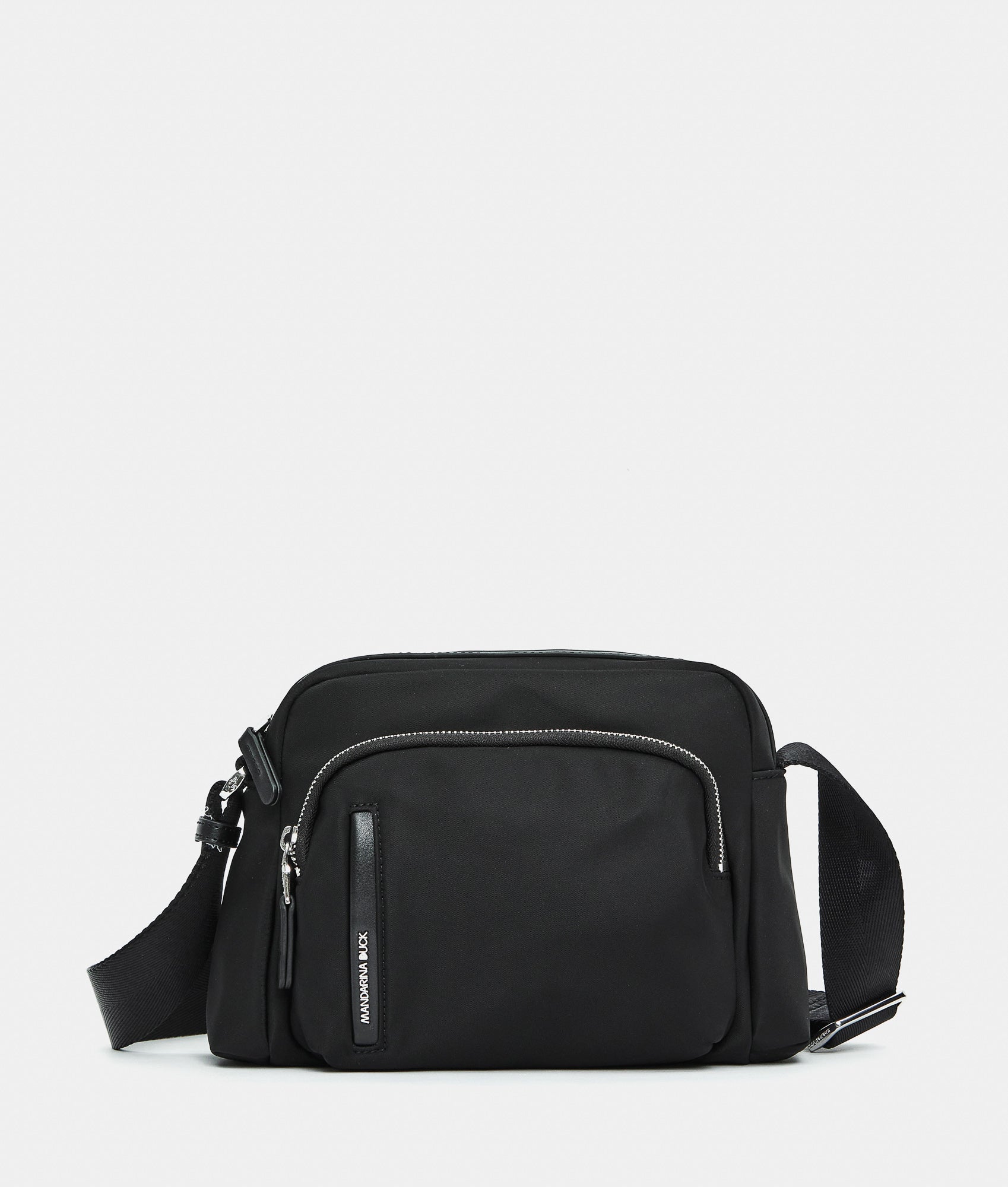Small crossbody bag with fabric zipper front pocket. Dual carrying options, custom details and adjustable jacquard strap.