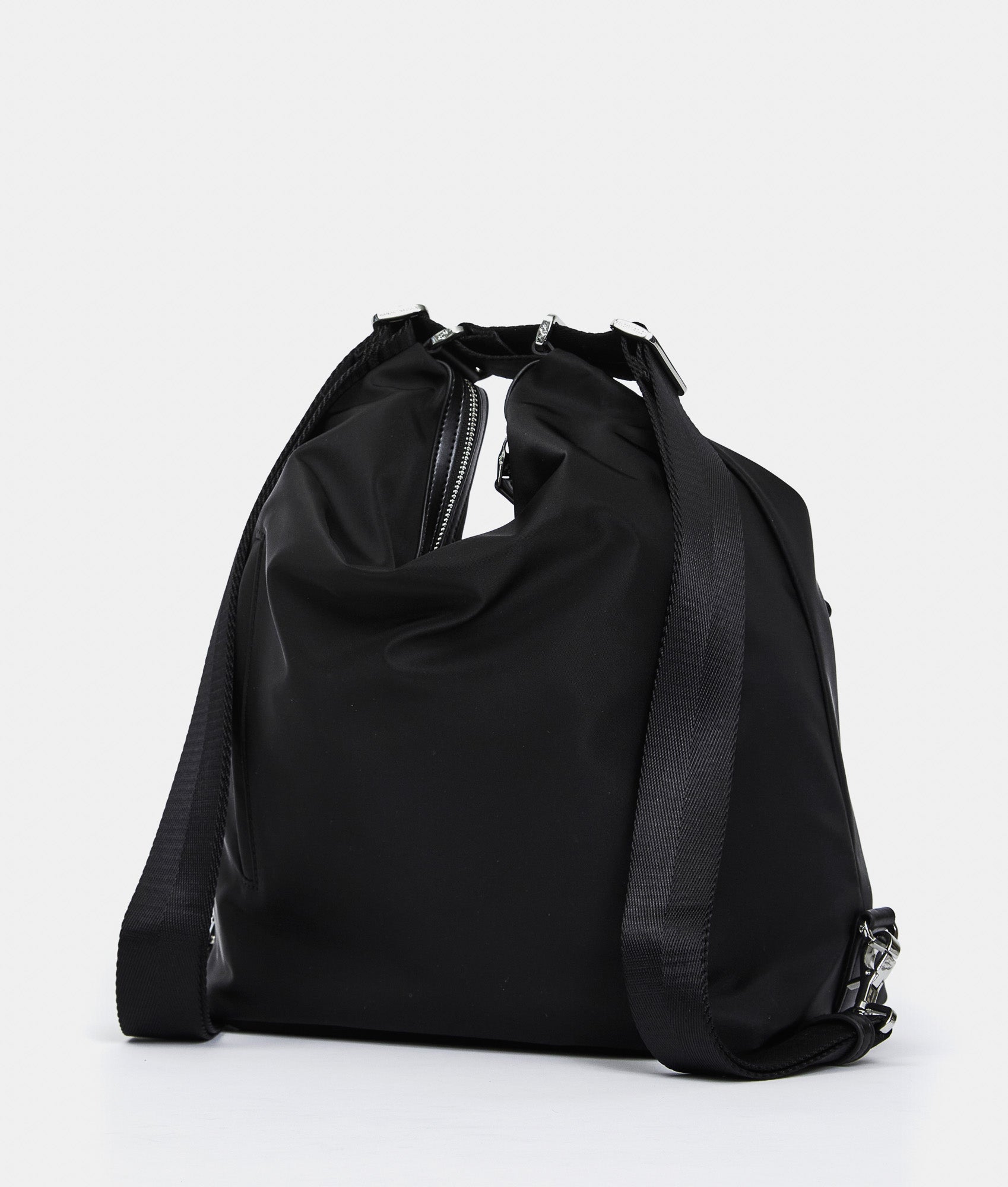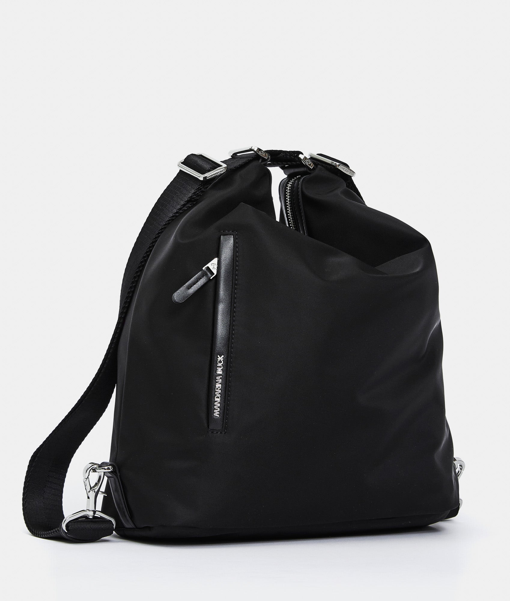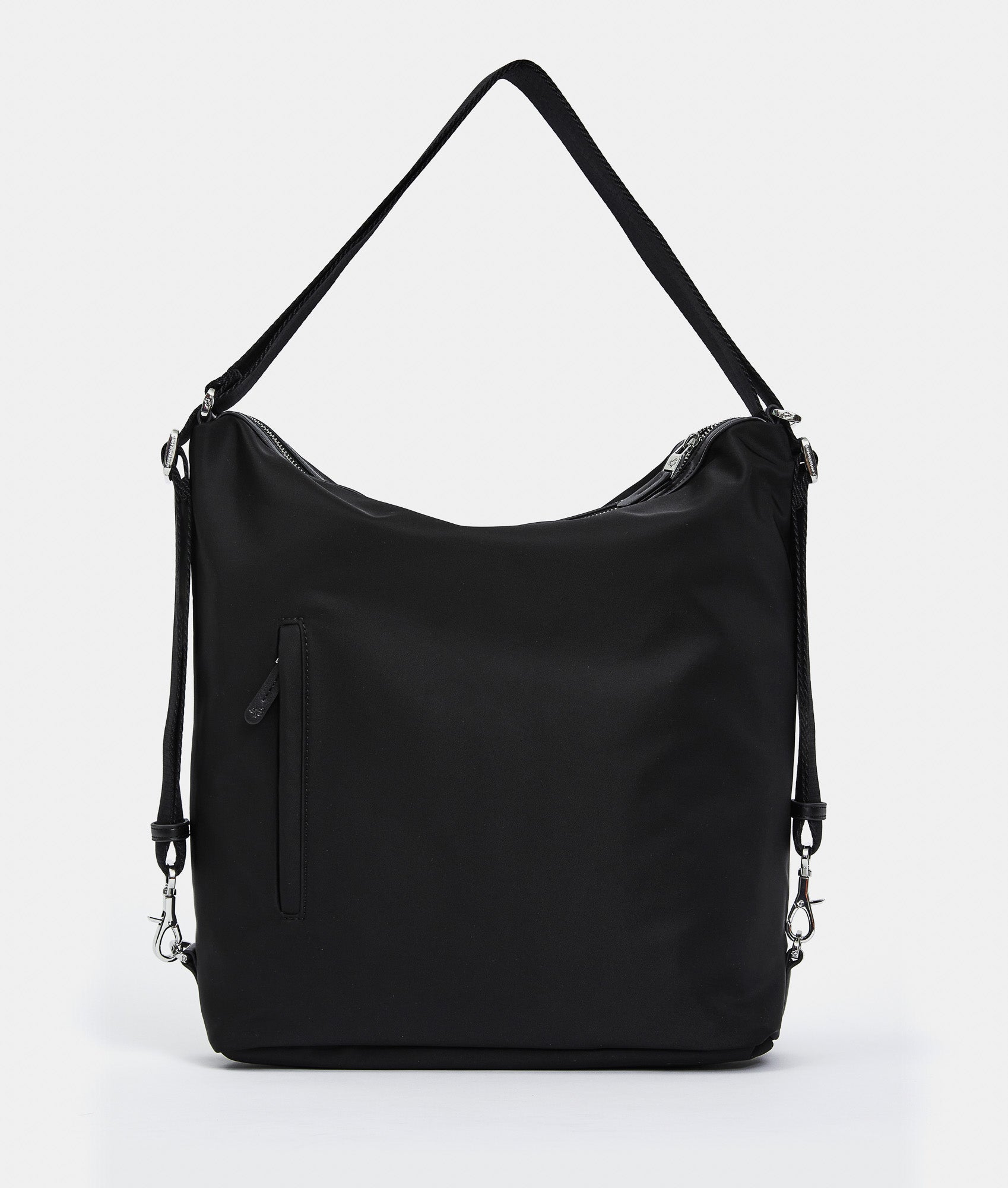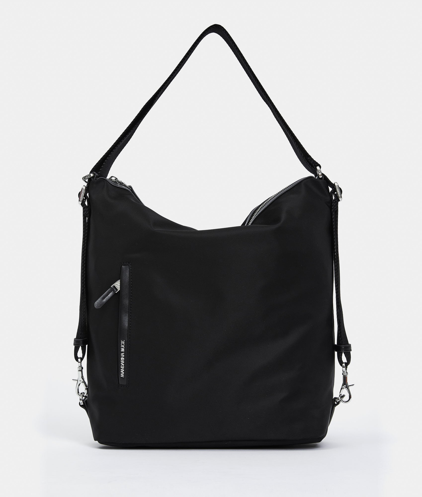 Medium multi-function bag with fabric zipper flat front pocket. Carrying options: shoulder, backpack, and hand. Smart internal pockets, custom details and adjustable jacquard strap.