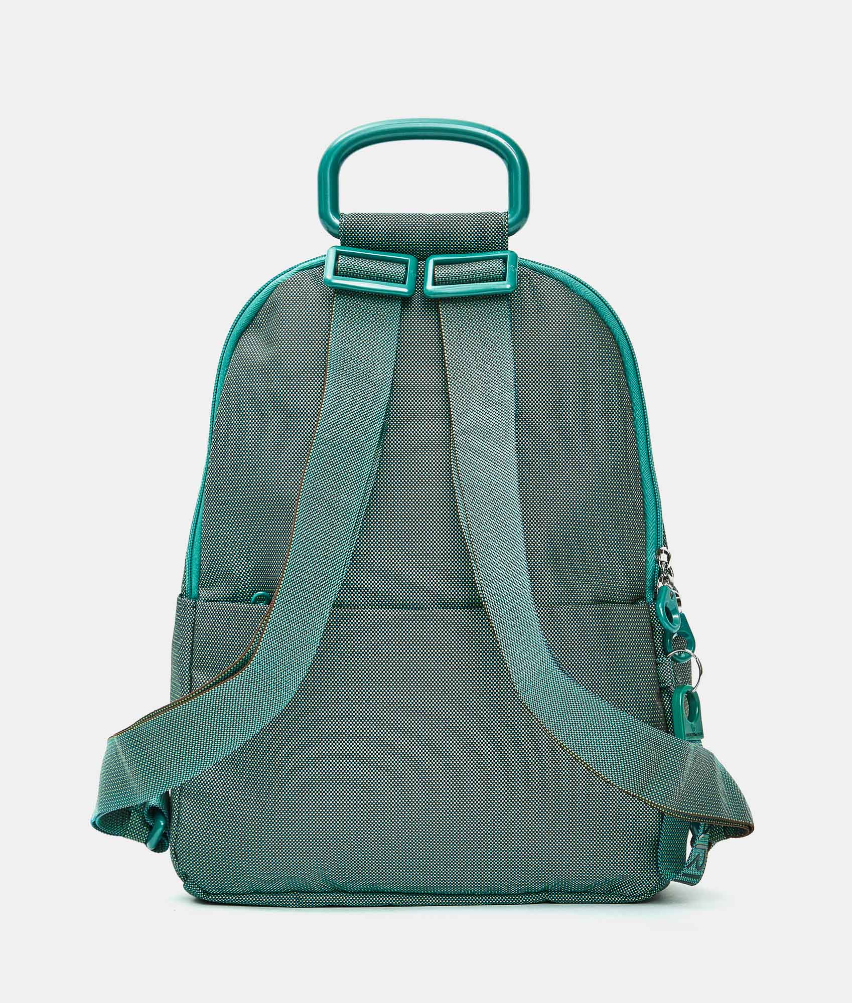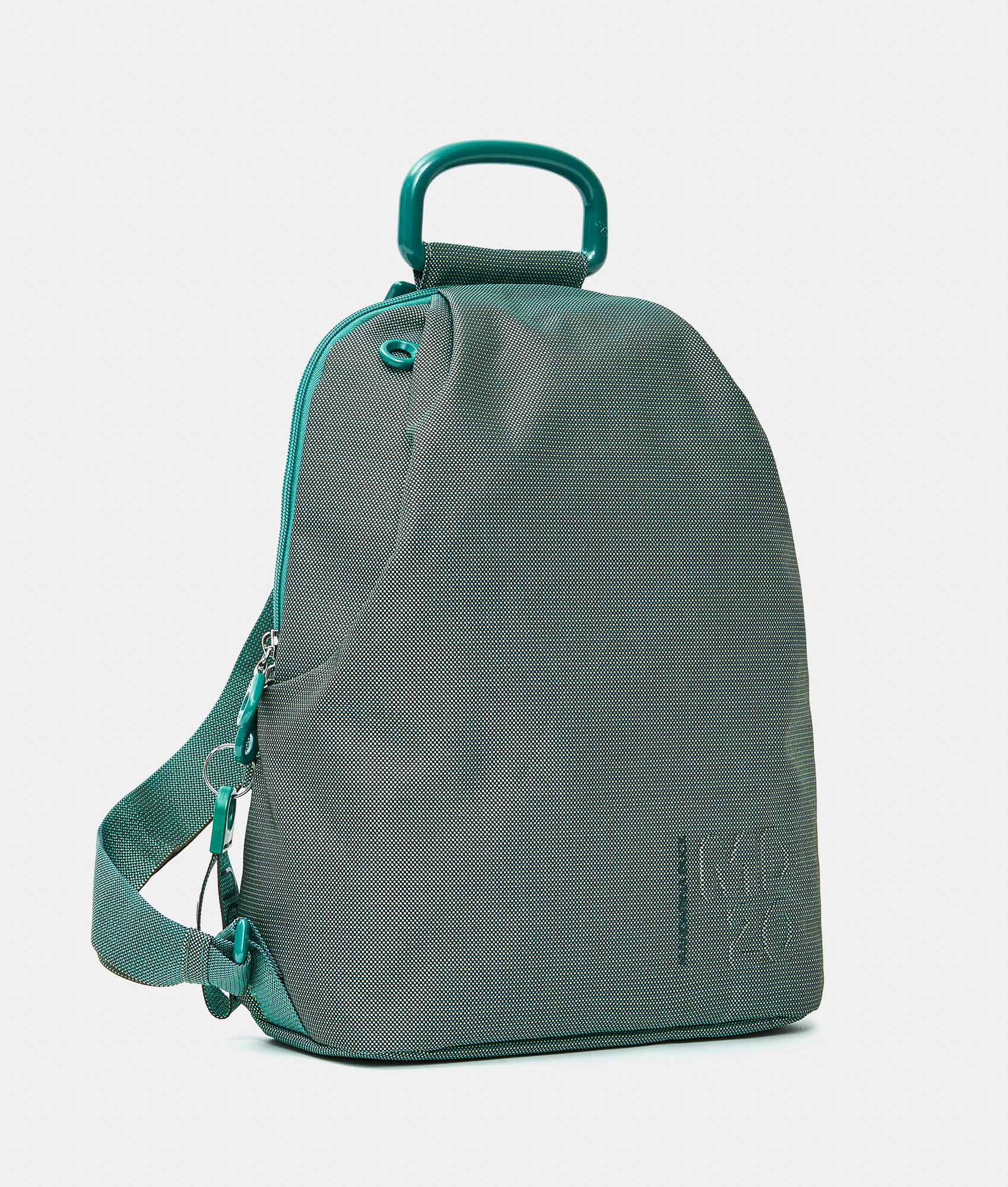 Backpack with handle and side zip pockets in fabric. Personalized details and adjustable jacquard straps.