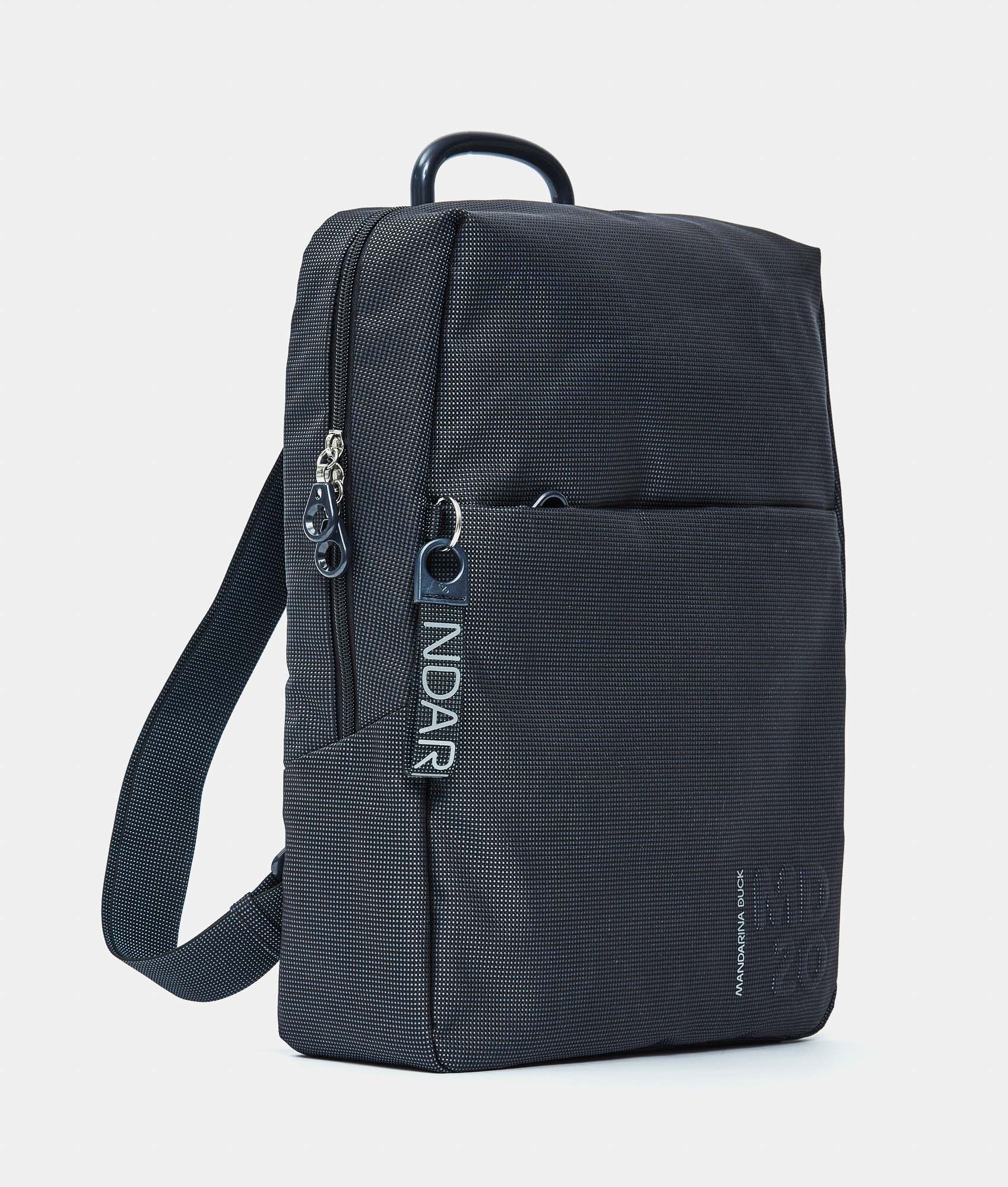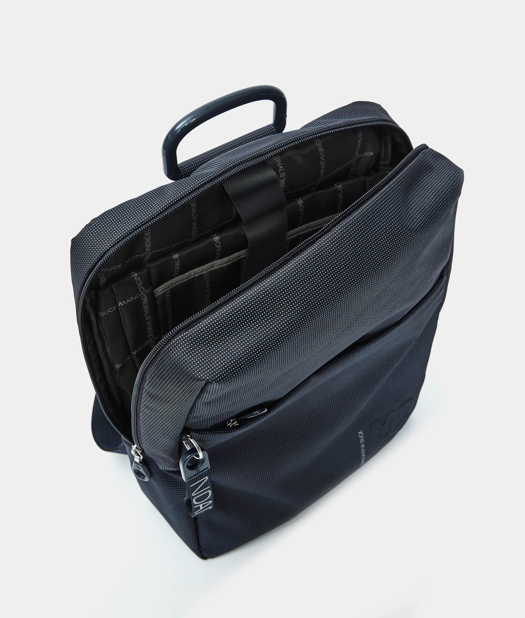 15" laptop backpack with handle and front zip pocket in fabric. Personalized details and adjustable jacquard shoulder straps.