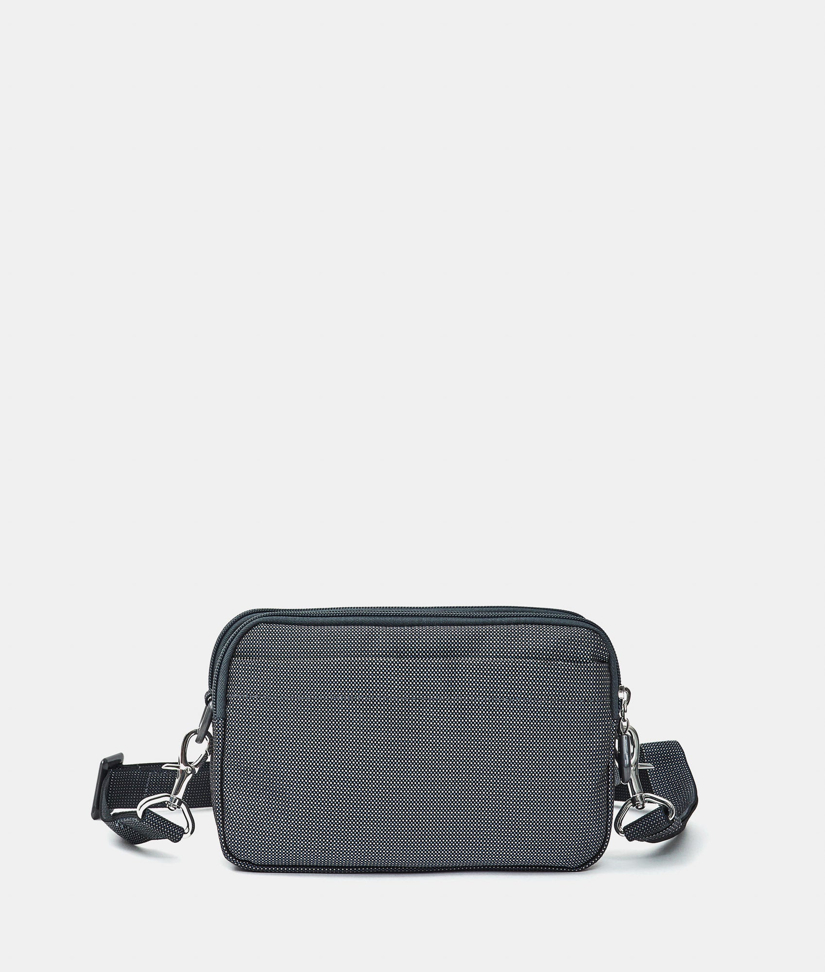 Mini crossbody bag, double zip compartment in fabric. Double portability, personalized details, removable and adjustable jacquard shoulder strap.