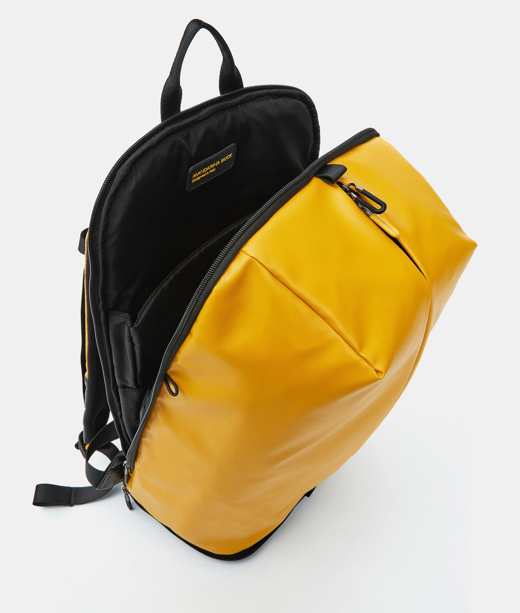 ECO COATED is Mandarina Duck's casual cross-category and cross-gender collection, featuring a youthful and energetic look. It is made from 100% recycled polyester fabric derived from the recovery and transformation of plastic bottles (PET). For those seeking spacious, functional accessories with multiple pockets and meticulous attention to detail, this line is crafted from a durable, water-resistant coated fabric. The collection is part of the ECODUCK TM project, through which Mandarina Duck commits to ensuring more conscious and sustainable production with recycled materials. The main external fabric is made with the equivalent of 22 recycled PET bottles (0.5l - 20g).