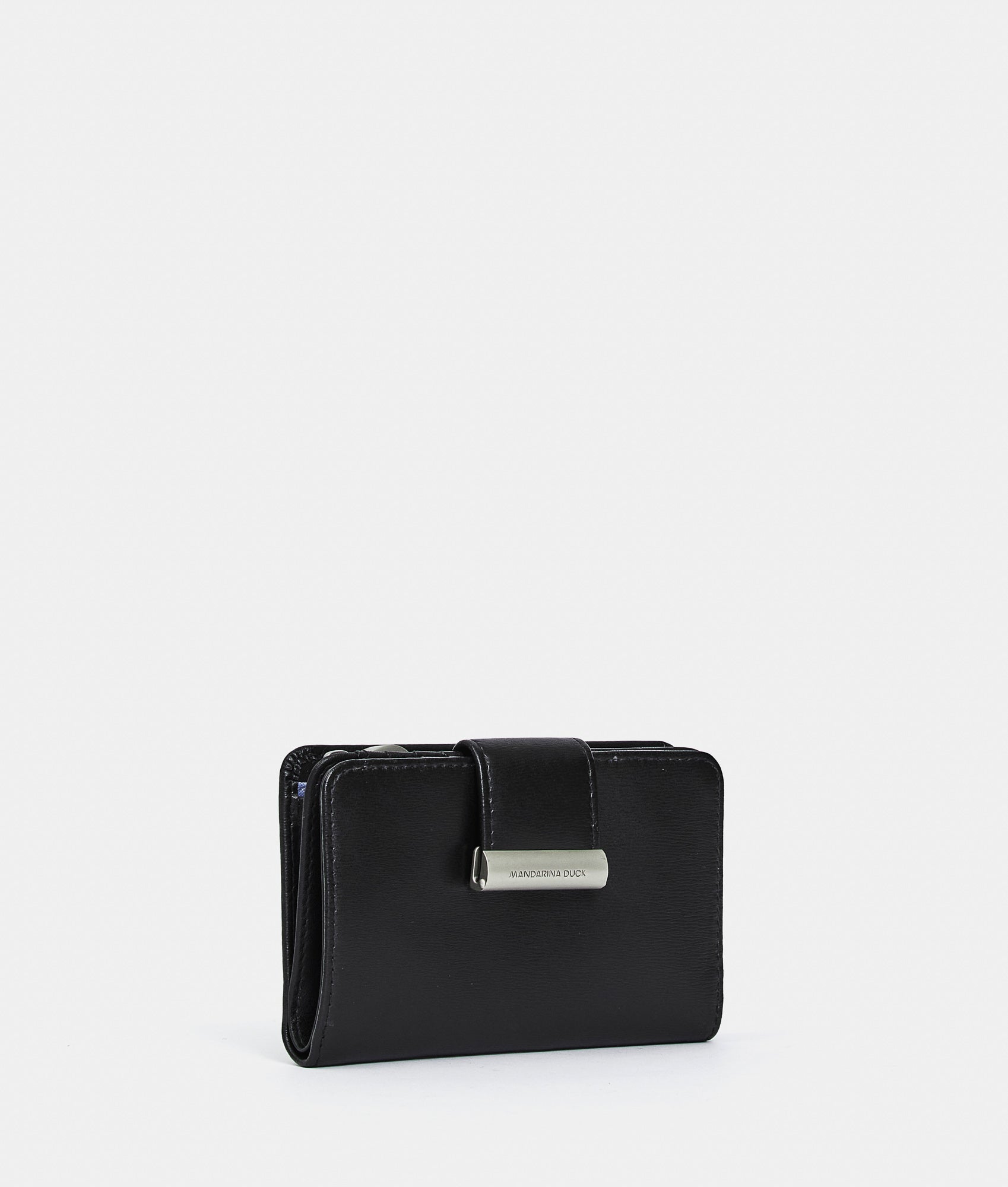 Hera is the line of women’s leather wallet with a strict yet feminine style, thanks to its elegant and essential design. Features a metal logo plate closure. Interior compartments for coins, documents, and credit cards ensure practical use.