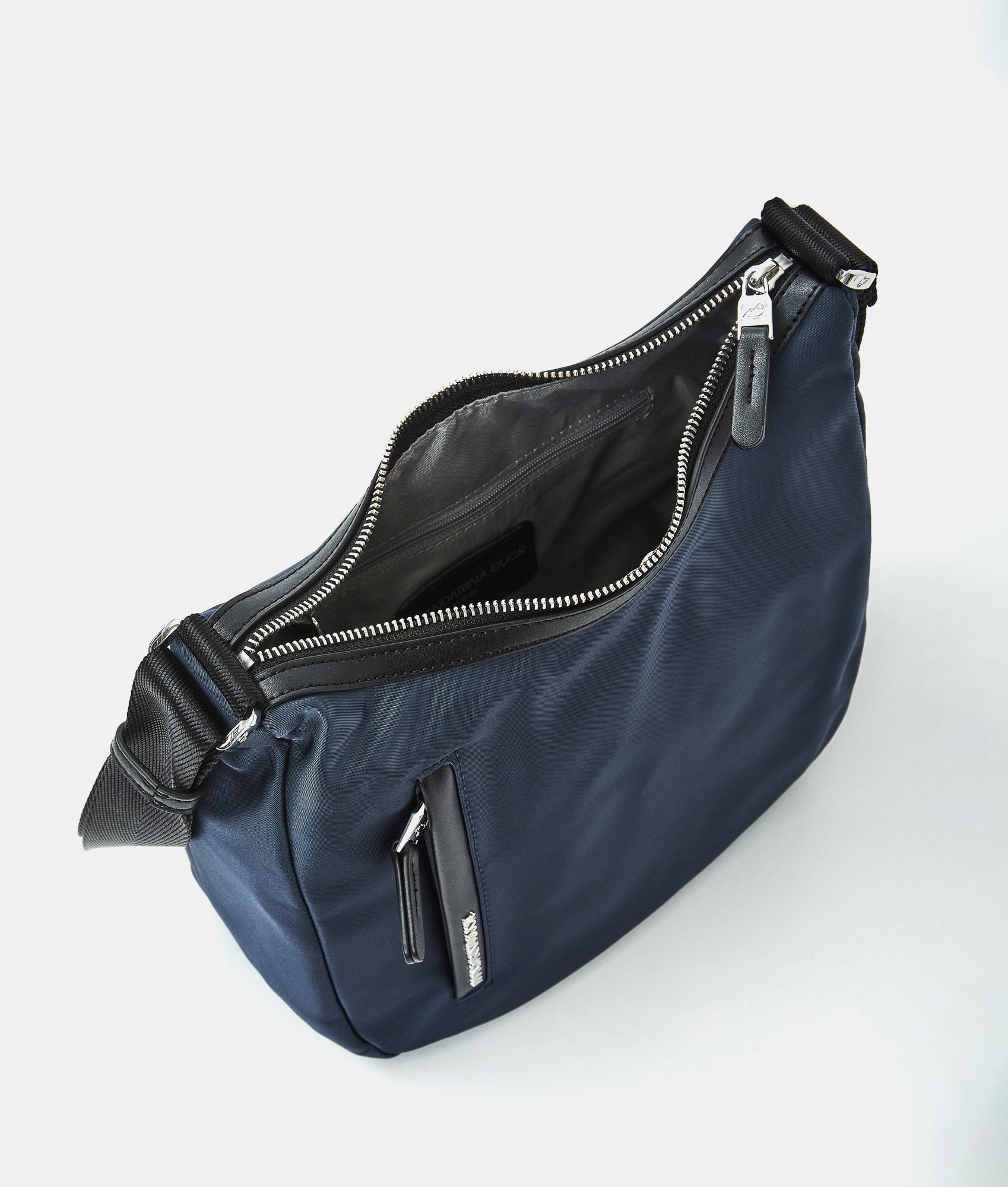 Medium crossbody bag with fabric zipper flat front pocket. Dual carrying options, smart front and internal pockets, custom details and adjustable jacquard strap.