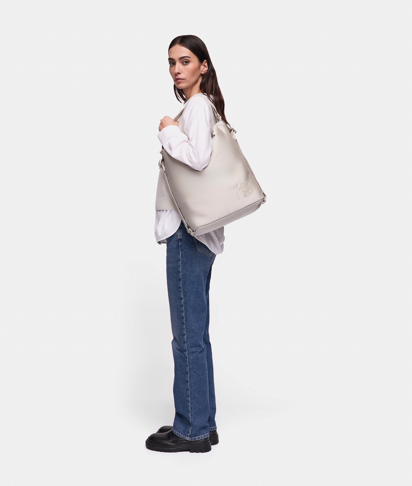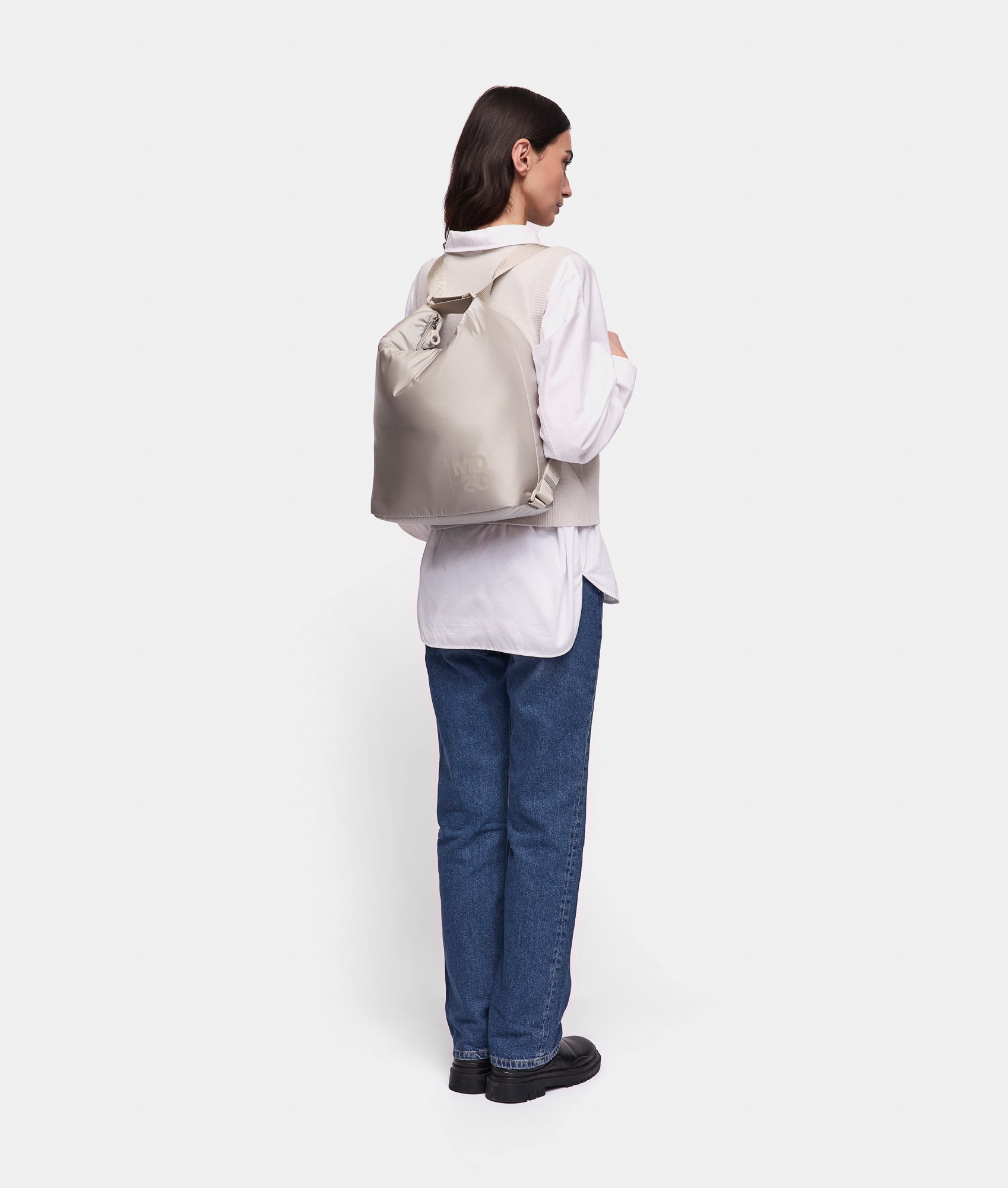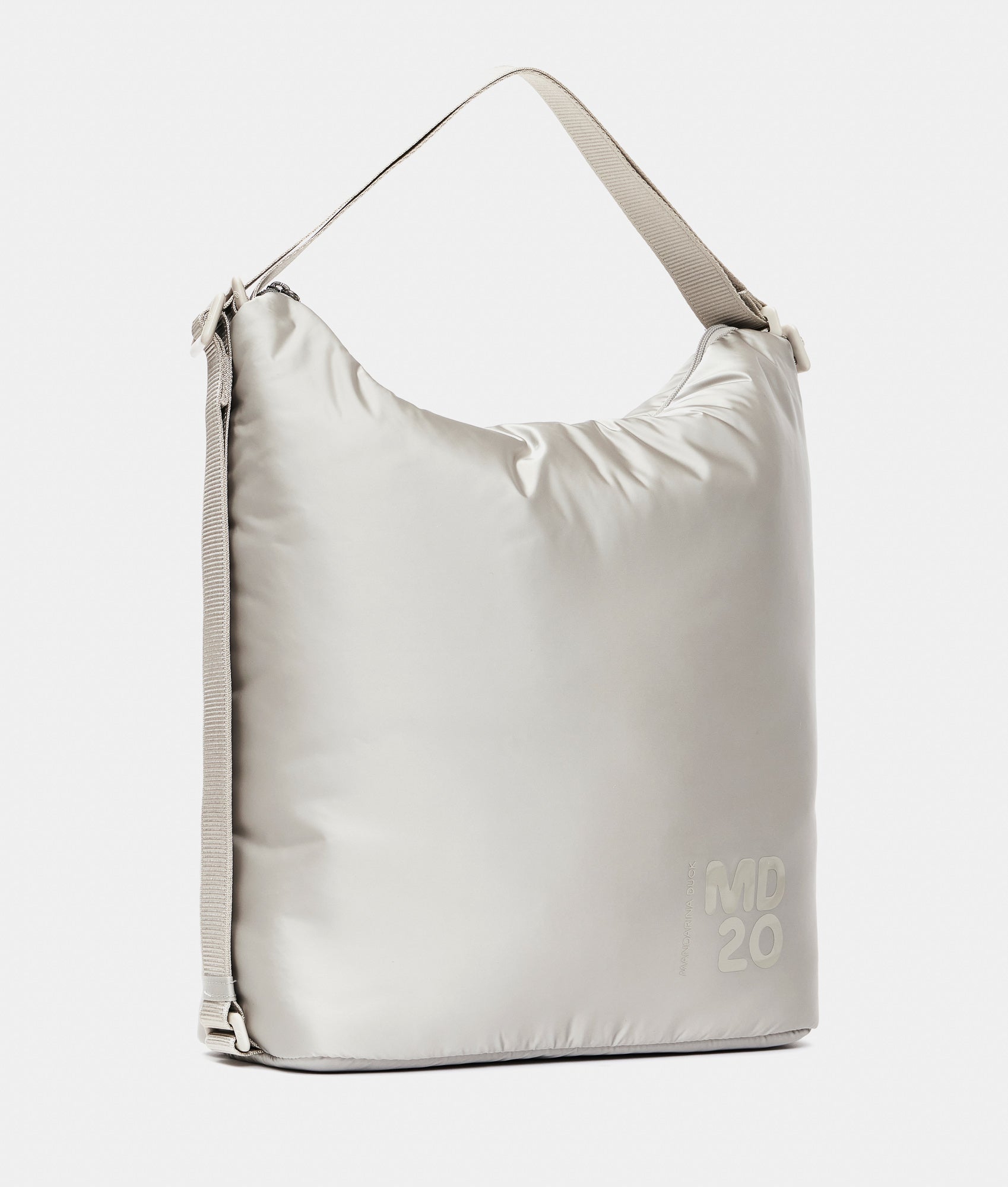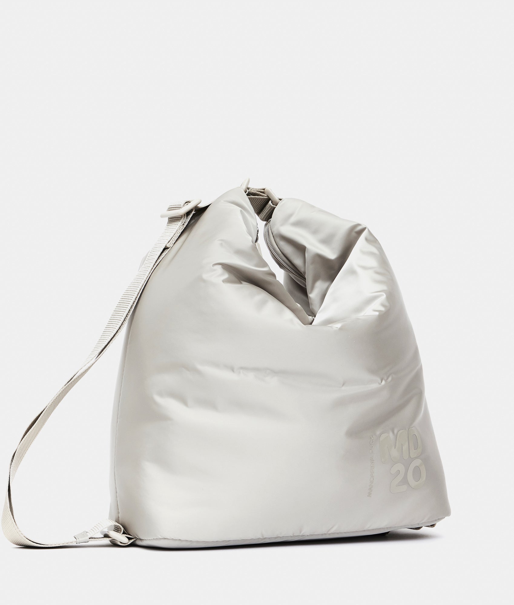 The MD20 Balloon line is the new feminine and functional proposal made from padded nylon, lightweight and soft to the touch. The collection features the best-selling MD20 models, including crossbody bags and backpacks in small and medium sizes. Additionally, two "they're never full" totes - large and medium - come in a reversible bi-color design with a magnetic closure on the sides and front. Key elements of the MD20 BALLOON line include the embossed MD20 logo print and a semi-glossy finish jacquard tape shoulder strap. Practical pockets and compartments designed for everyday use, generous storage capacity, and an outdoor-inspired attitude define this collection.