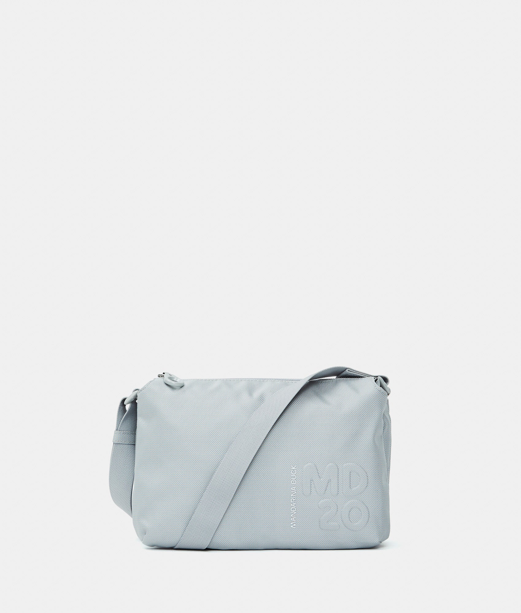 Crossbody bag with triple internal compartments in fabric. Double portability, personalized detaills and adjustable jacquard shoulder strap.