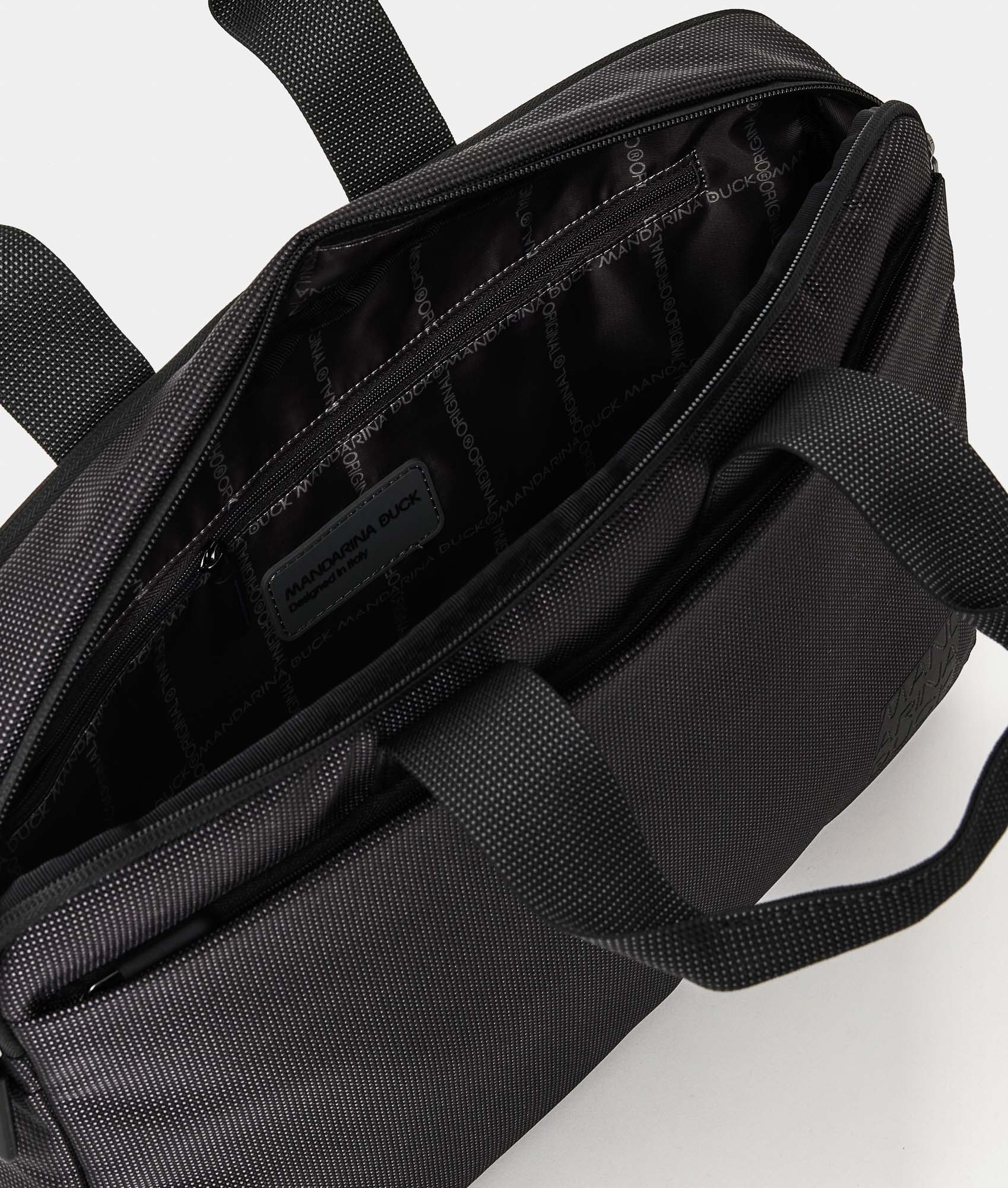 Smart functionality meets casual style in District, a line inspired by Mandarina Duck heritage and reimagined for a modern, laid-back business approach. The versatile shapes, designed to adapt to different needs, incorporate the signature details of the iconic MD20 collection. Crafted from the innovative Mitrix fabric's lightweight yet durable, with its distinctive bicolor texture District is finished with a silicone MD logo tag. Large stitched or hidden pockets ensure practicality and comfort, while the thoughtfully designed interior keeps laptops, tablets, and small essentials secure and organized.