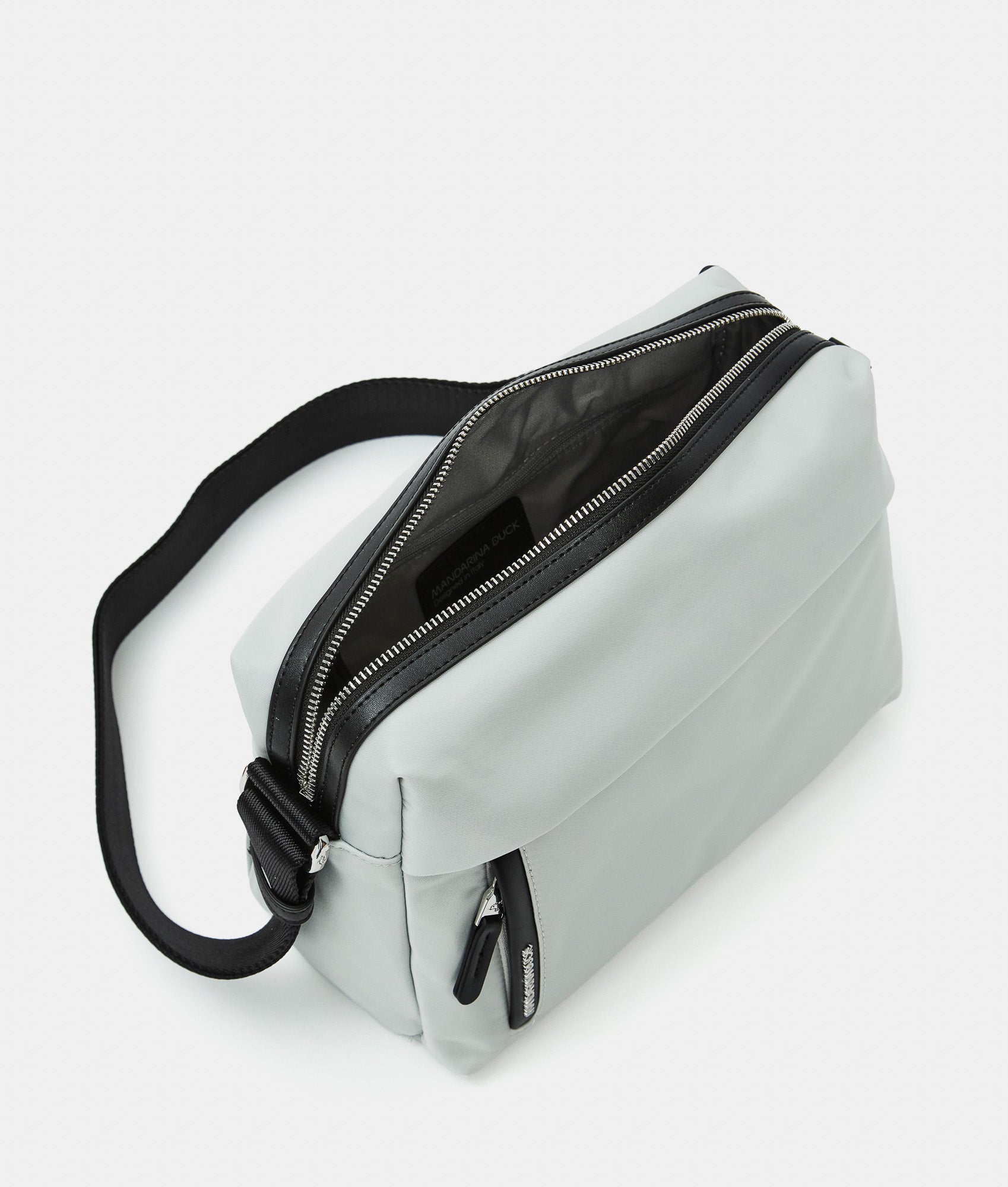 Medium crossbody bag with fabric zipper front pocket. Dual carrying options, smart front and internal pockets, custom details and adjustable jacquard strap.