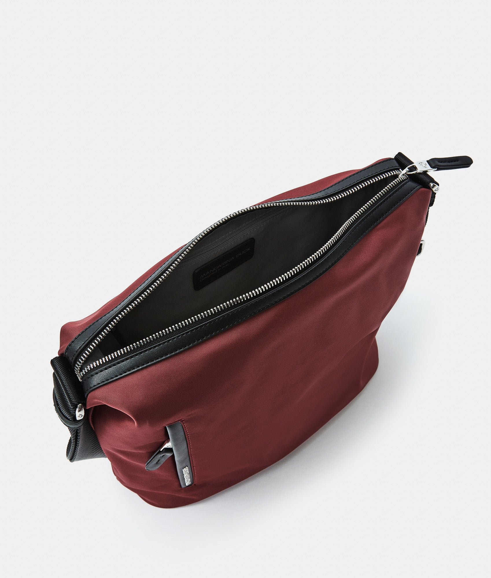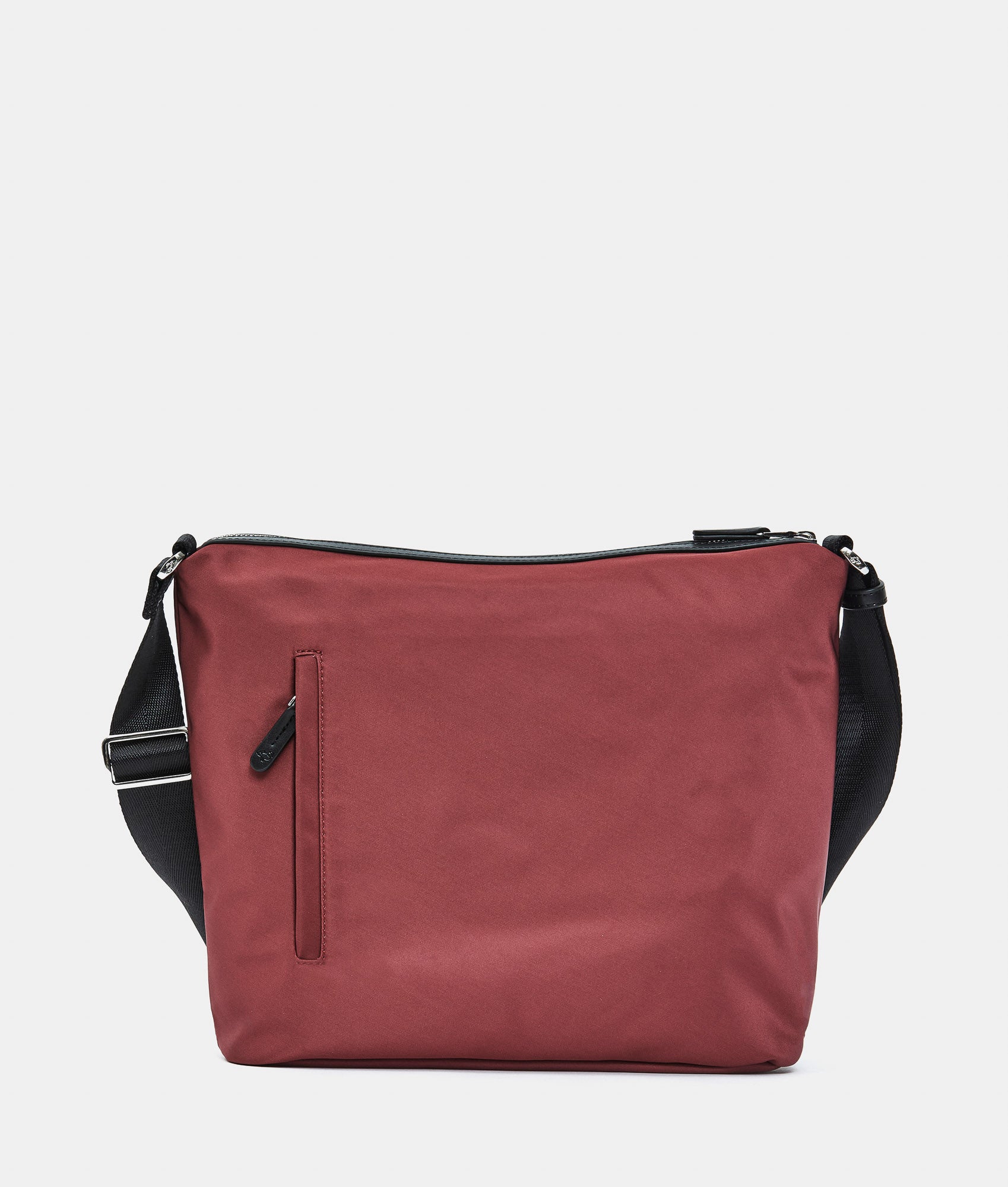 Medium crossbody bag with fabric zipper flat front pocket. Dual carrying options, smart front, back, and internal pockets, custom details and adjustable jacquard strap.