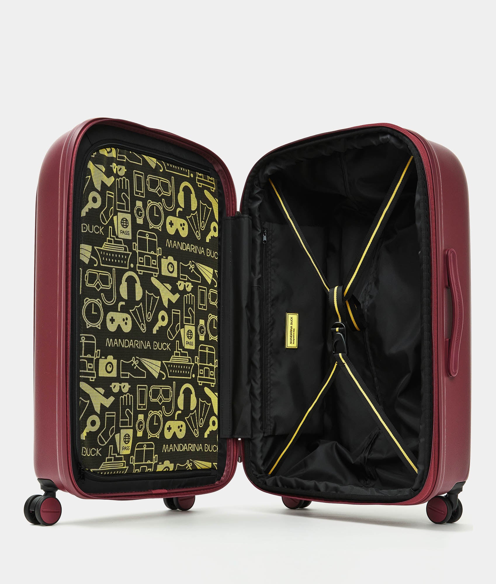 In a world of luggage with strict shapes and formal color palettes, Mandarina Duck stands out with LOGODUCK, a polycarbonate line dedicated to travel, featuring soft and rounded shapes and a compact volume. The leitmotif is color in all its shades, signaling a new, more fluid and informal way of traveling. Mandarina Duck aims to offer authentic and genuine travel experiences with its products, moving away from traditional tourist habits and embracing a functional, comfortable, and lightweight travel experience.