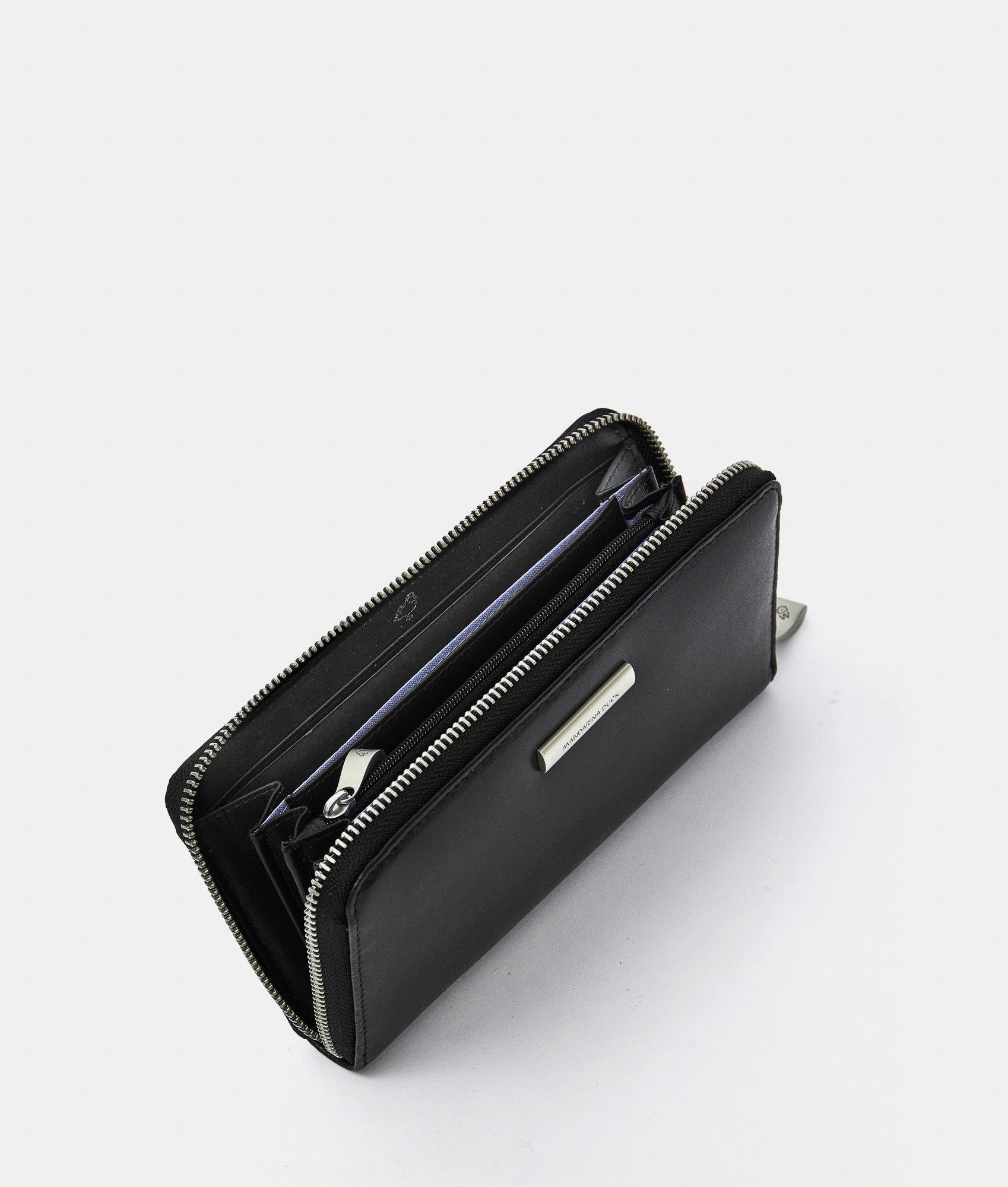 Hera è la linea di portafogli da donna in pelle dallo stile rigoroso ma femminile grazie al design elegante ed essenziale. Chiusura con placchetta metallica logata. Presenza di scomparti interni per monete, documenti e carte di credito che consentono praticità di utilizzo.