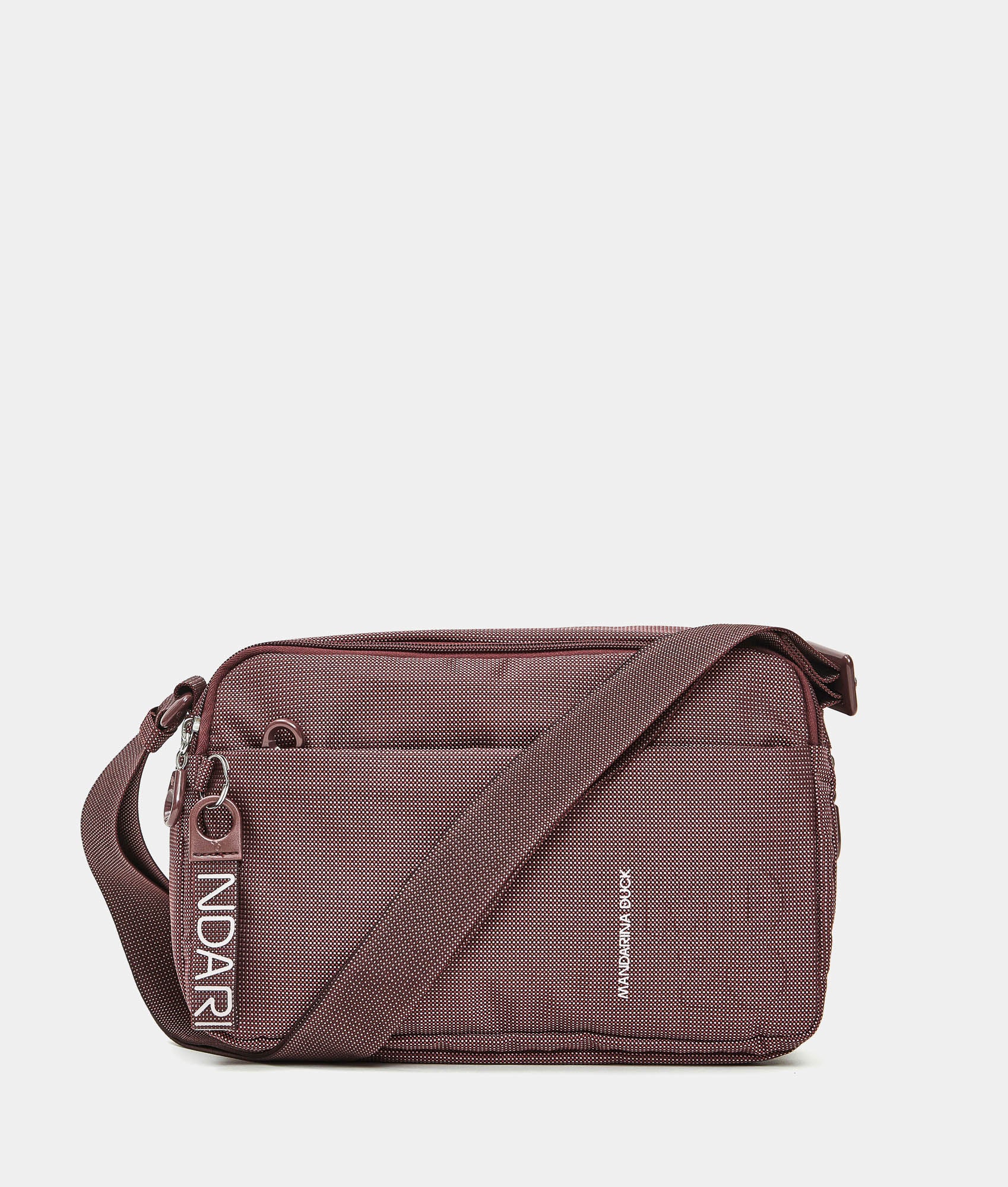 Borsa a tracolla media espandibile con zip inferiore e tasca frontale in tessuto. Doppia portabilità, tasche smart, dettagli personalizzati e tracolla regolabile in jacquard.
