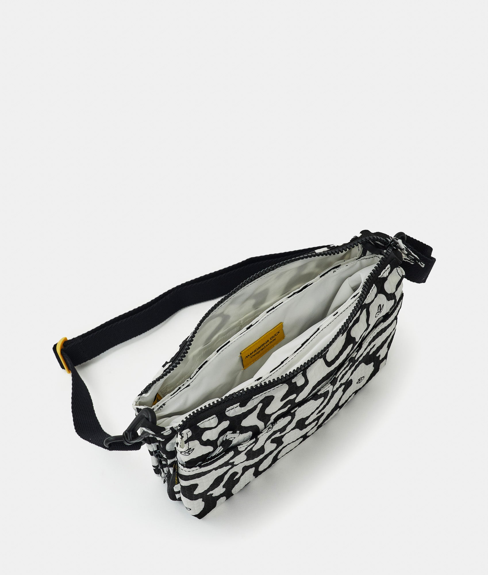 REVIVAL 2.0 incarna il DNA di Mandarina Duck: funzionalità, materiali performanti, leggerezza, colore e sostenibilità. Il tessuto principale, ottenuto da bottiglie di plastica riciclate (PET), è leggero, resistente e facilmente ripiegabile in una pratica tasca trasparente riutilizzabile. Parte del progetto ECODUCK™, la linea utilizza materiali 100% riciclati, inclusa la fodera in tono a contrasto. Ogni modello è accompagnato da un tag in carta riciclata che indica il numero di bottiglie impiegate per realizzarlo. Il viaggio sostenibile di Mandarina Duck continua.
