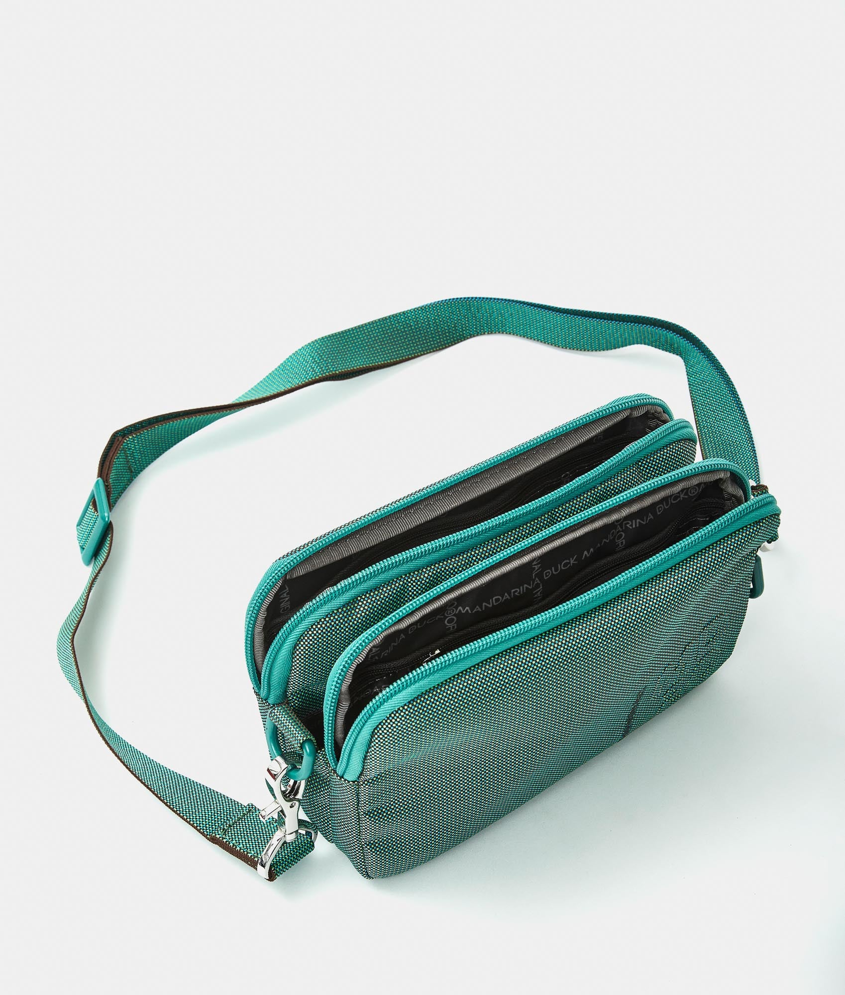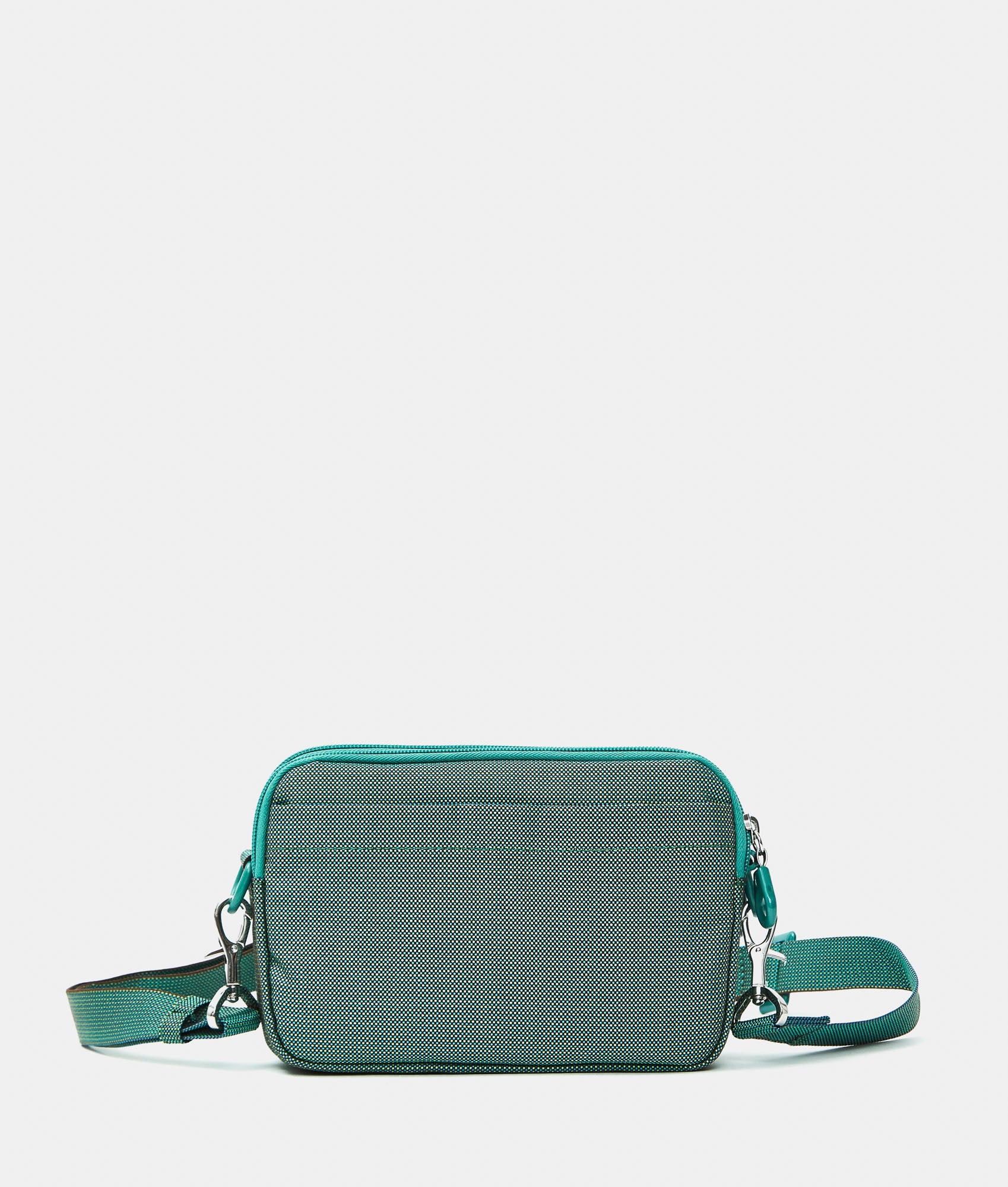 Mini crossbody bag, double zip compartment in fabric. Double portability, personalized details, removable and adjustable jacquard shoulder strap.