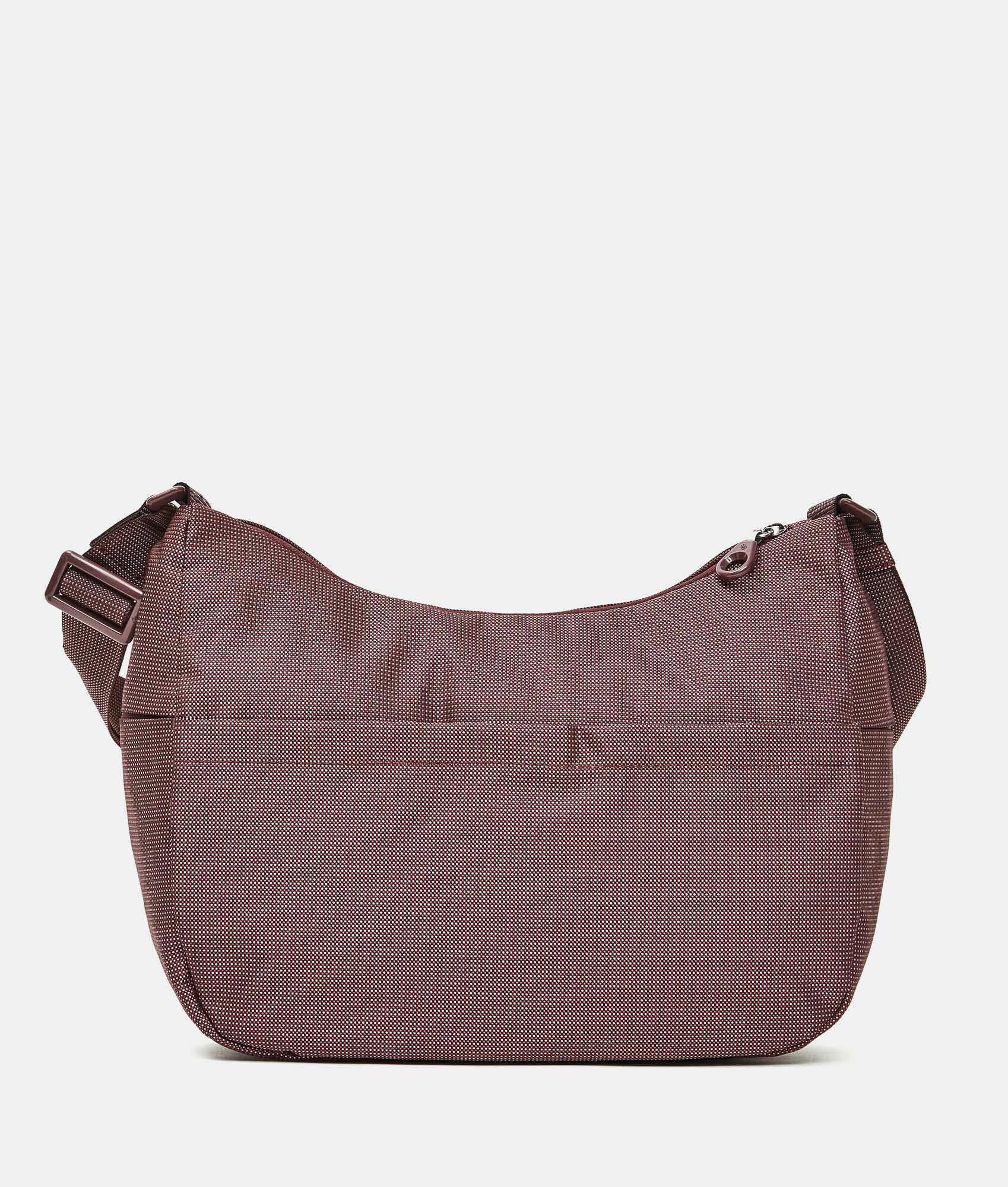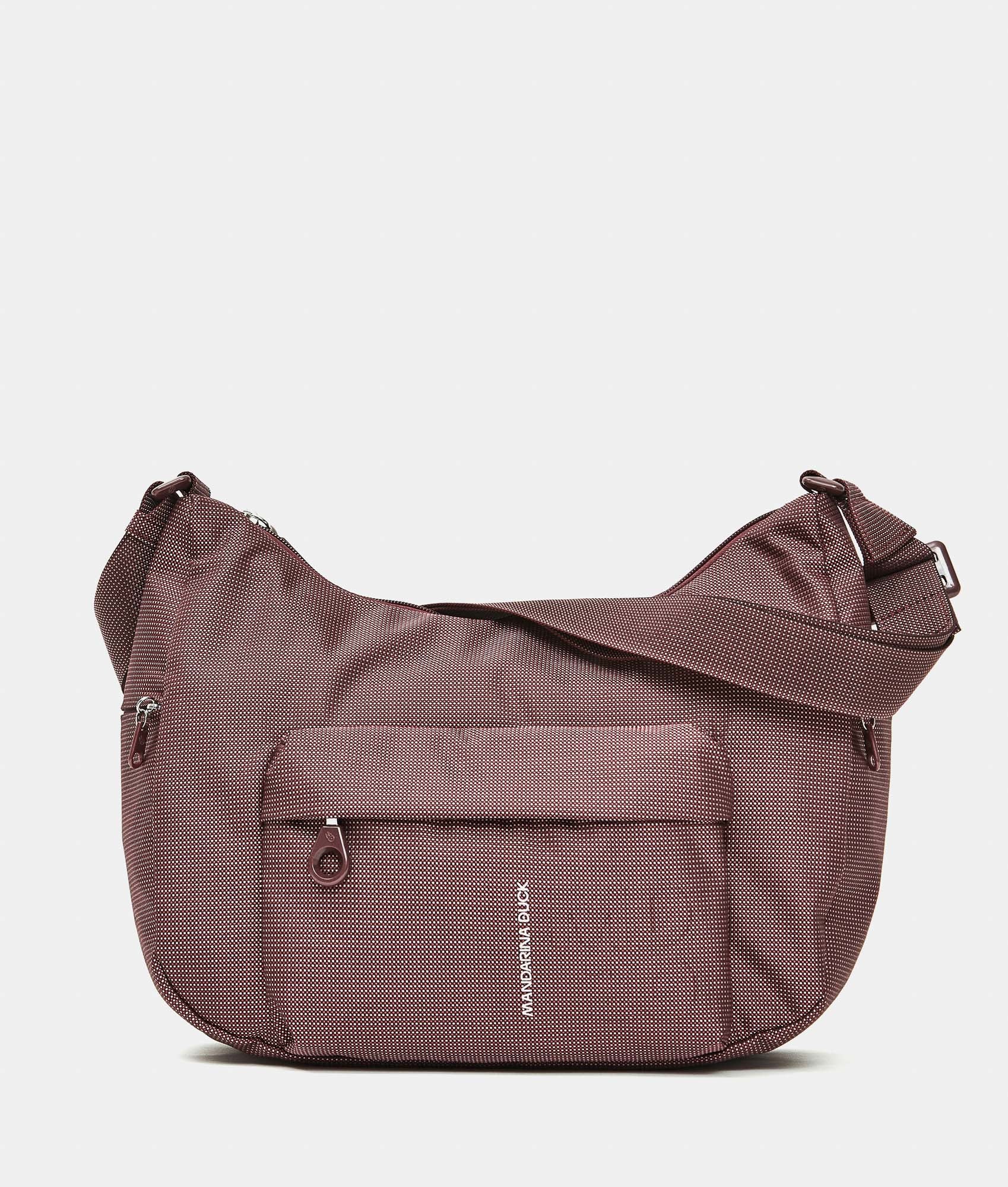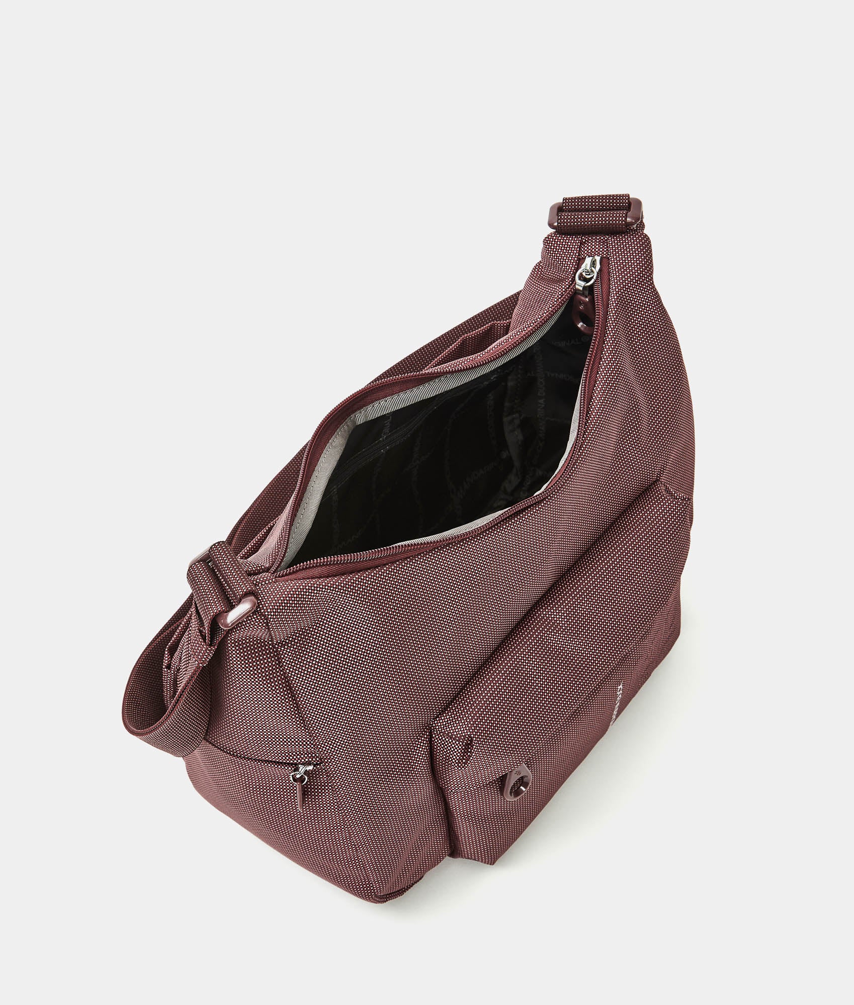 Borsa a tracolla media con tasca frontale e zip in tessuto. Doppia portabilità, tasche smart frontali e interne, dettagli personalizzati e tracolla regolabile in jacquard.