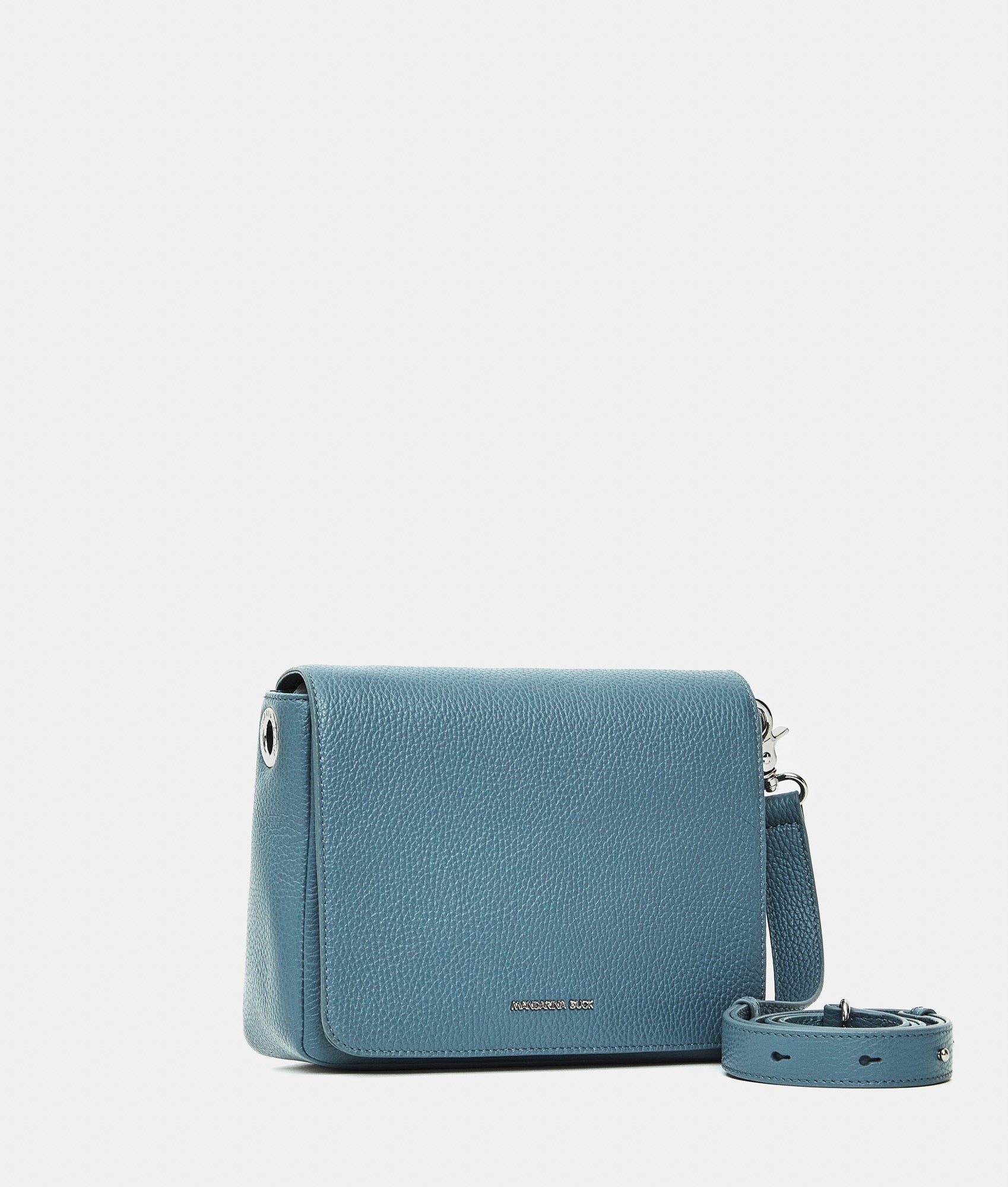 Borsa a tracolla piccola con patta frontale in pelle. Doppia portabilità, tasche smart, dettagli personalizzati in metallo e tracolla regolabile e rimovibile in jacquard.