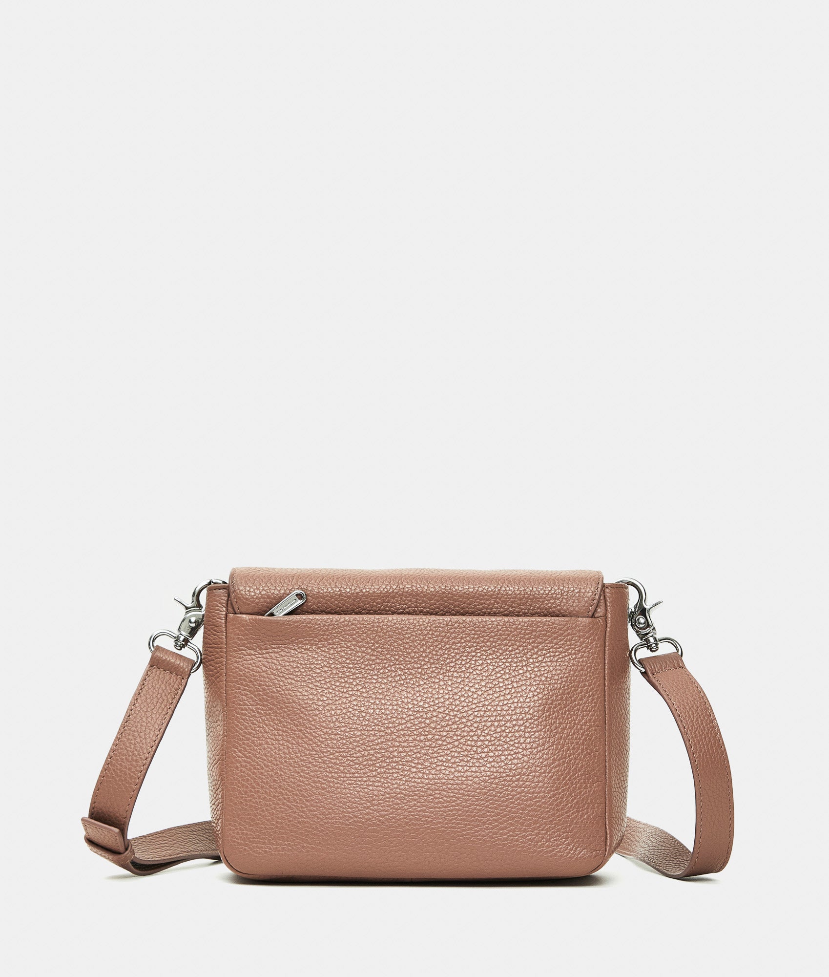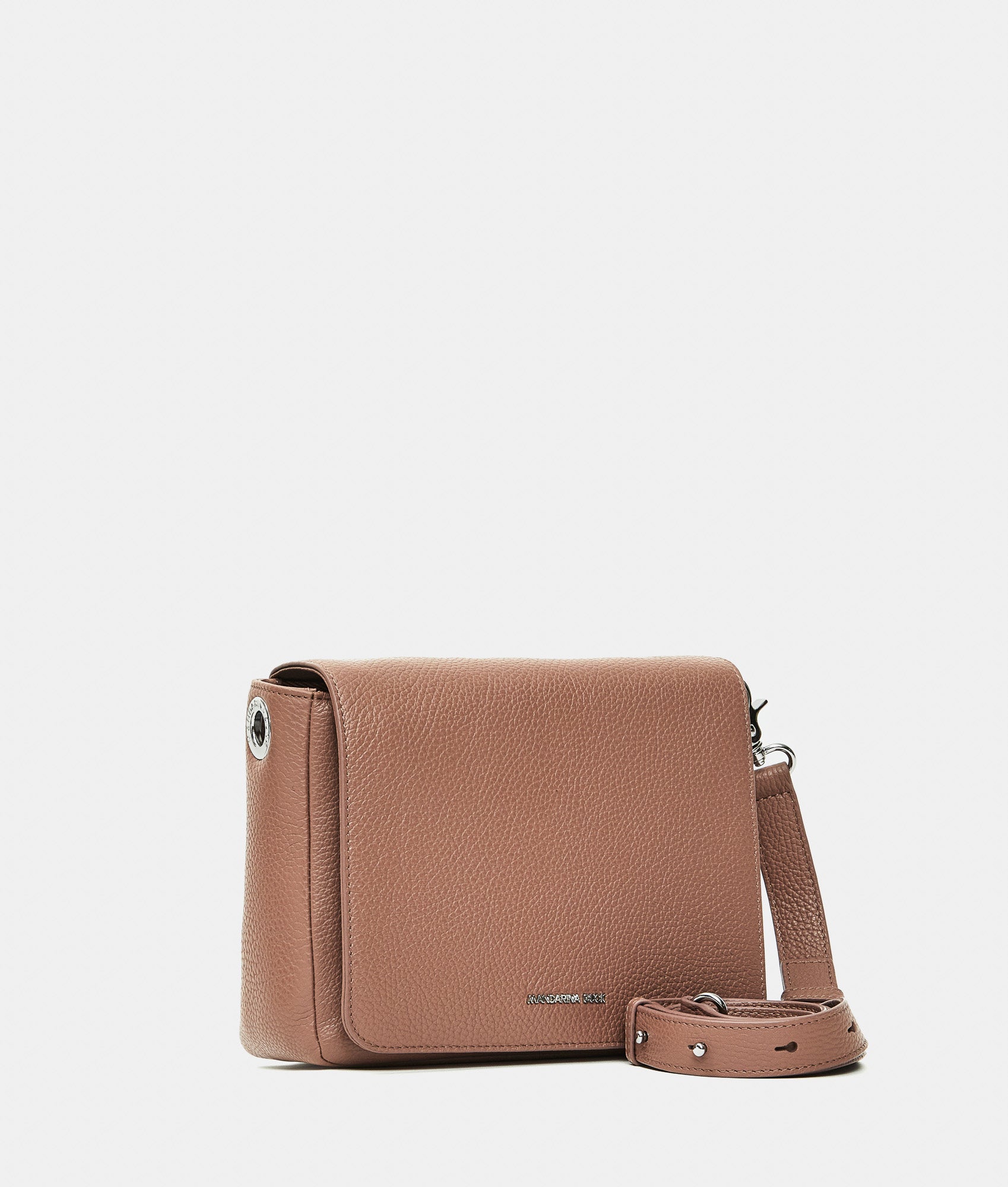 Borsa a tracolla piccola con patta frontale in pelle. Doppia portabilità, tasche smart, dettagli personalizzati in metallo e tracolla regolabile e rimovibile in jacquard.