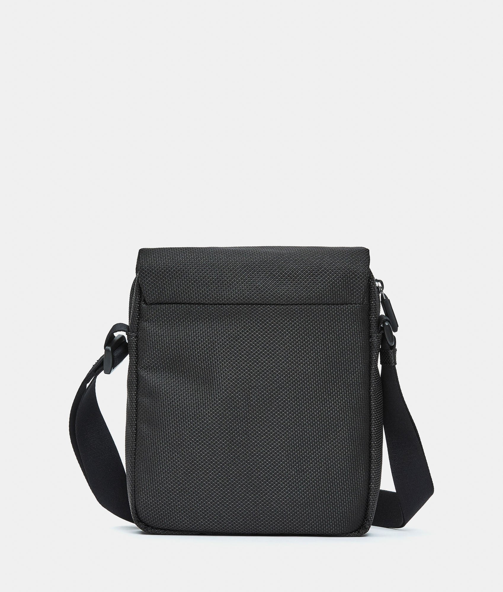 Borsello piccolo con tracolla e tasca frontale con patta con zip in tessuto. Tasche smart frontali e interne, dettagli personalizzati e tracolla regolabile in jacquard.