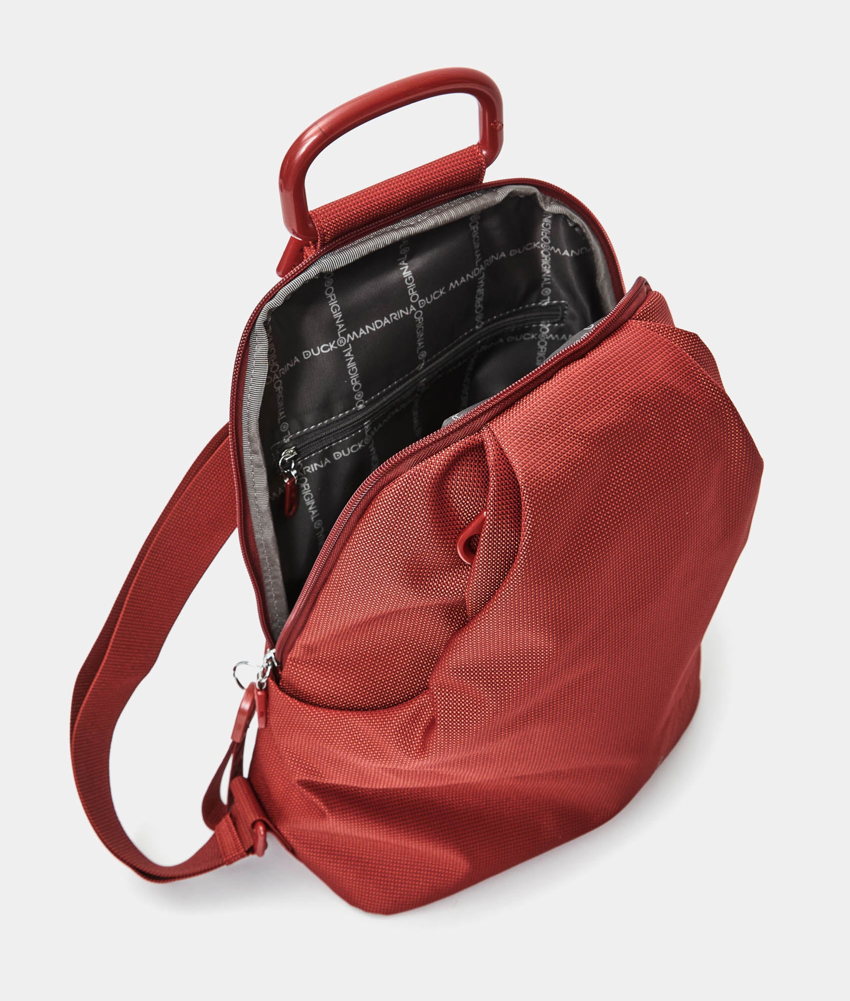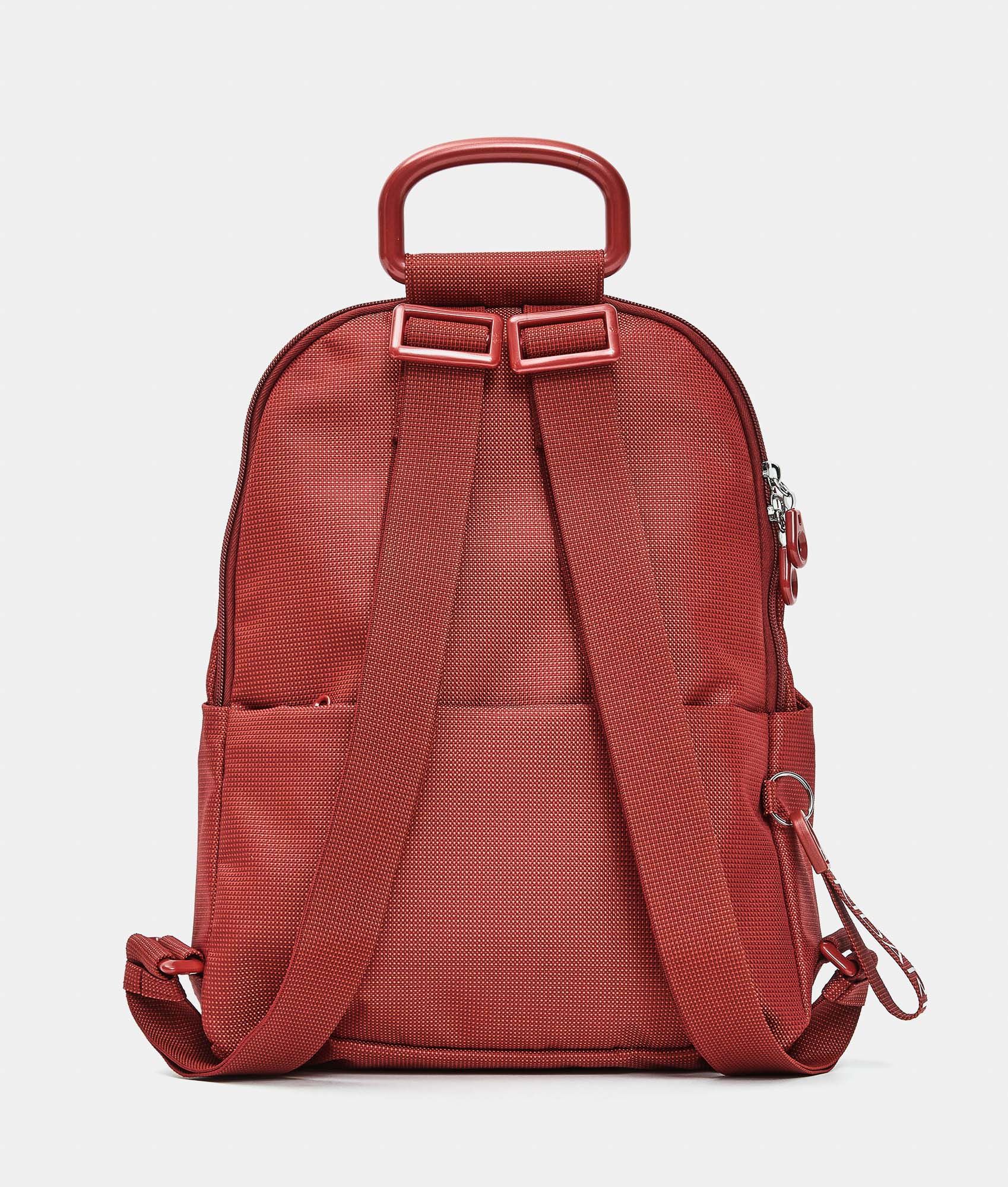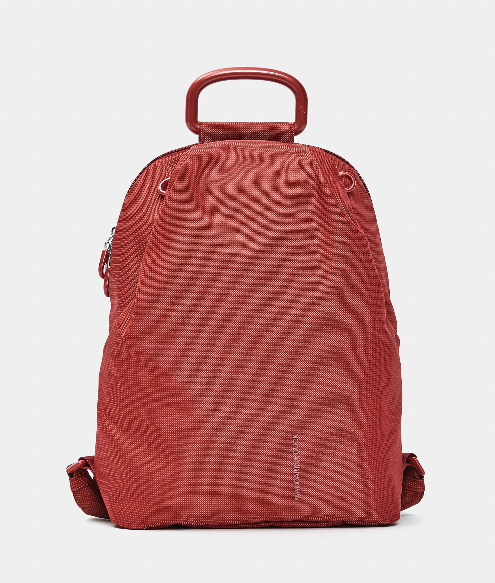 Zaino con manico e tasche laterali con zip in tessuto. Dettagli personalizzati e spallacci regolabili in jacquard.