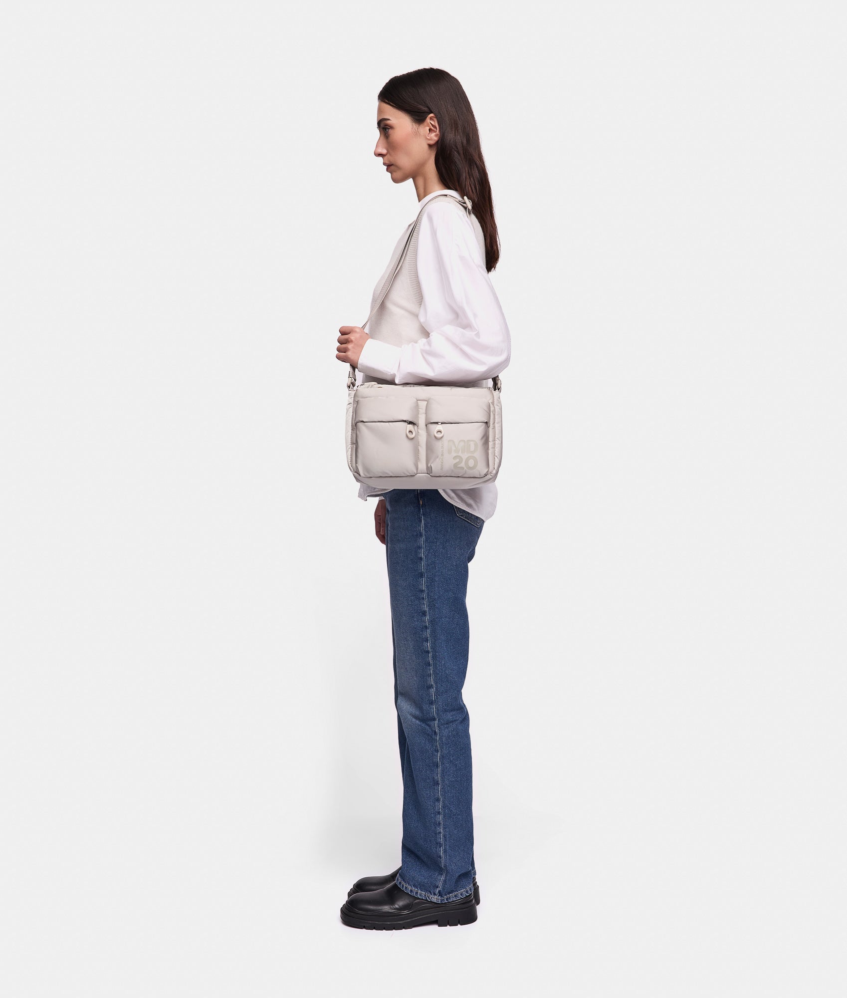 Elementi distintivi della linea MD20 Balloon sono la personalizzazione MD20 con stampa spessorata in rilievo e la tracolla in nastro dal finish semi-lucido. Tasche e comparti studiati per la quotidianità , capienze pratiche da sfruttare al massimo e un'attitudine outwear ne definiscono lo stile.