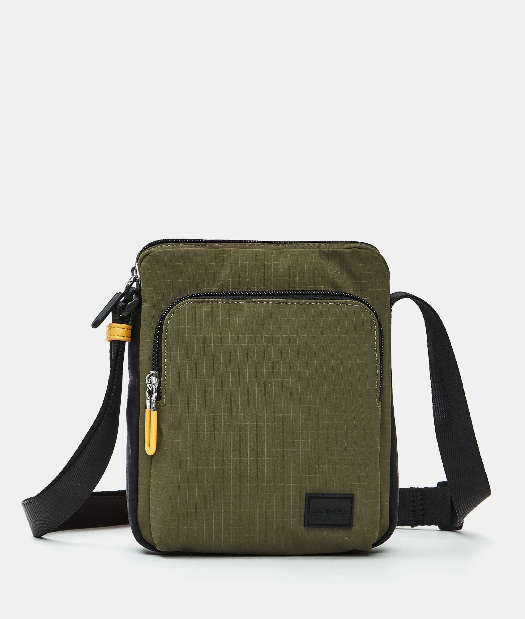Borsello medio con tracolla e tasca frontale con zip, in tessuto. Tasche smart frontali e interne, dettagli personalizzati e tracolla regolabile in jacquard.