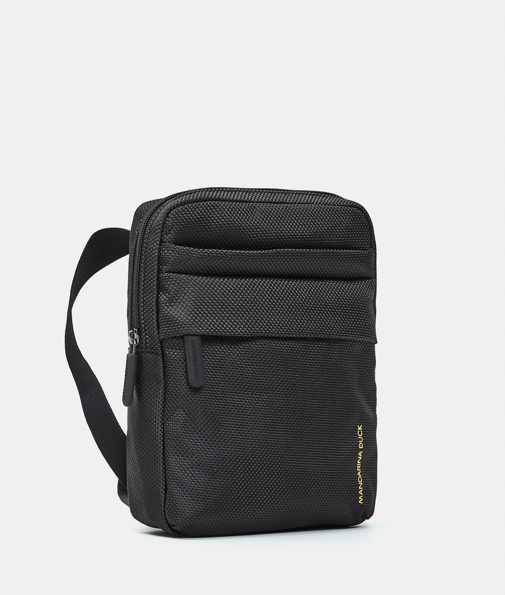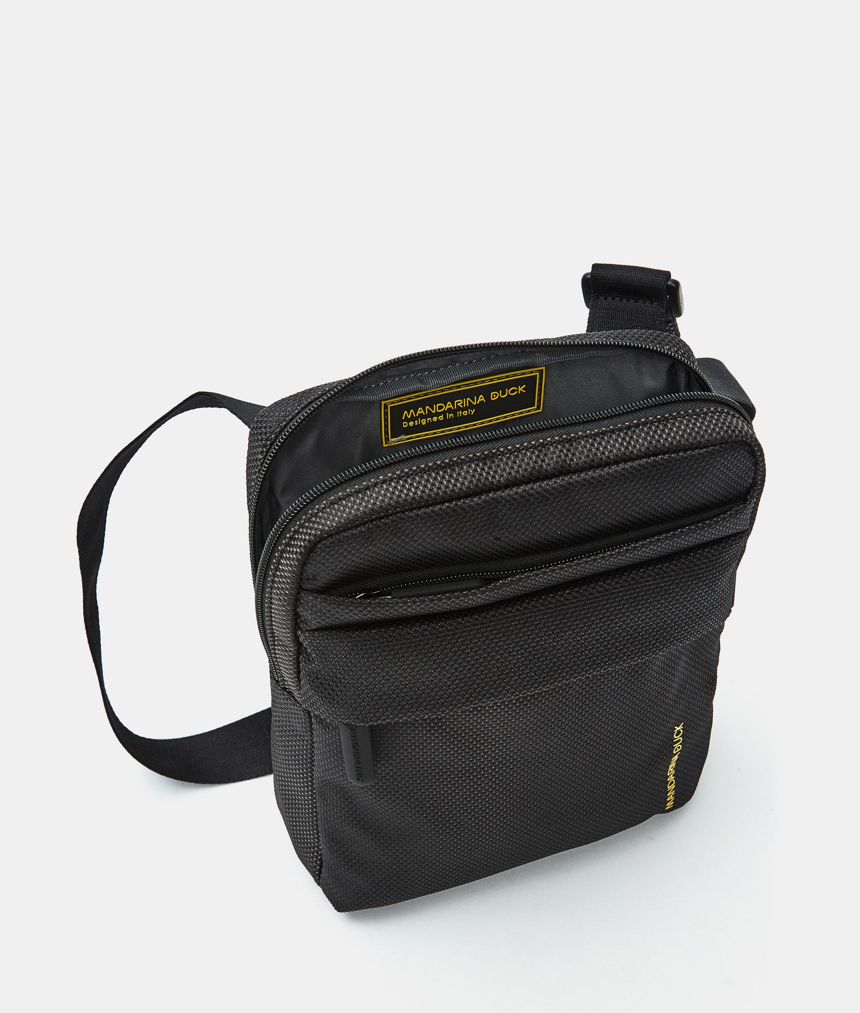 Borsello medio con tracolla e doppie tasche frontali con zip, in tessuto. Tasche smart frontali e interne, dettagli personalizzati e tracolla regolabile in jacquard.