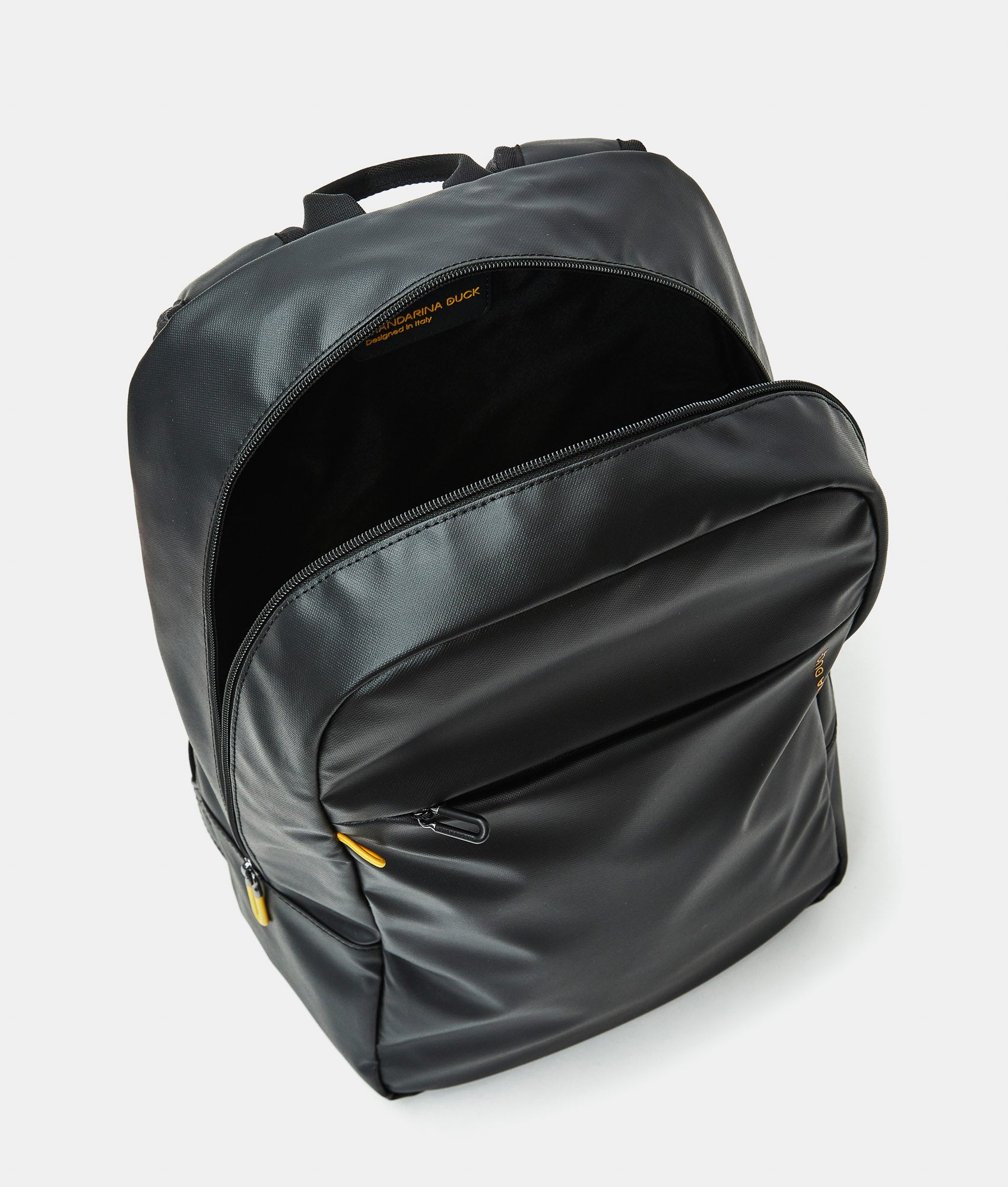 ECO COATED é la collezione casual Mandarina Duck cross category e cross gender, dal look giovane e grintoso, realizzata con un tessuto di poliestere 100% riciclato ricavato dal recupero e la trasformazione di bottiglie di plastica (PET). Per chi cerca accessori che siano capienti, funzionali, dotati di molteplici tasche e studiati nel minimo dettaglio la risposta si trova in questa linea realizzata in un robusto tessuto spalmato resistente all’acqua. La linea è parte del progetto ECODUCK TM, con cui Mandarina Duck si impegna a garantire una produzione più consapevole e sostenibile con materiali riciclati. Il tessuto principale esterno è realizzato con l'equivalente di 26 bottiglie in PET riciclate (0,5l - 20g).