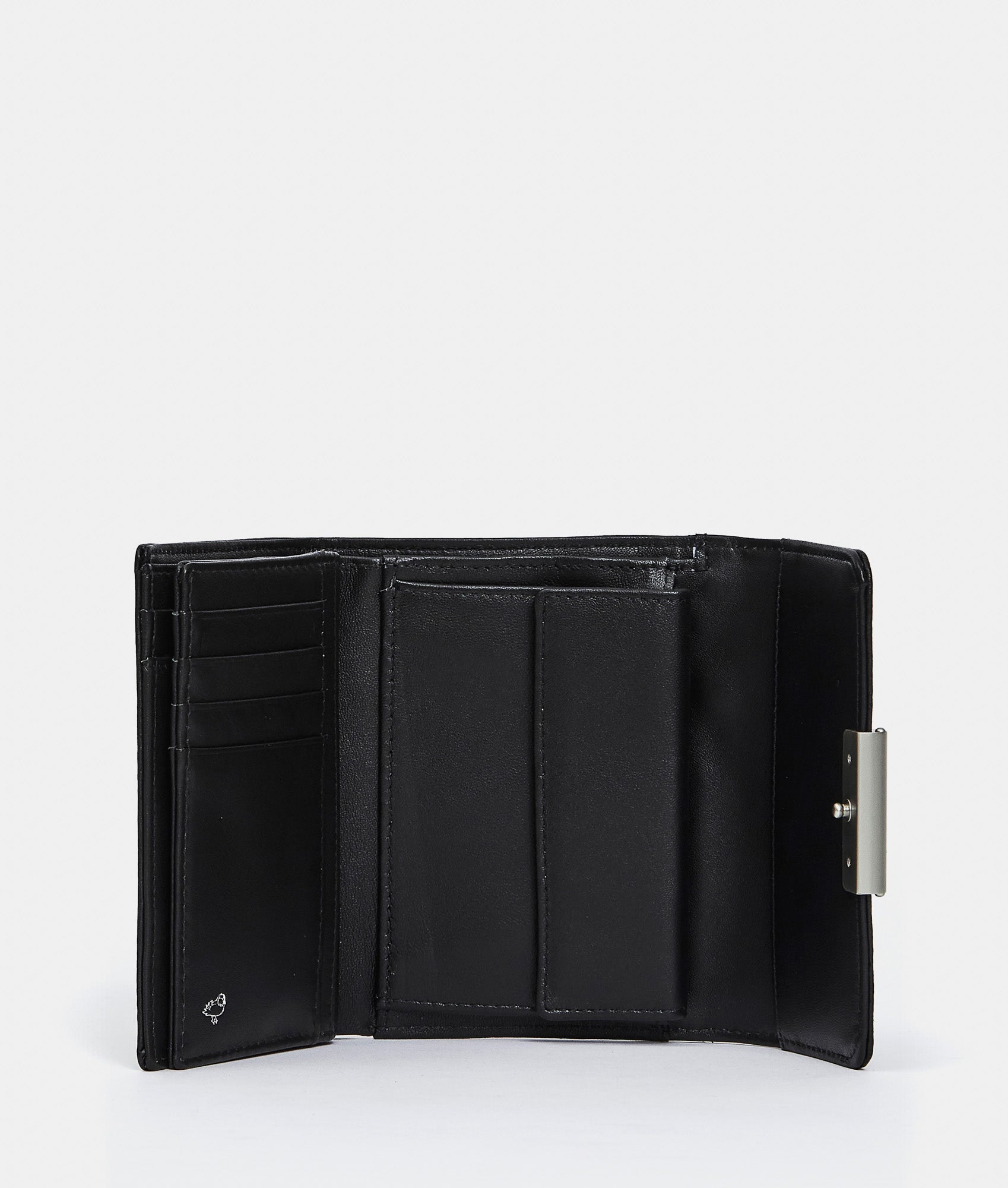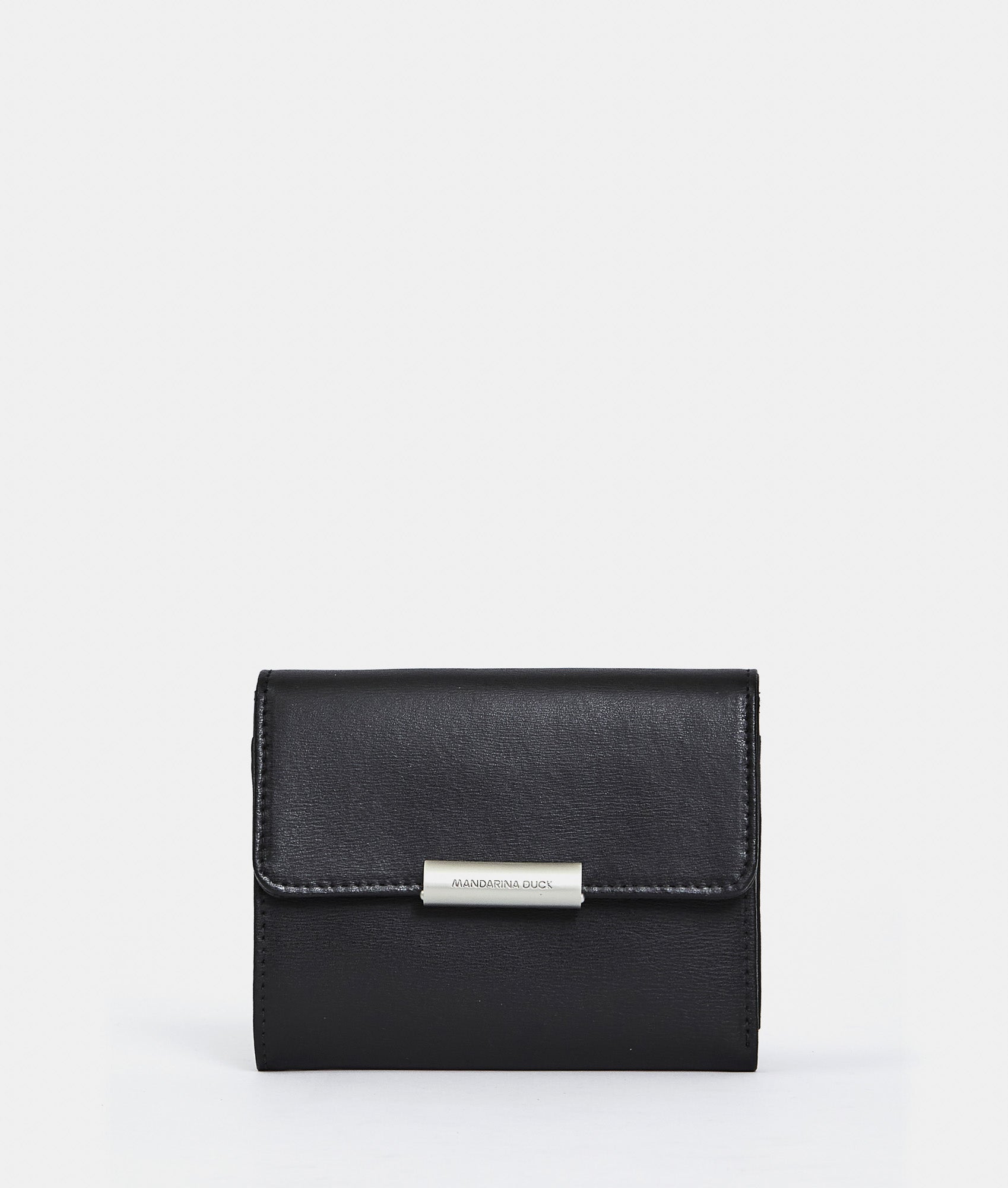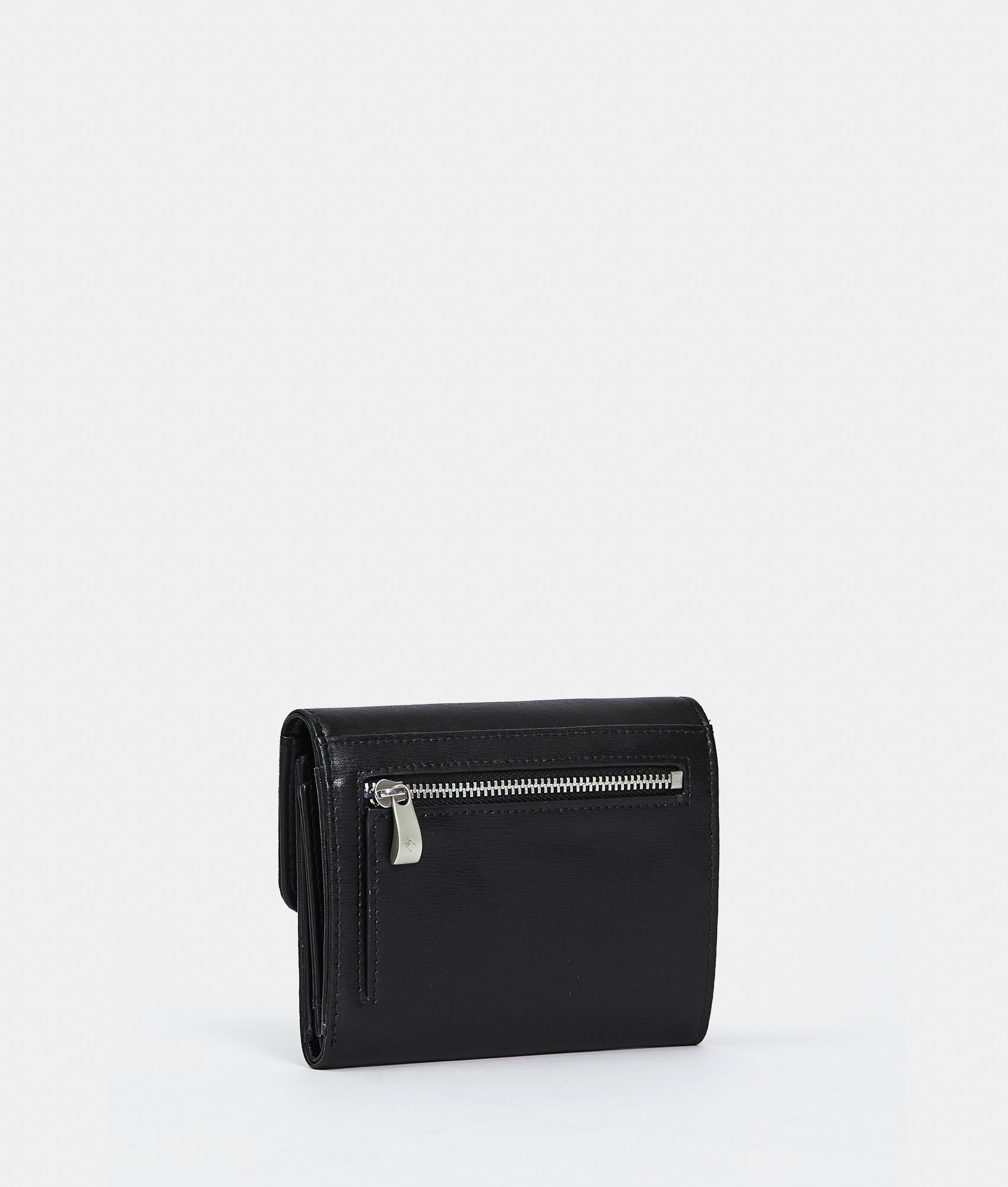 Hera è la linea di portafogli da donna in pelle dallo stile rigoroso ma femminile grazie al design elegante ed essenziale. Chiusura con placchetta metallica logata. Presenza di scomparti interni per monete, documenti e carte di credito che consentono praticità  di utilizzo.