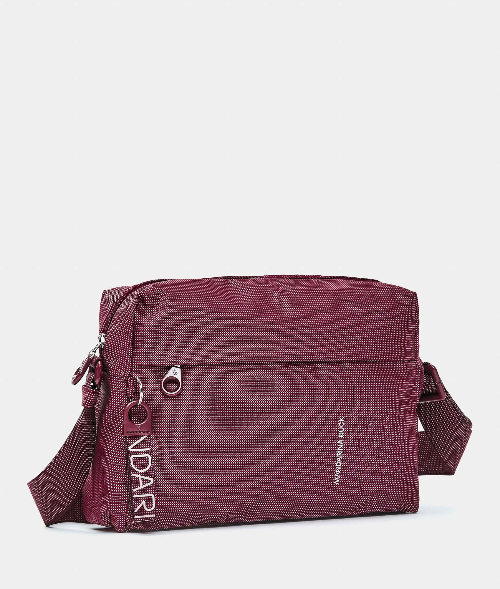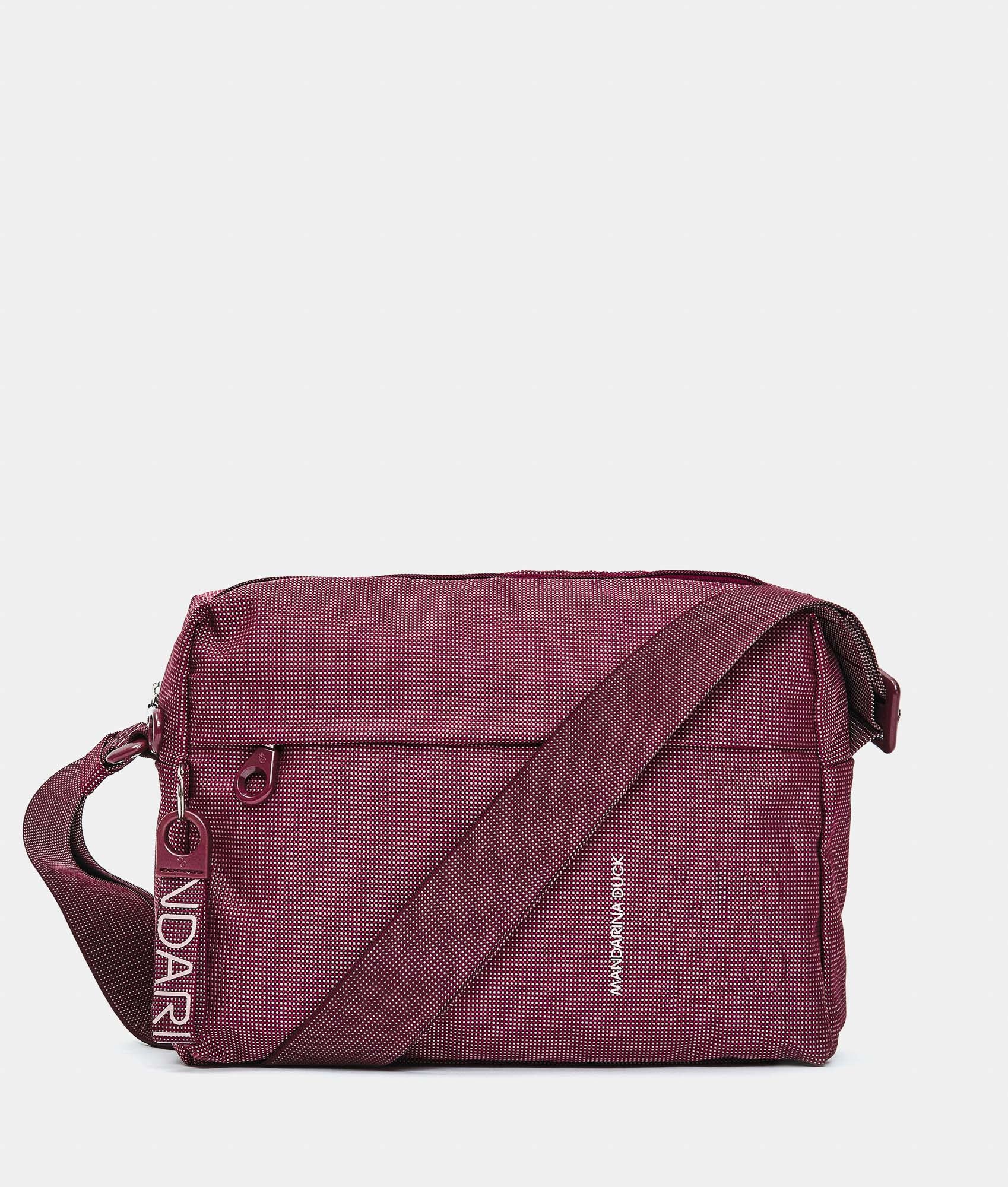 Borsa a tracolla media con tasca frontale in tessuto. Doppia portabilità, tasche smart frontali e interne, dettagli personalizzati e tracolla regolabile in jacquard.