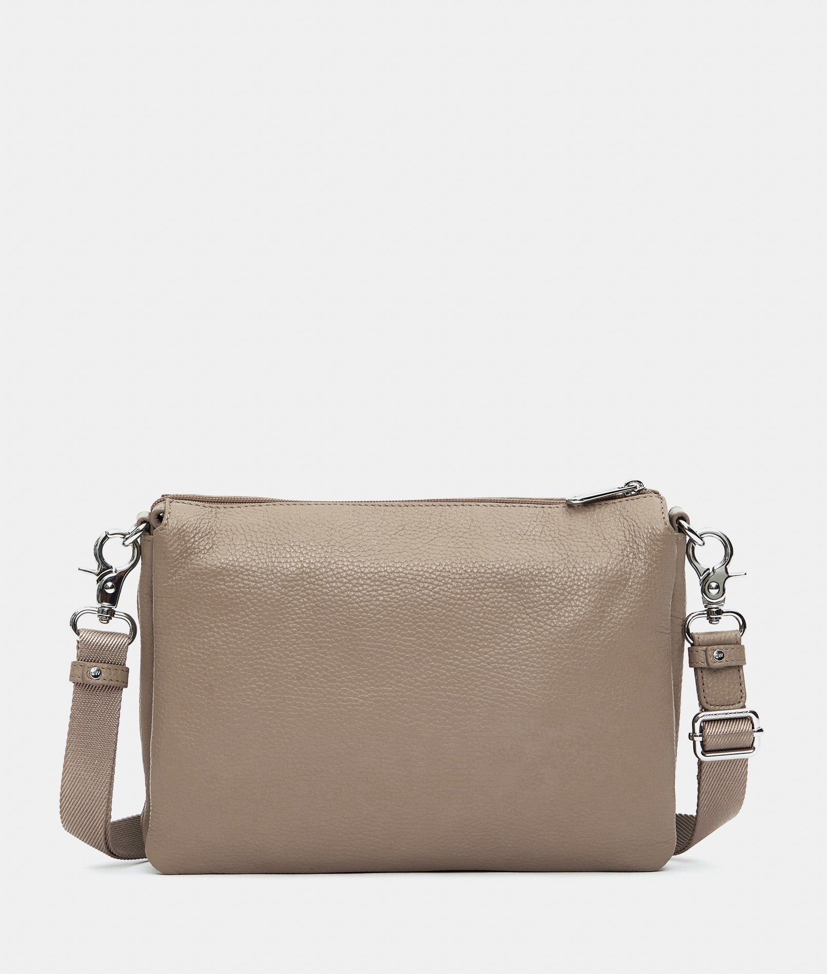 Borsa a tracolla tripla pochette in pelle. Doppia portabilità, tasche smart, dettagli personalizzati in metallo e tracolla regolabile e rimovibile in jacquard.
