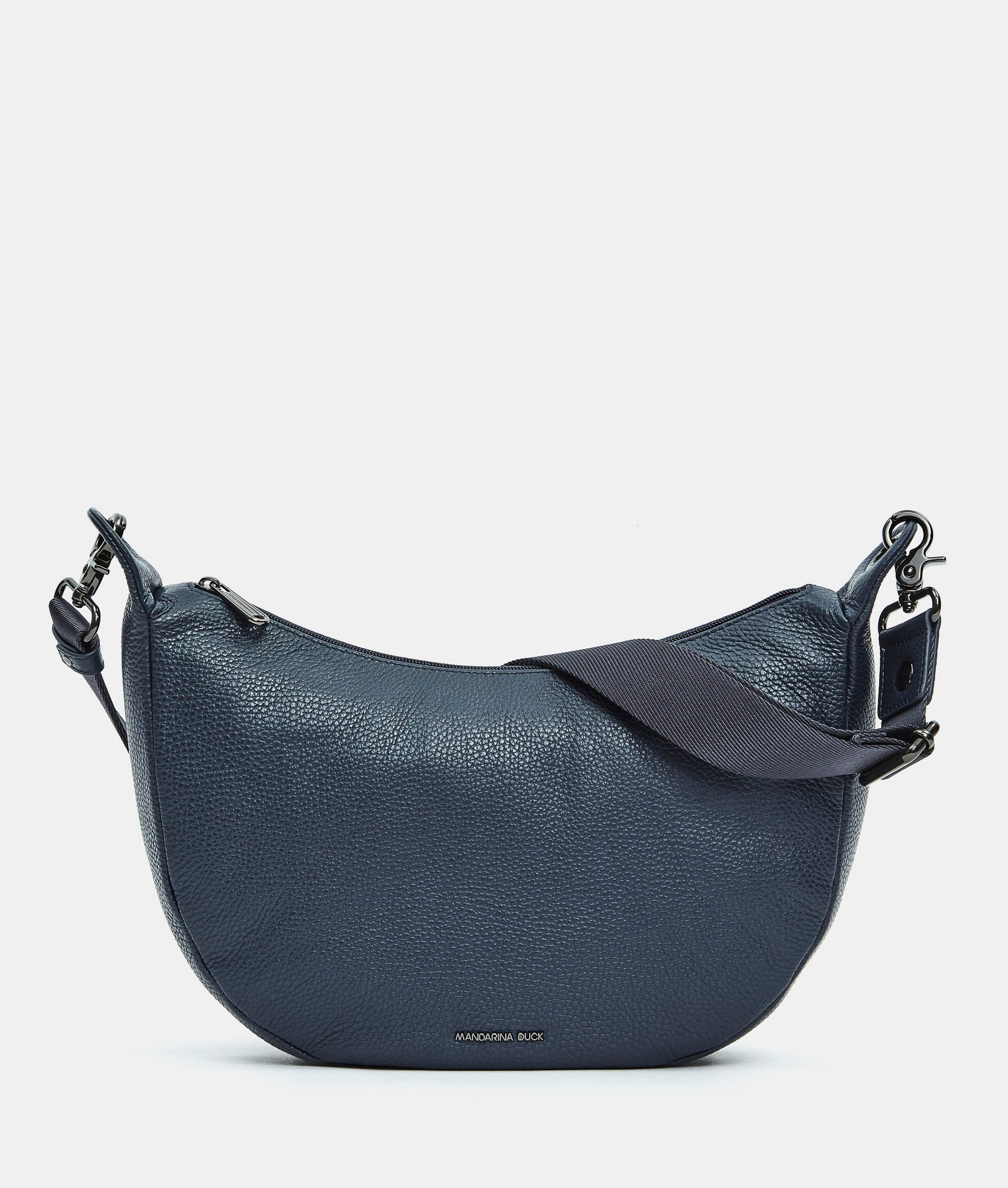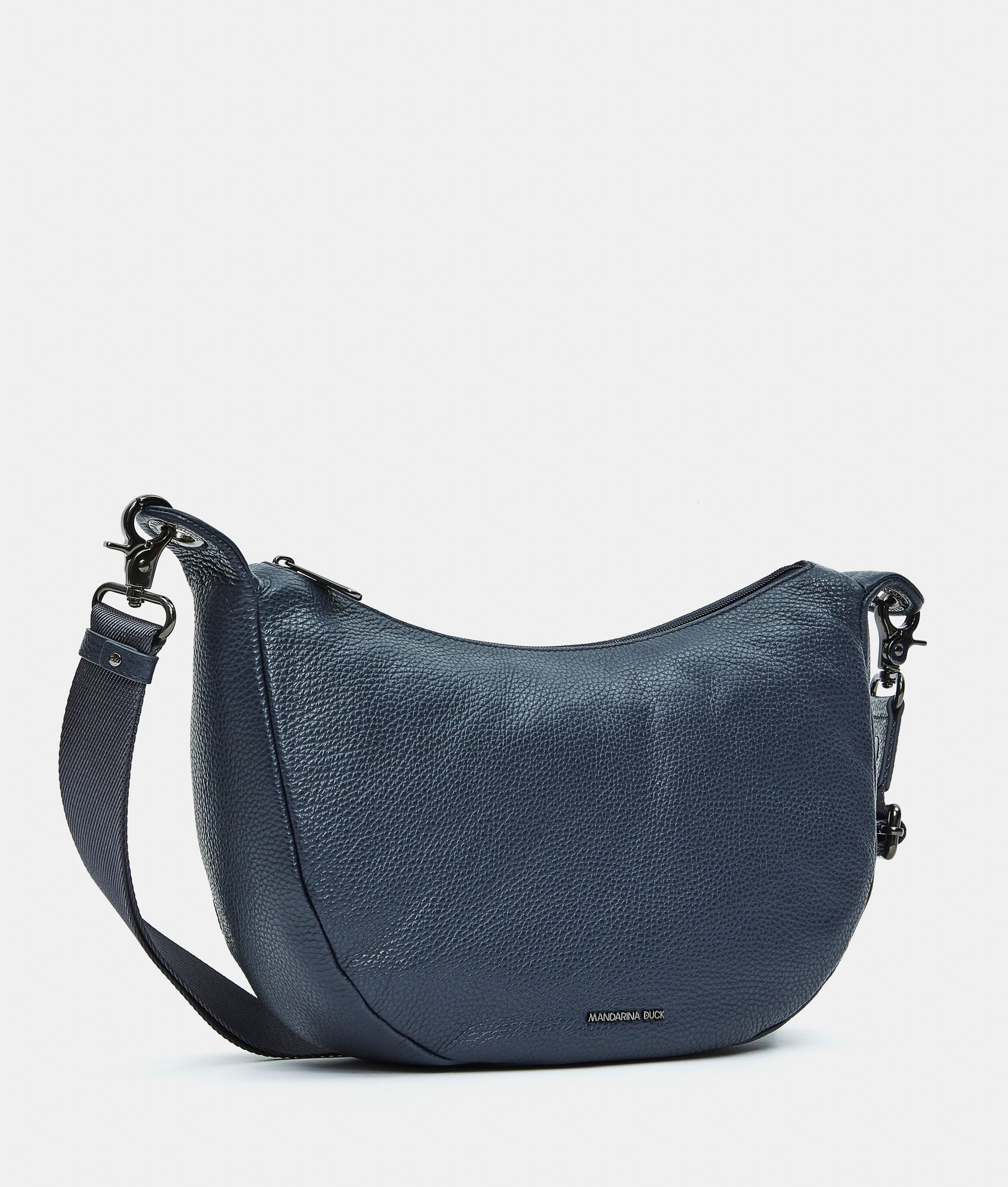 Borsa a tracolla piccola in pelle. Doppia portabilità, tasche smart, dettagli personalizzati in metallo e tracolla regolabile e rimovibile in jacquard.
