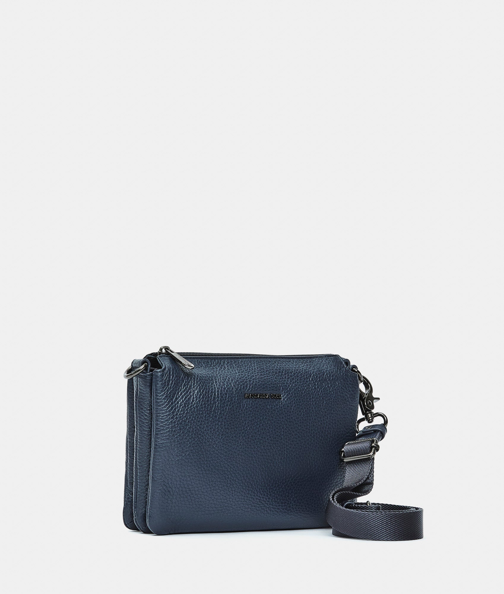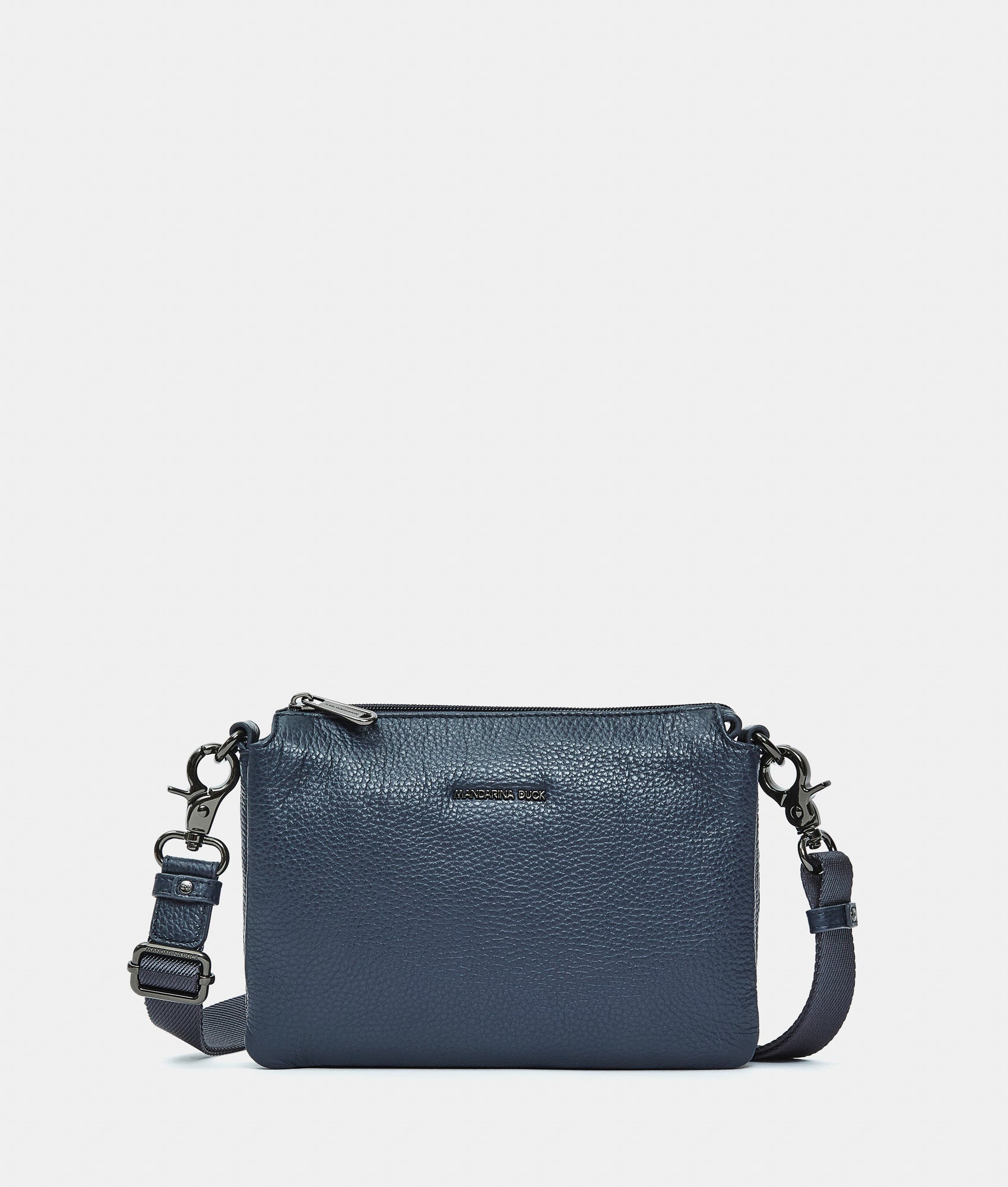 Borsa a tracolla doppio scomparto in pelle. Doppia portabilità, tasche smart, dettagli personalizzati in metallo e tracolla regolabile e rimovibile in jacquard.