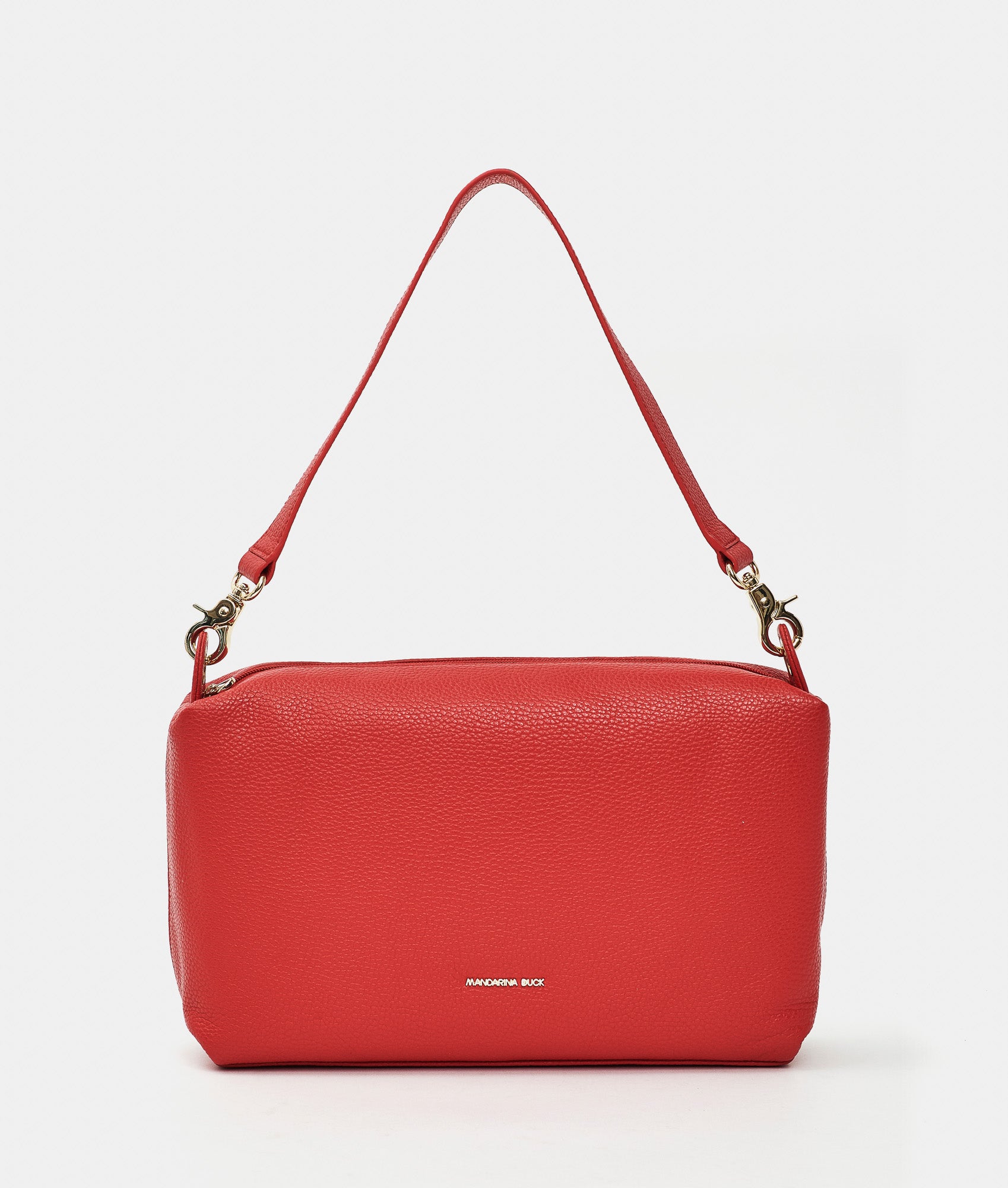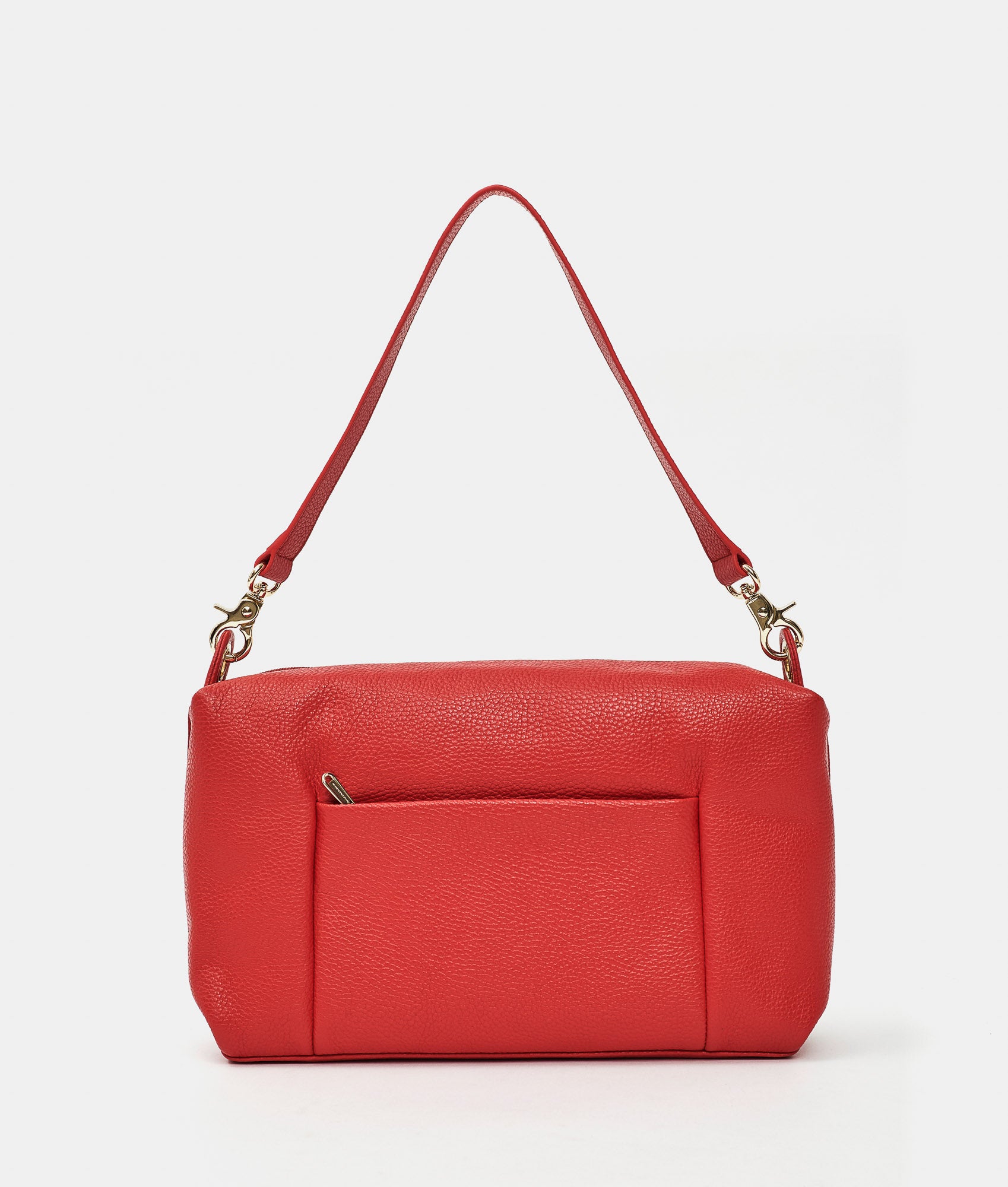 Borsa a tracolla media in pelle. Portabilità a spalla. Tasche smart, dettagli personalizzati in metallo e tracolla regolabile in jacquard.
