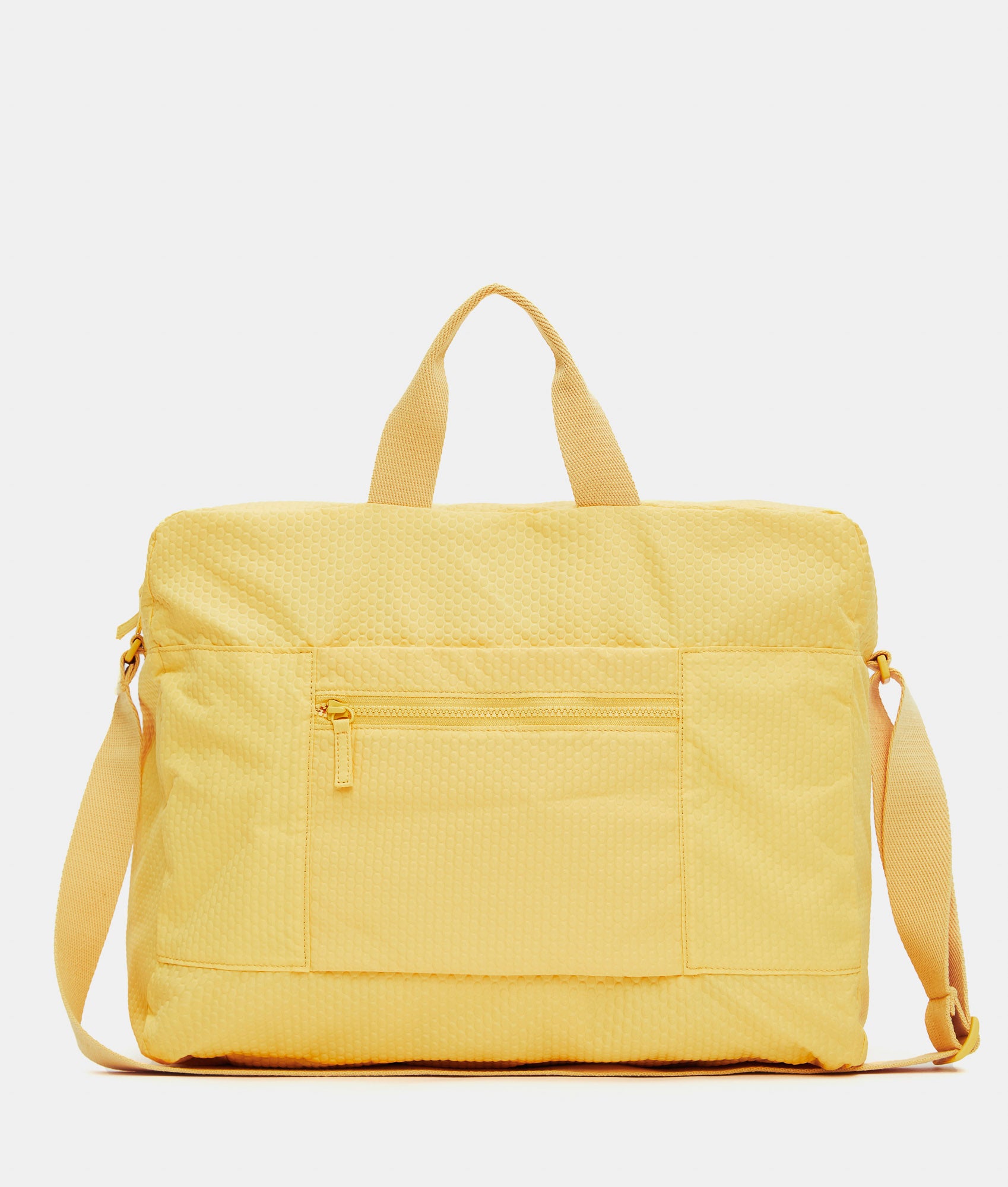 Borsone grande ripiegabile, in tessuto riciclato, 100% sostenibile. Doppia portabilità, a tracolla, a spalla e a mano, con tasche smart esterne ed interne, dettagli personalizzati e tracolla in jacquard regolabile e rimovibile. Il prodotto è ripiegabile su se stesso, pratico e leggero.