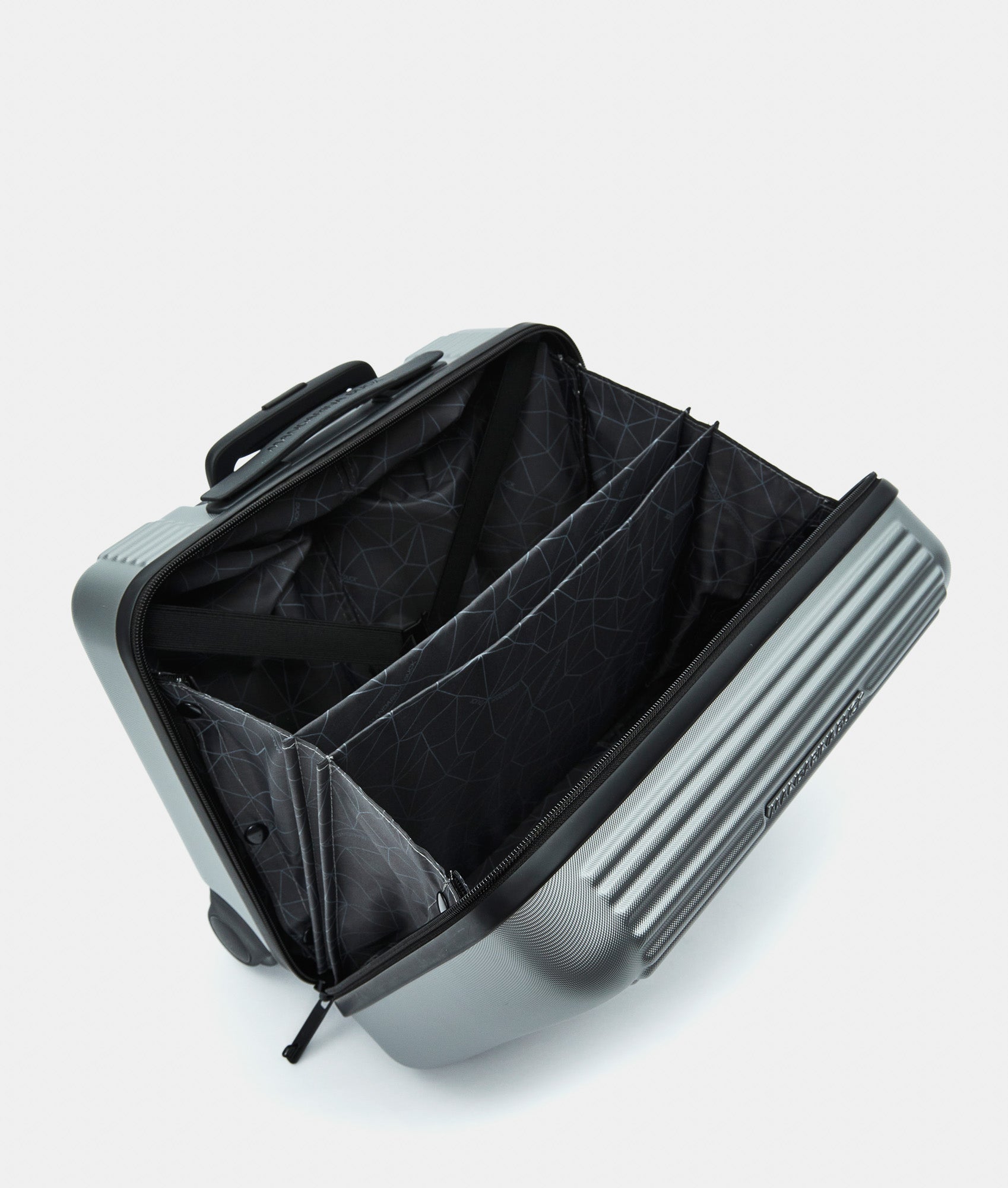 Trolley Pilota Rigido (2 ruote) 40x35x20 cm. Relizzata in policarbonato. Traino estraibile multistep, TSA integrato, adress tag, fodero copri valigia e dettagli personalizzati.