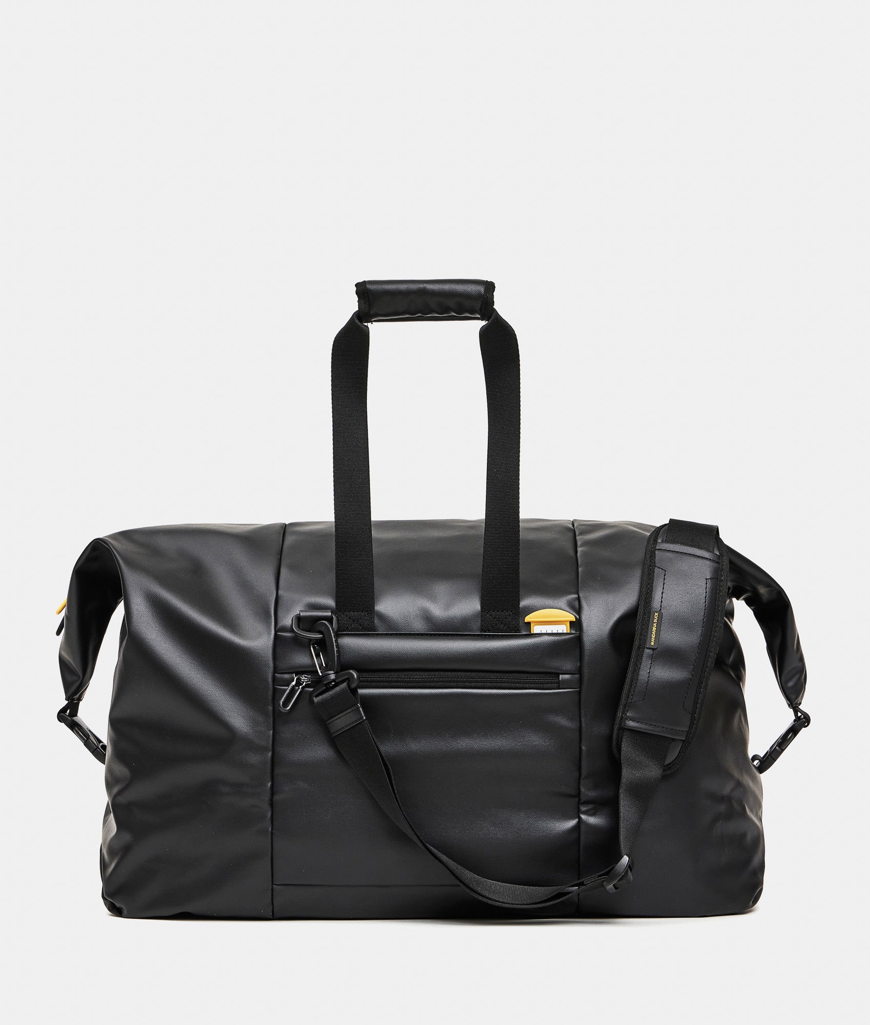 Borsone medio con manici e tracolla, in tessuto 100% riciclato. Doppia portabilità , a tracolla e a mano, con tasche esterne ed interne, dettagli personalizzati.