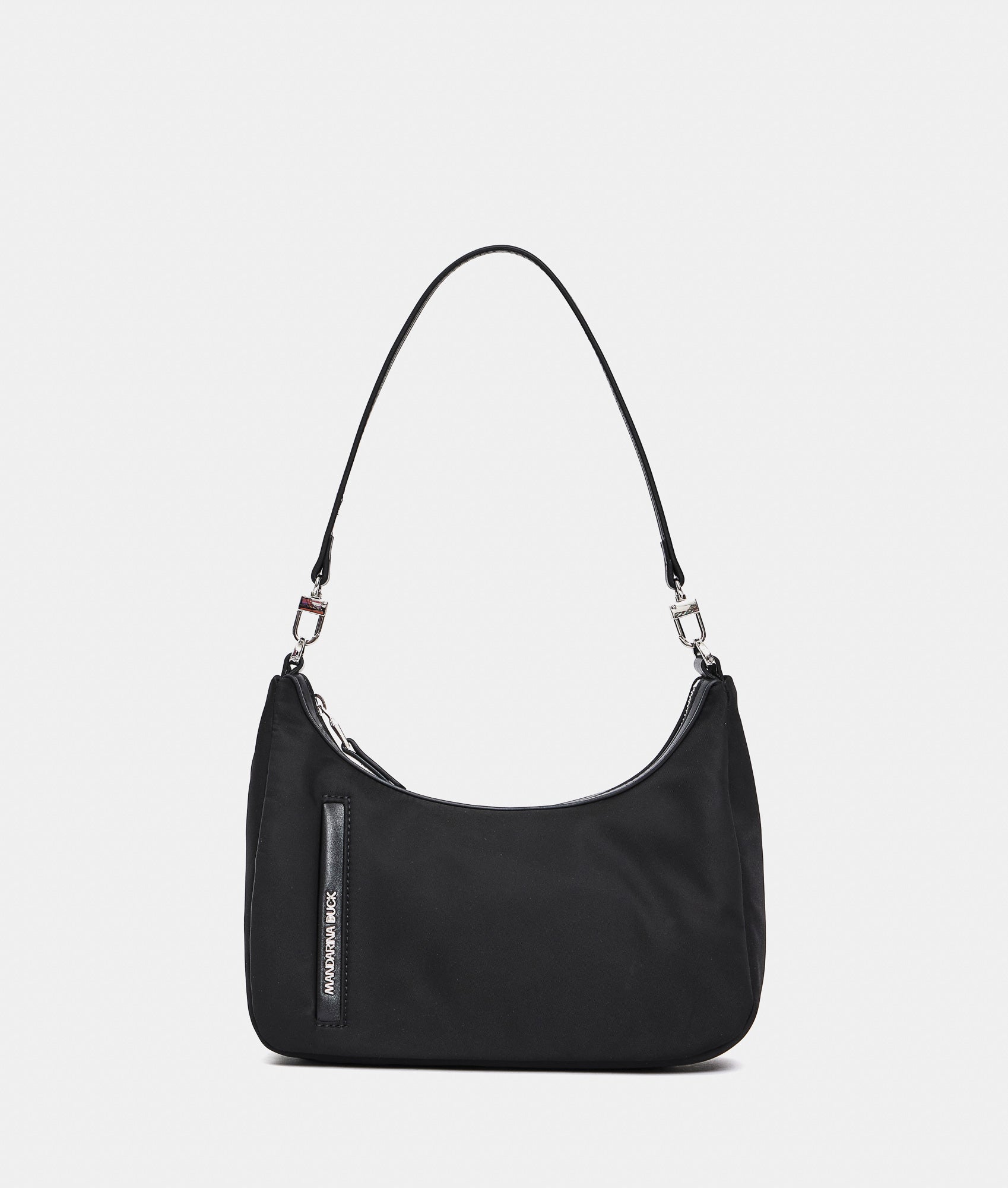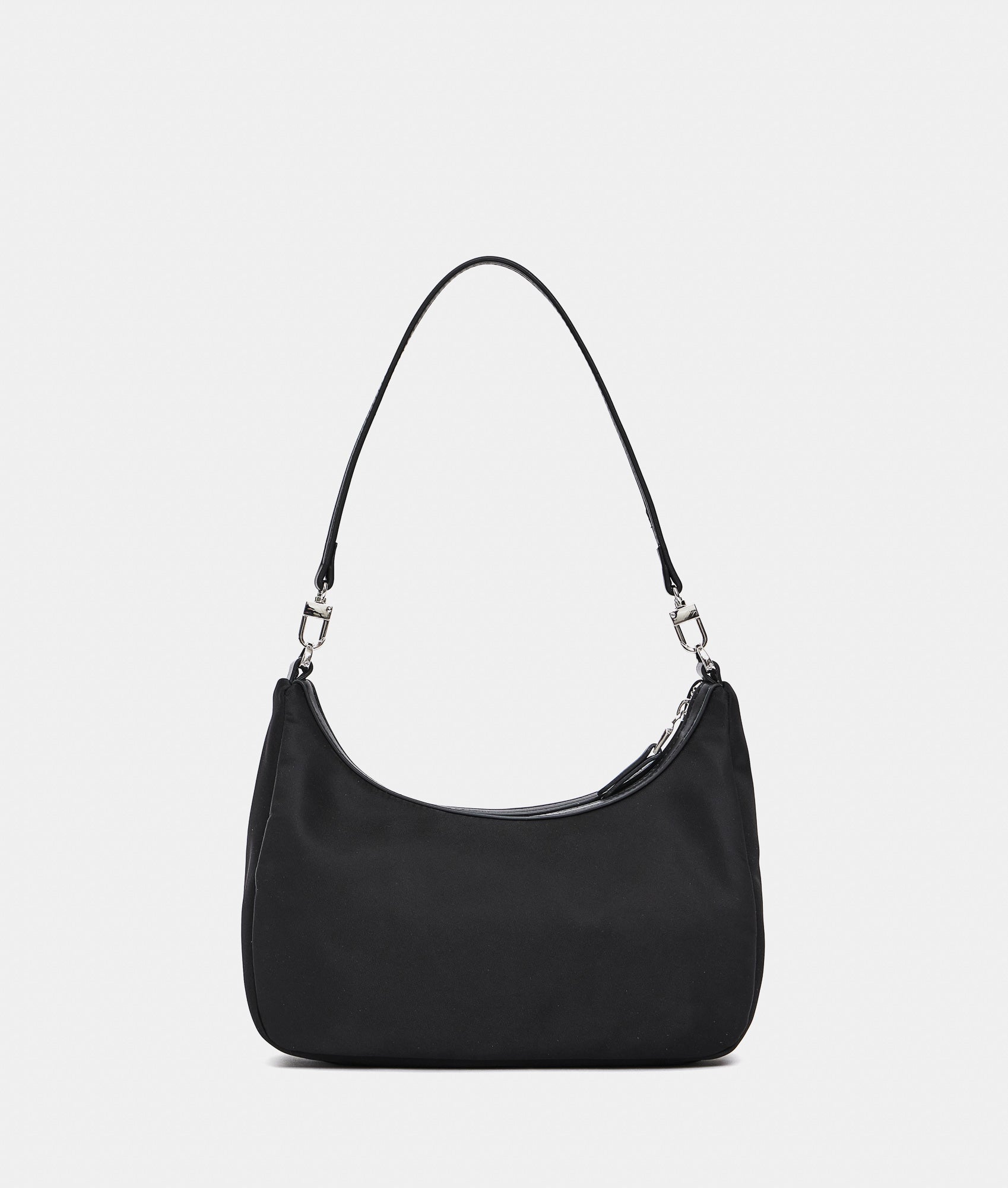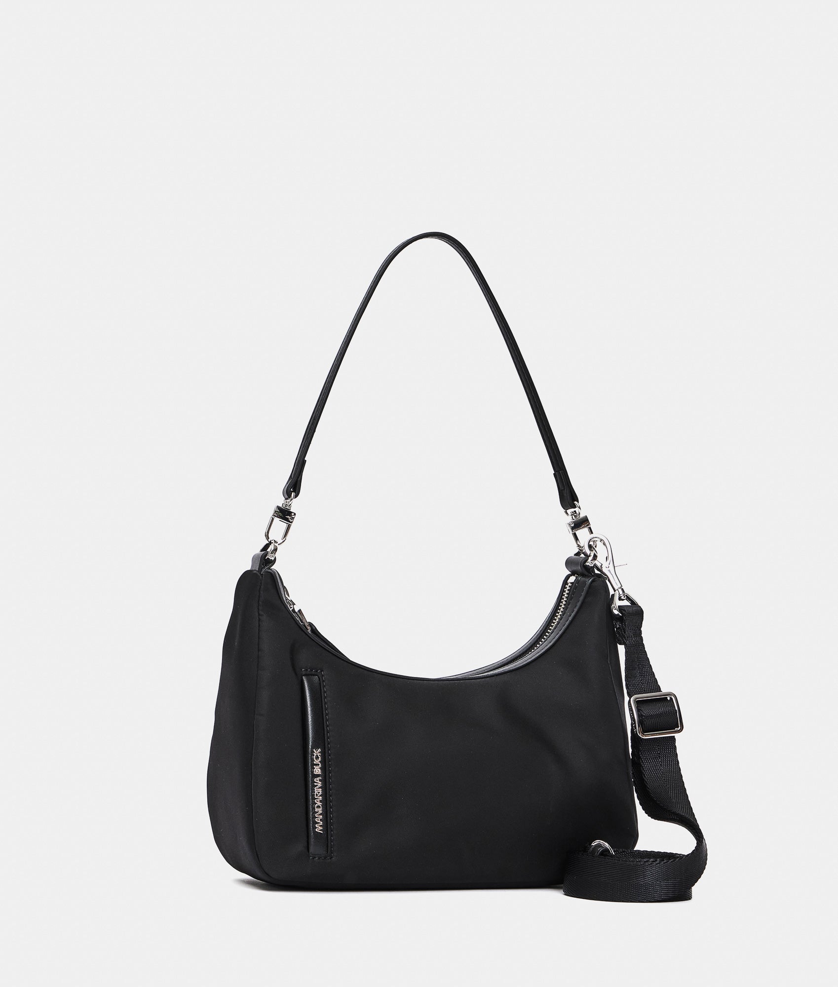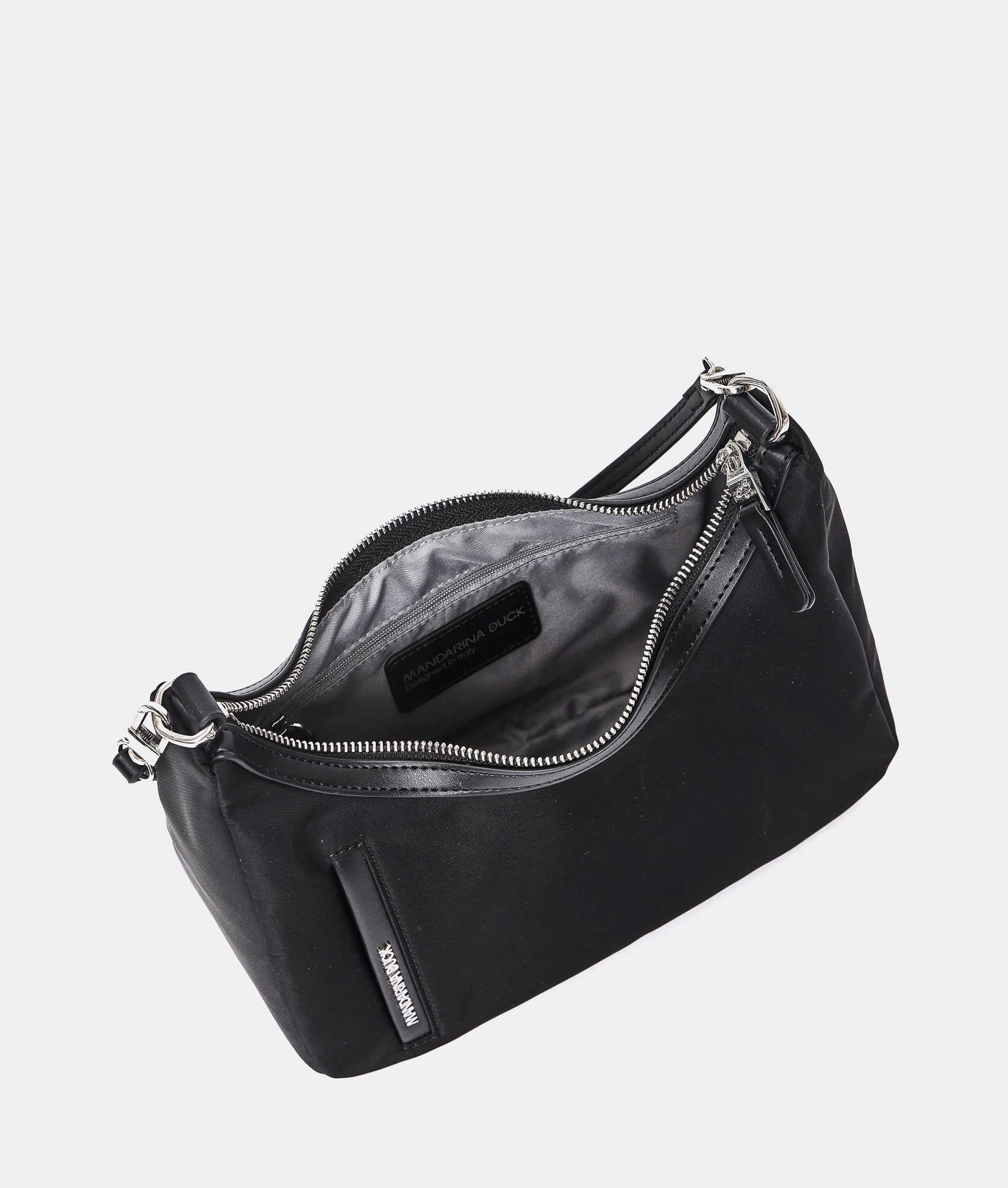Mini borsa a spalla con zip in tessuto. Doppia portabilità, con tracolla regolabile e removibile in jacquard, tasche smart interne, dettagli personalizzati.