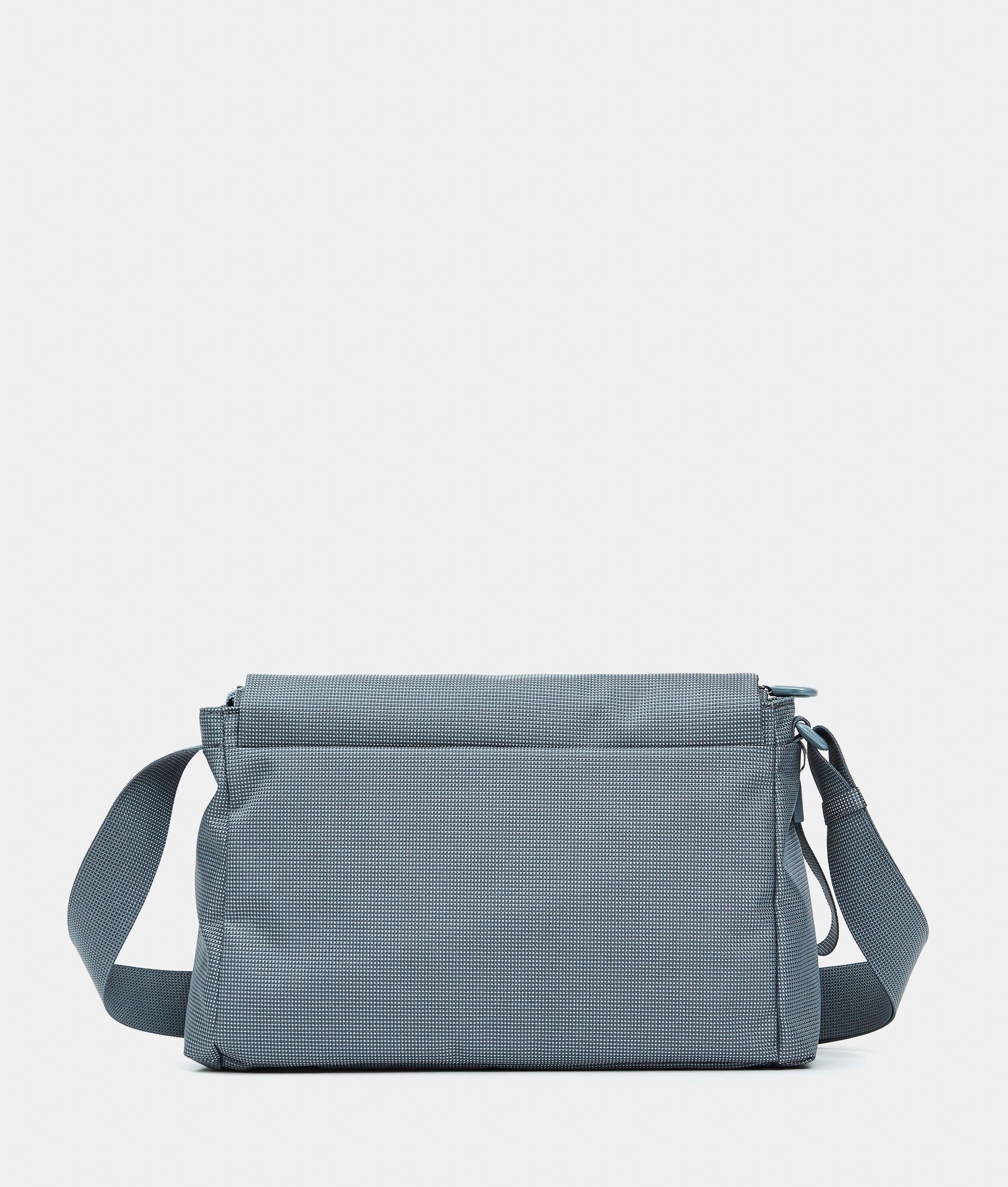 Borsa a tracolla con patta e zip in tessuto. Doppia portabilità, dettagli personalizzati e tracolla regolabile in jacquard.