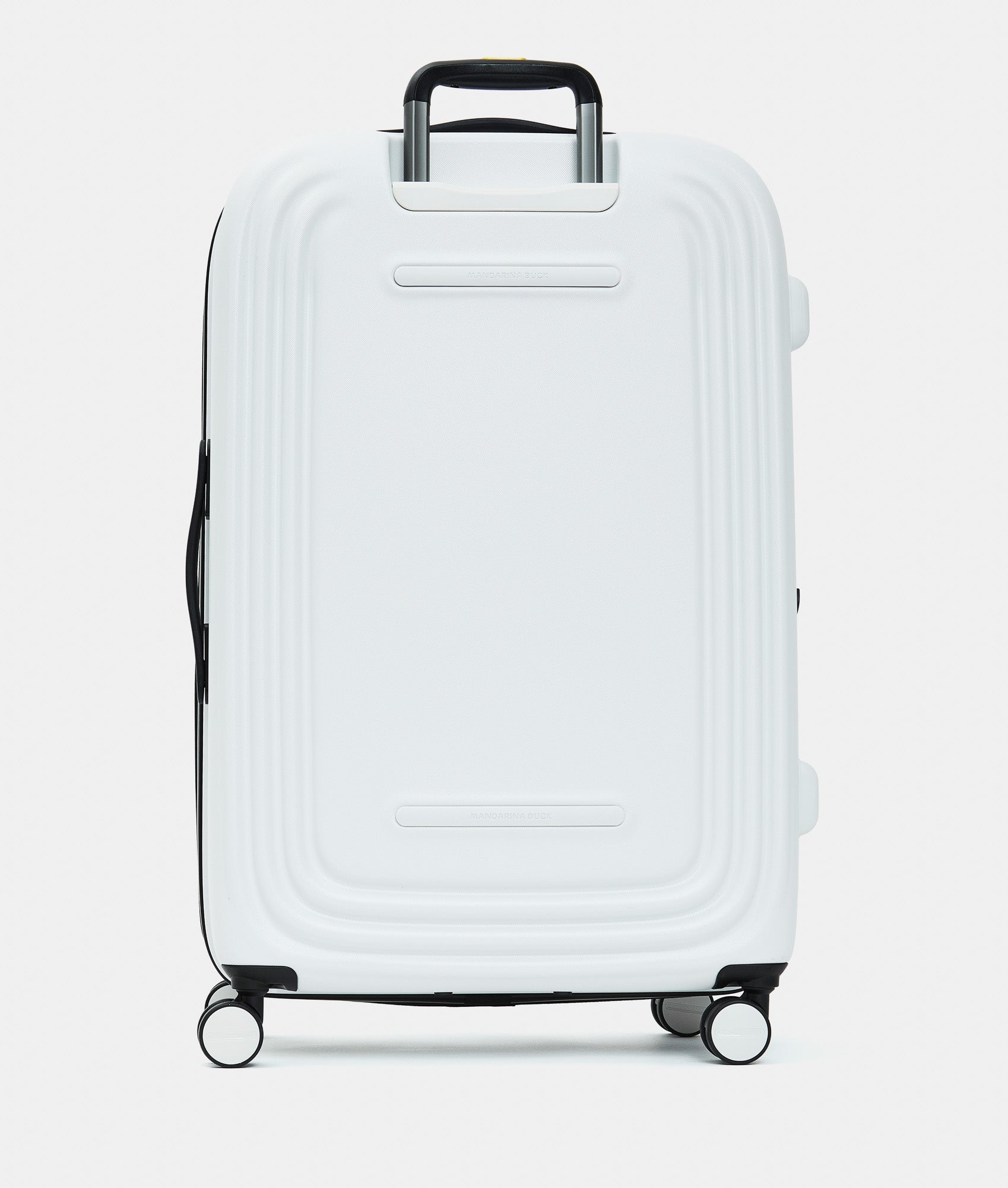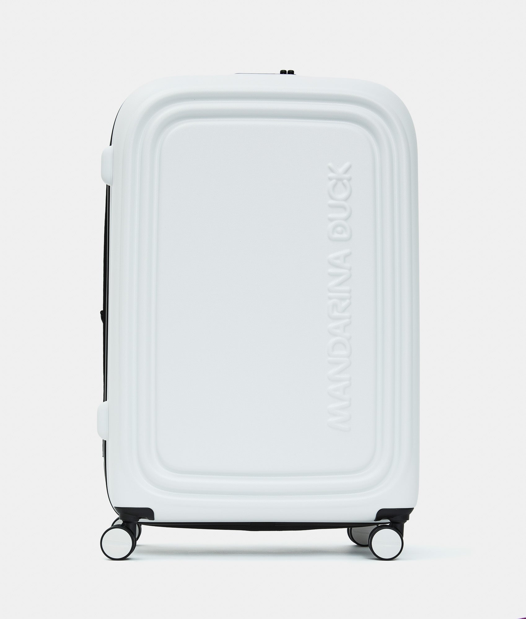 Scocca rigida in policarbonato, linee morbide e volume compatto.