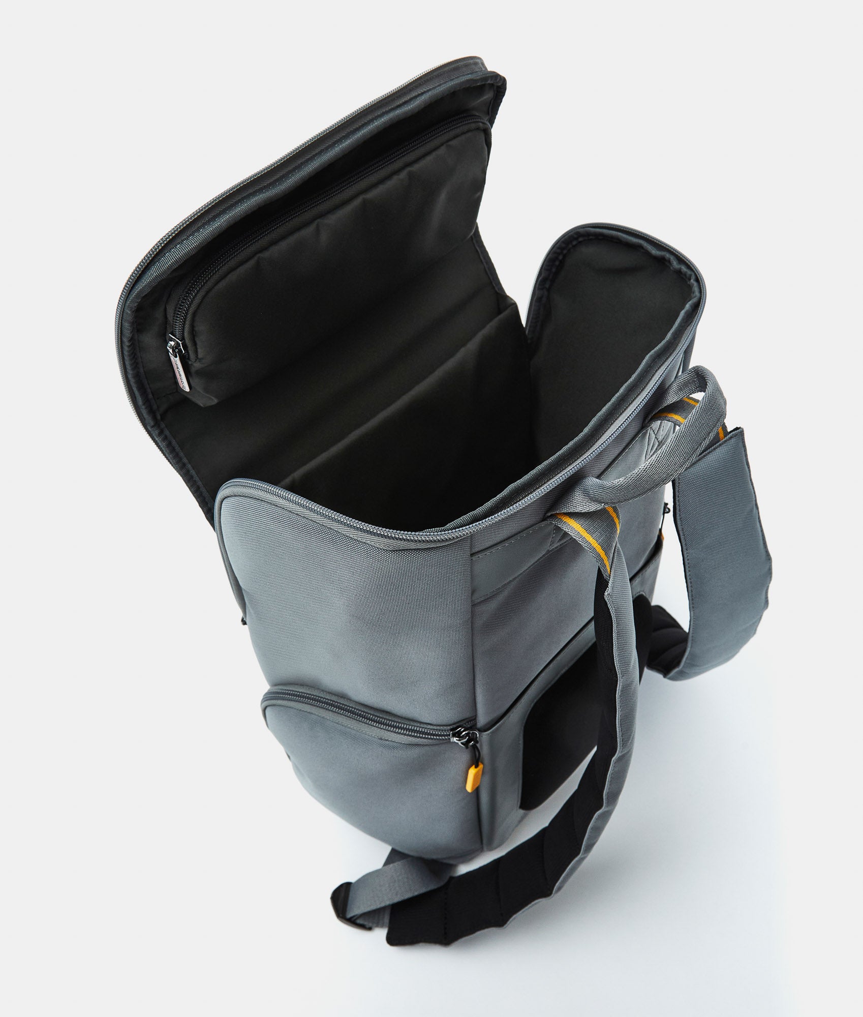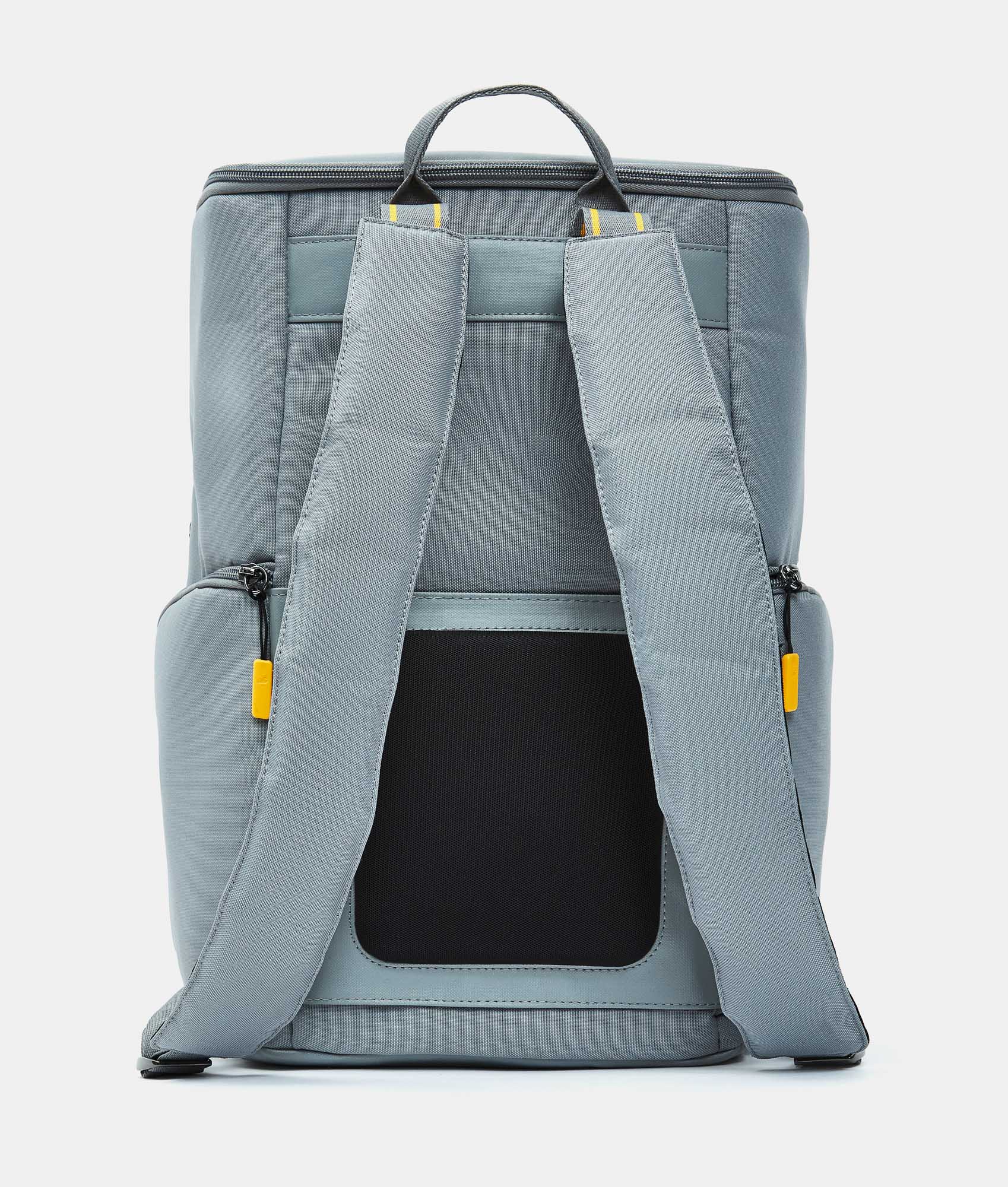 Zaino porta pc 14''con spallacci e schienale imbottiti, in tessuto 100% riciclato. Apertura smart, tasche esterne ed interne, dettagli personalizzati.