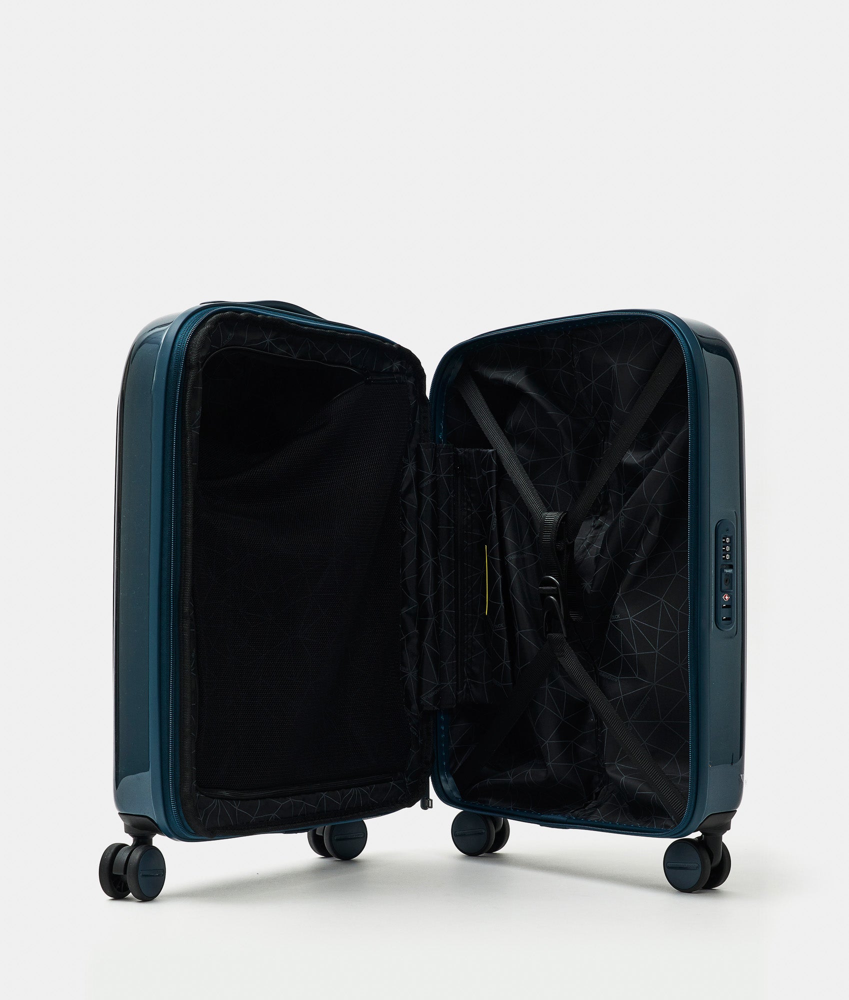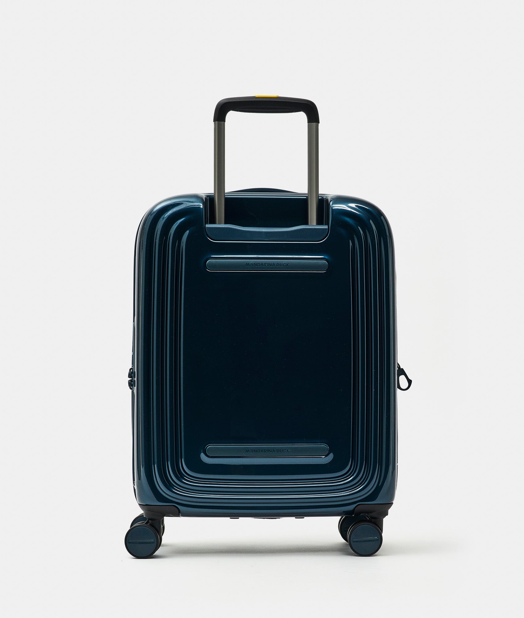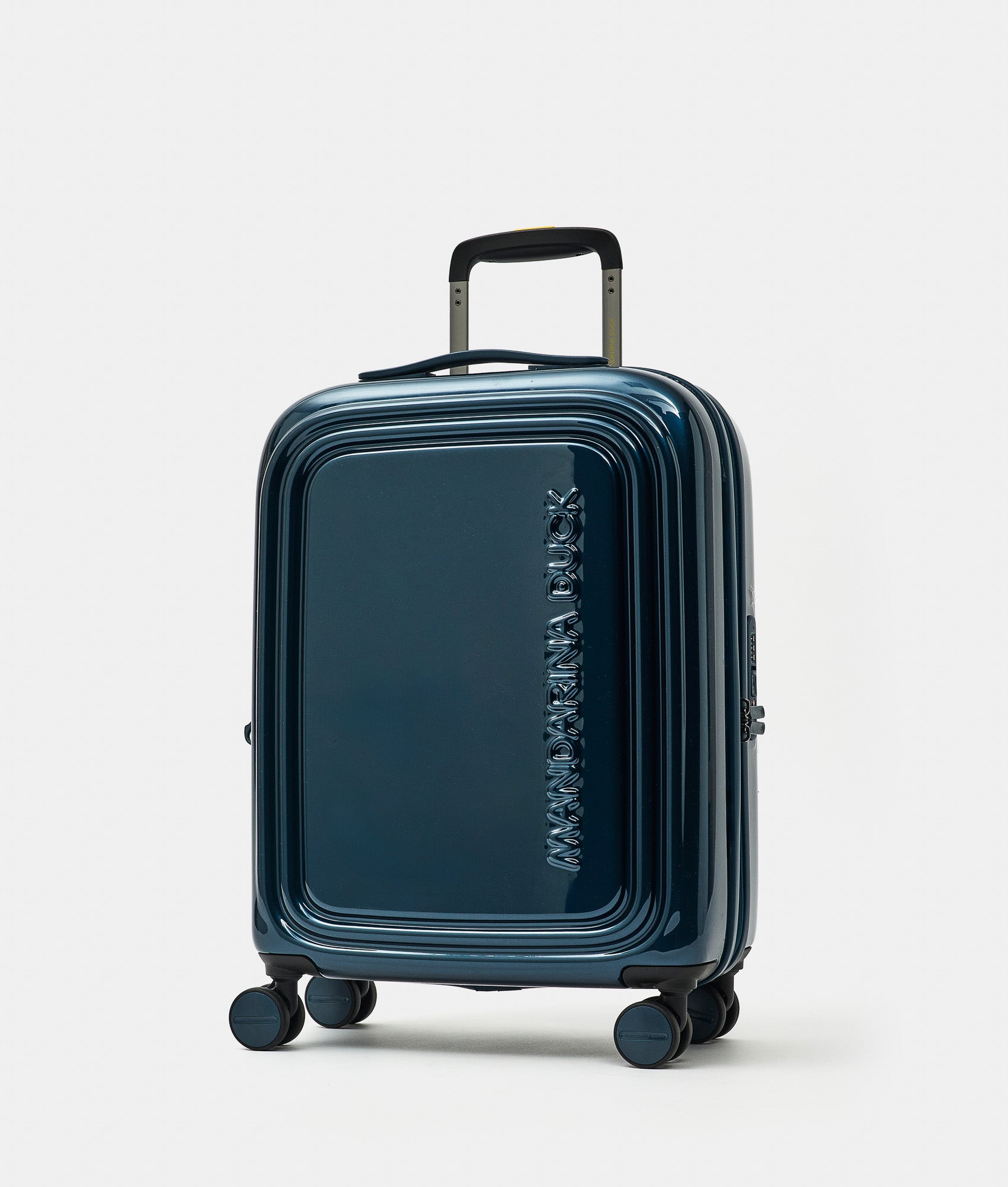 LOGODUCK+ METAL is made of polycarbonate with a shiny metallic effect, as if the suitcase had been immersed in a precious metal. There are four models available: the Cabin Global Carryon Expandable, the Medium Expandable suitcase, the Large Expandable suitcase and the Beauty Case. All trolleys come with address tag and transparent cover.