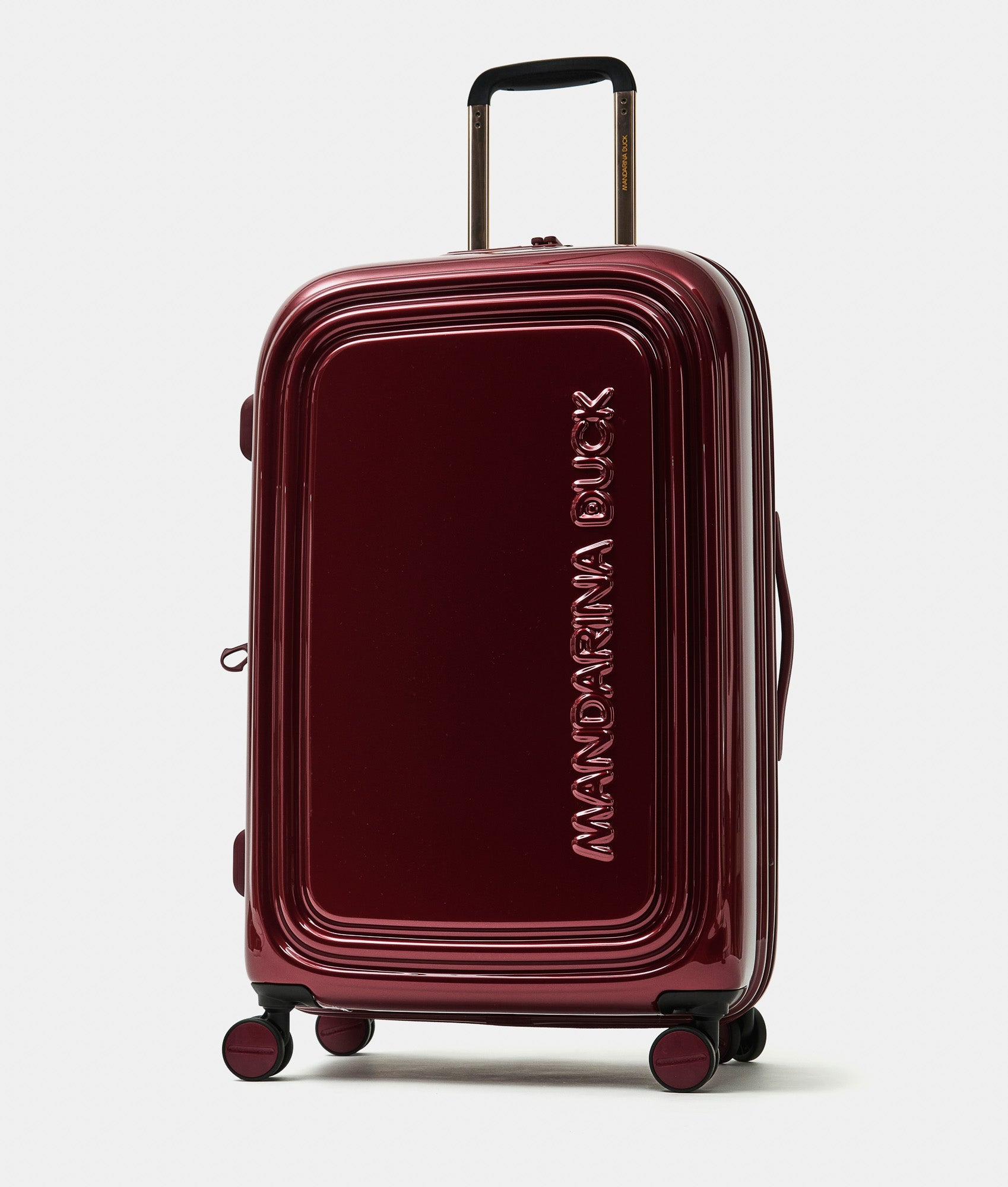 LOGODUCK+ METAL is made of polycarbonate with a shiny metallic effect, as if the suitcase had been immersed in a precious metal. There are four models available: the Cabin Global Carryon Expandable, the Medium Expandable suitcase, the Large Expandable suitcase and the Beauty Case. All trolleys come with address tag and transparent cover.