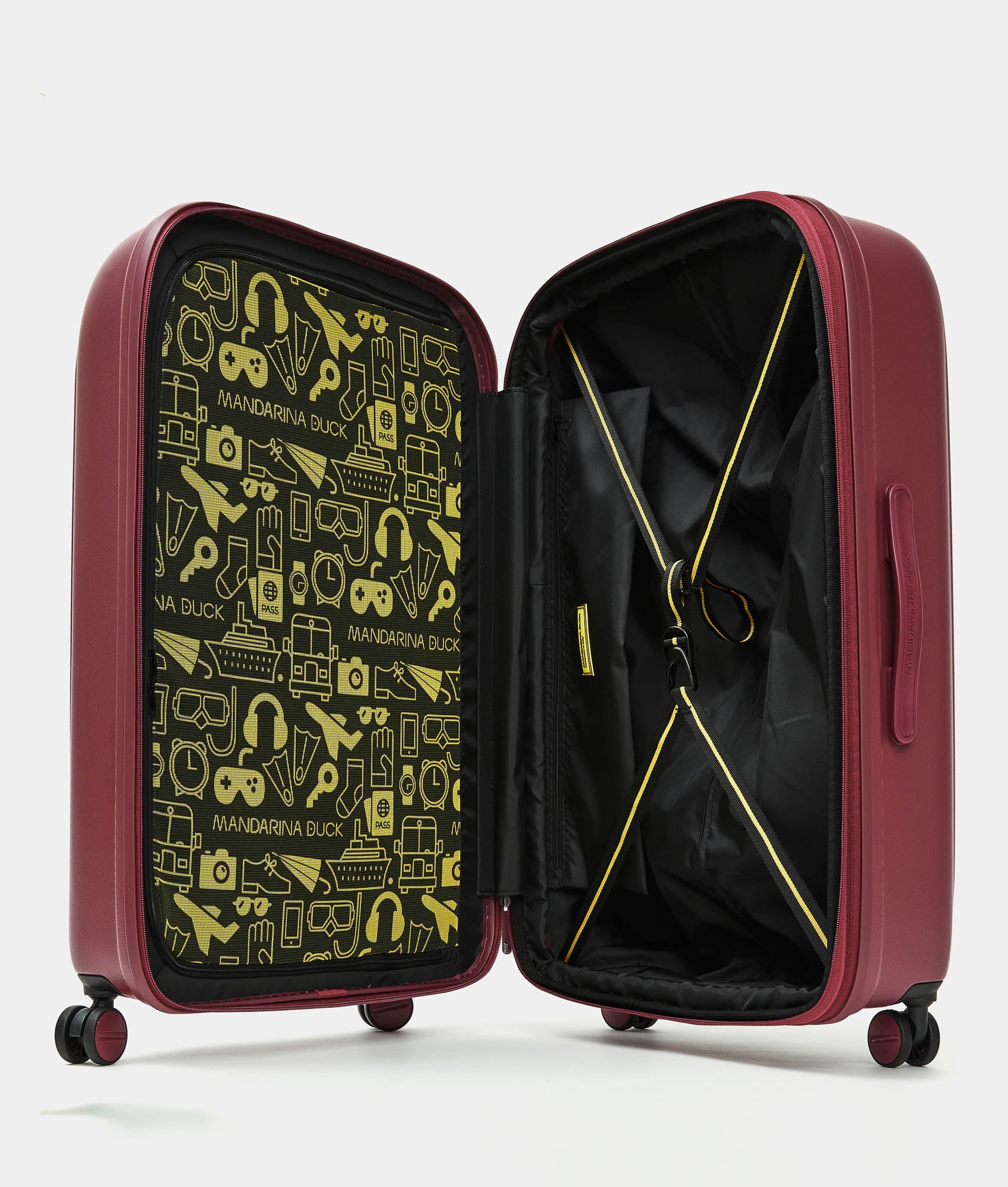 In a world of luggage with strict shapes and formal color palettes, Mandarina Duck stands out with LOGODUCK, a polycarbonate line dedicated to travel, featuring soft and rounded shapes and a compact volume. The leitmotif is color in all its shades, signaling a new, more fluid and informal way of traveling. Mandarina Duck aims to offer authentic and genuine travel experiences with its products, moving away from traditional tourist habits and embracing a functional, comfortable, and lightweight travel experience.