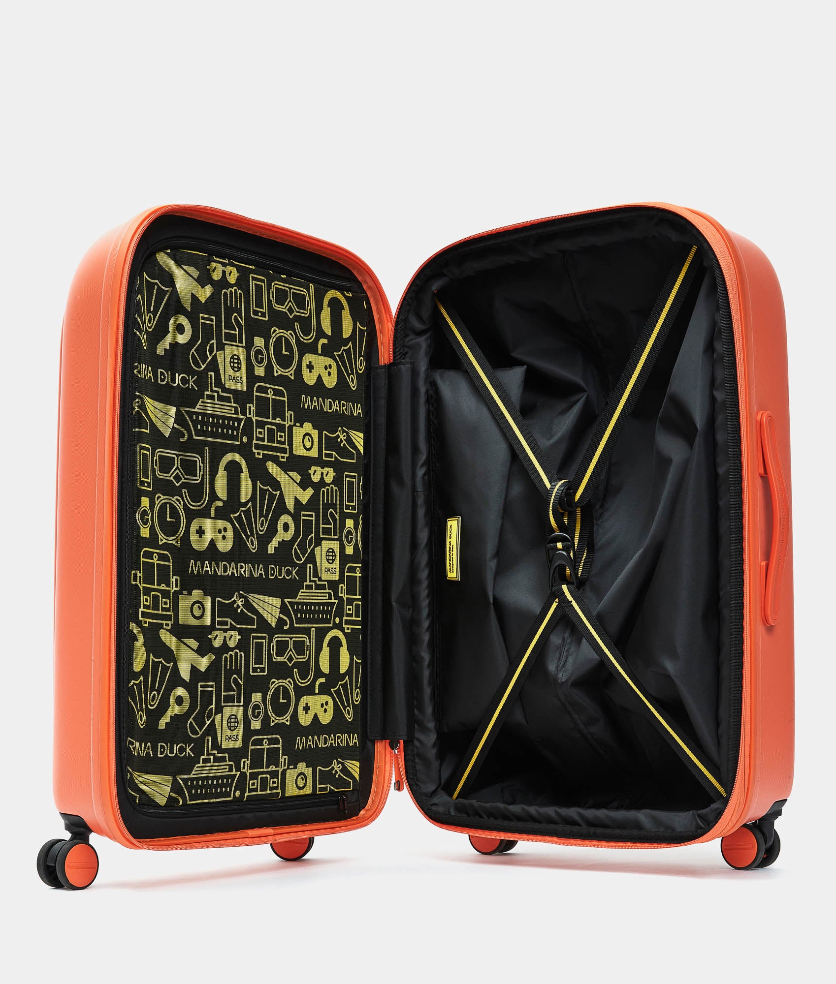 In a world of luggage with strict shapes and formal color palettes, Mandarina Duck stands out with LOGODUCK, a polycarbonate line dedicated to travel, featuring soft and rounded shapes and a compact volume. The leitmotif is color in all its shades, signaling a new, more fluid and informal way of traveling. Mandarina Duck aims to offer authentic and genuine travel experiences with its products, moving away from traditional tourist habits and embracing a functional, comfortable, and lightweight travel experience.
